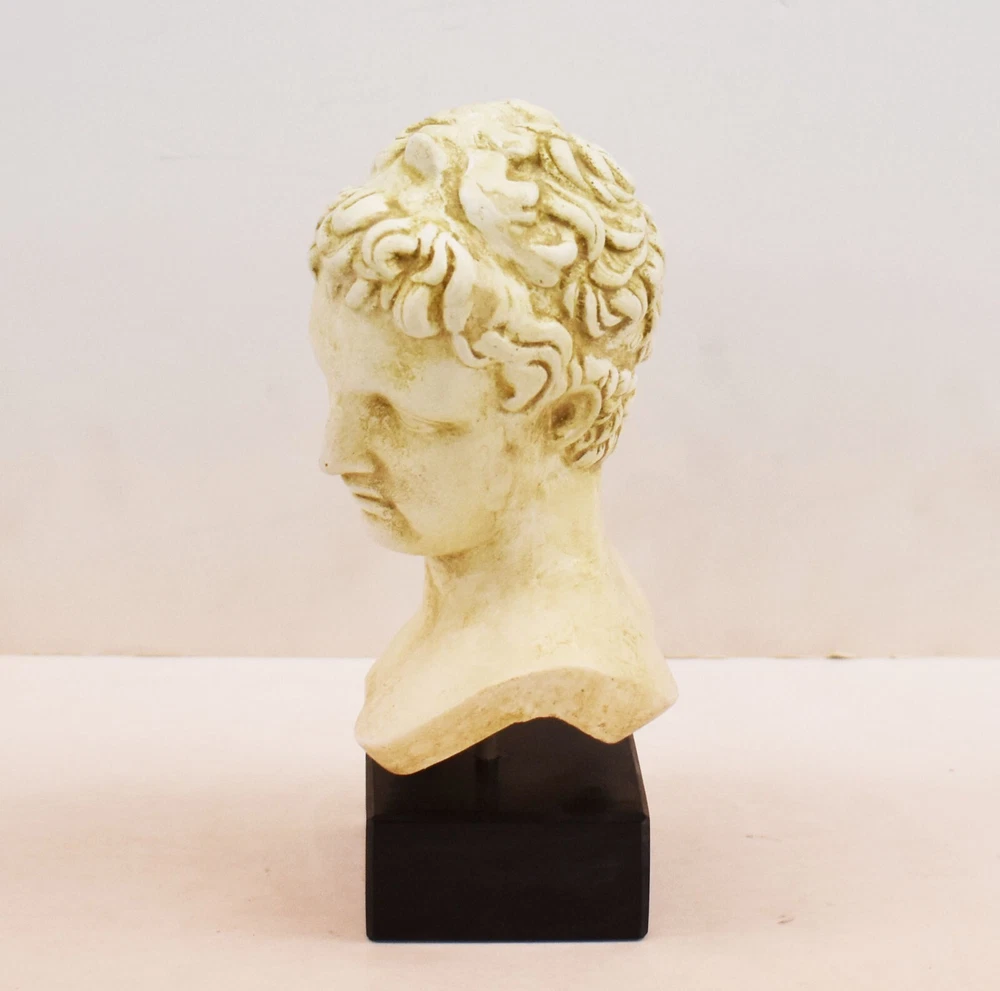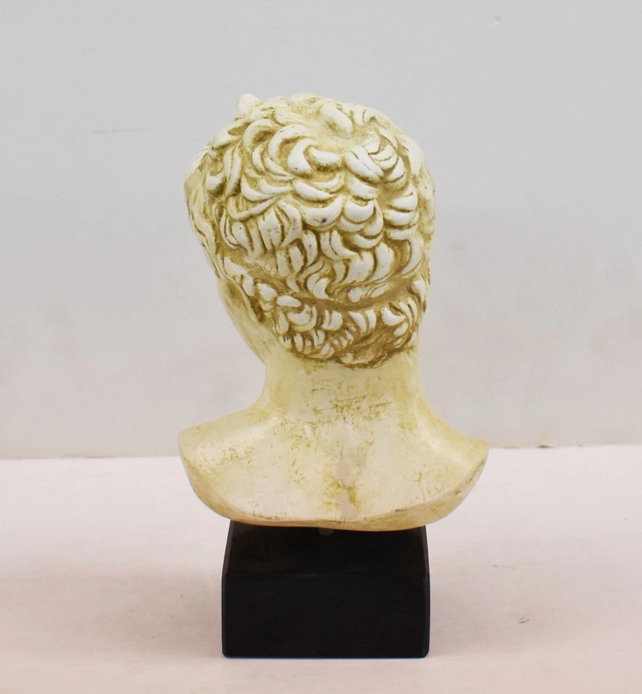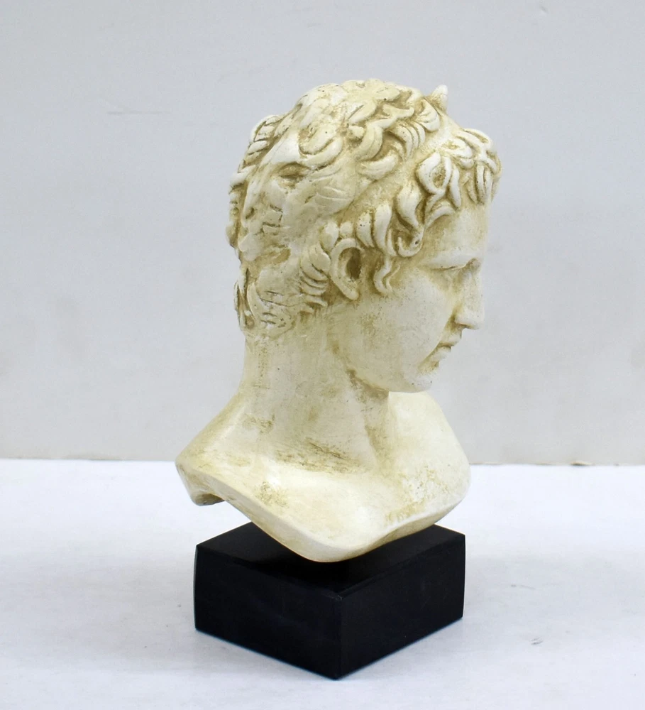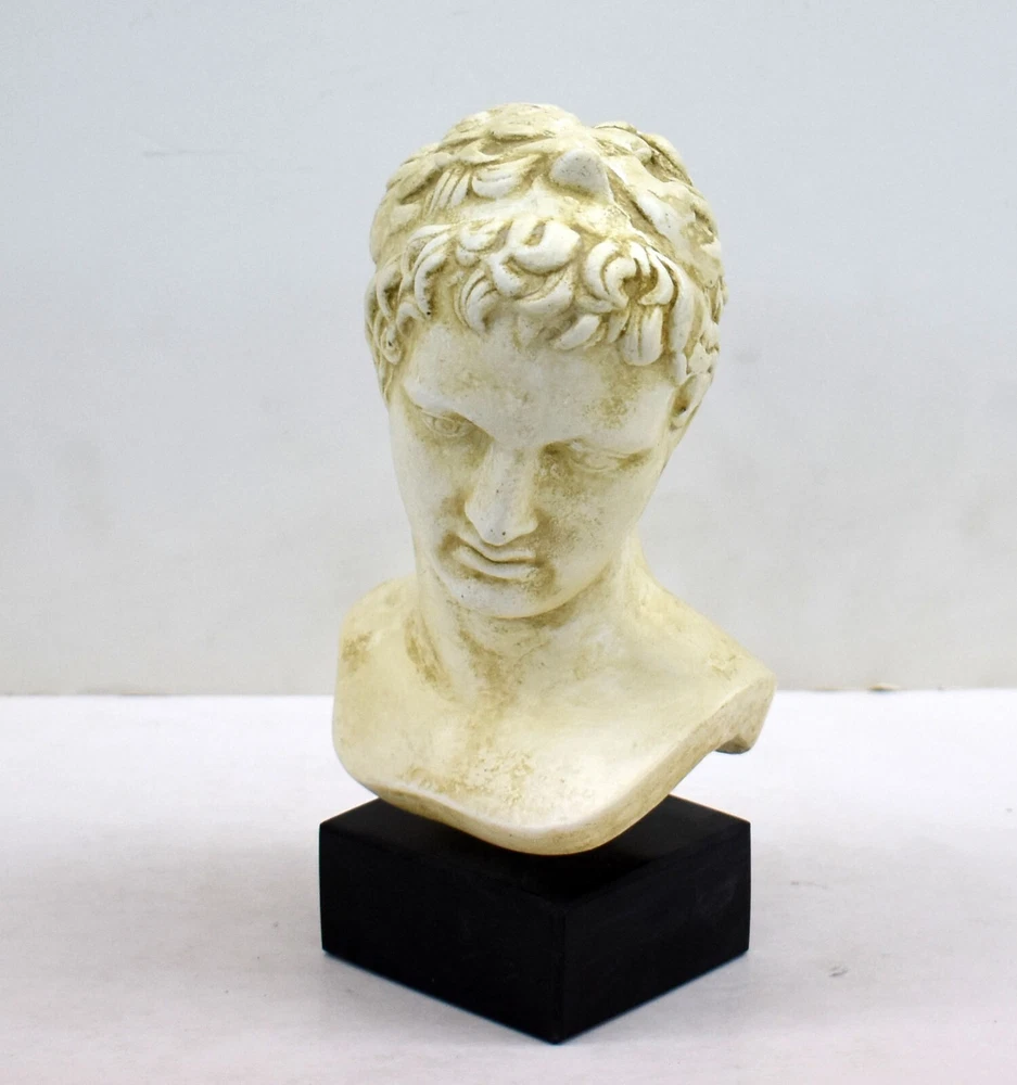 EPHEBE OF MARATHON BUST The Marathon Boy or Ephebe of Marathon is a Greek bronze sculpture found in the Aegean Sea in the bay of Marathon in 1925. The original full size bronze statue is in the National Archaeological Museum of Athens where it is dated to around 340-330 BC. The Museum suggests that the subject is the winner of an athletic competition. With its soft musculature and exaggerated contrapposto, its style is associated with the school of Praxiteles. Some think that it is a representation of Hermes, god of transitions.(01-167-A) Details: Condition: New, Handmade in Greece Material: Casting stone Height: 18 cm - 7 inches Width: 10 cm - 3.9 inches Length: 7 cm - 2.7 inches Weight: 1 kg ********