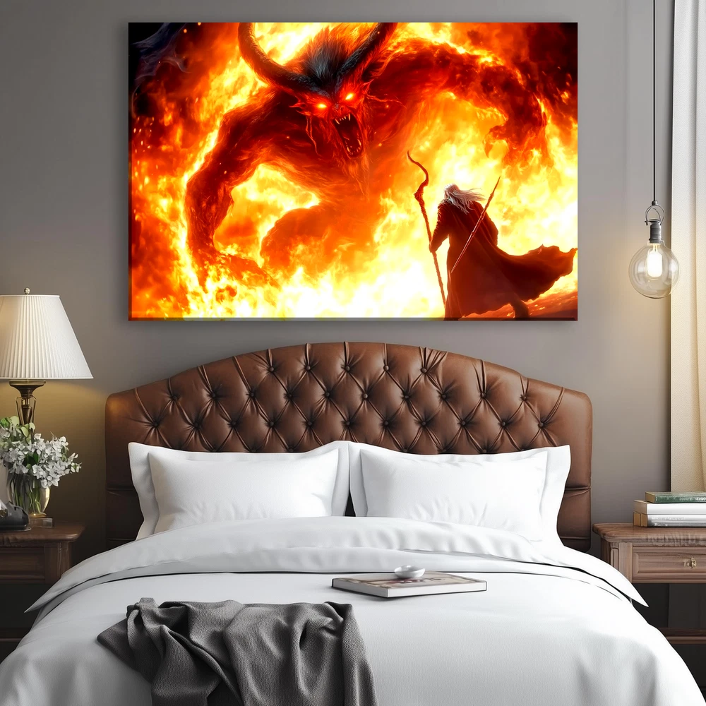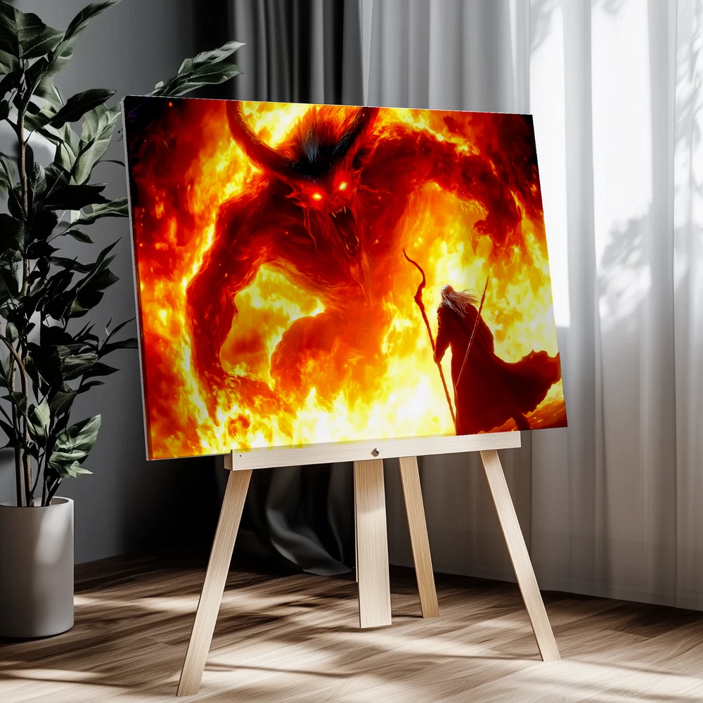 Epic Fantasy Canvas Art - Fiery Demon vs Wizard Scene π§βοΈπ₯ Transform your space with this breathtaking original canvas artwork , featuring an epic clash between a fiery demon and a brave wizard. This piece is a perfect combination of fantasy, mythology, and adventure , designed to captivate and inspire! Whether you're a fan of fantasy art or simply want to make a bold statement in your home, this artwork is for you. π Key Features Versatile Sizes for Any Space π: Choose the perfect fit for your wall with 6 size options : 8x12, 12x18, 16x24, 20x30, 24x36, or 32x48 inches β ideal for both cozy spaces and large feature walls. Durable Canvas Material π¨: Expertly crafted on premium canvas , showcasing vivid colors, sharp details , and superior longevity that ensures your artwork remains stunning for years. Elegant Framed Design πΌοΈ: Comes with a sleek framed finish , making it ready to hang and enhancing the overall aesthetic of your decor. Global Shipping π: We ship worldwide , so wherever you are, this captivating artwork can find its way to your home! Perfect For Any Room π‘ This artwork is versatile and fits beautifully in any space: Living Room β Be the center of attention with this statement piece. Office or Study β Add a touch of creativity and inspiration. Game Room β Perfect for fantasy and gaming enthusiasts! Why Choose This Canvas? Unique and Original Art β Designed to stand out and impress. Fantasy-Themed Masterpiece β A perfect gift for fans of mythical and heroic tales. Long-Lasting Quality β Vibrant colors and premium materials ensure your art remains timeless. β¨ Add a touch of magic and adventure to your space today! Whether you're decorating your home or looking for a unique gift, this canvas artwork is sure to leave a lasting impression. π¦ Order now and bring this epic battle scene into your world! π Click "Buy Now" and elevate your decor with an original piece of art!