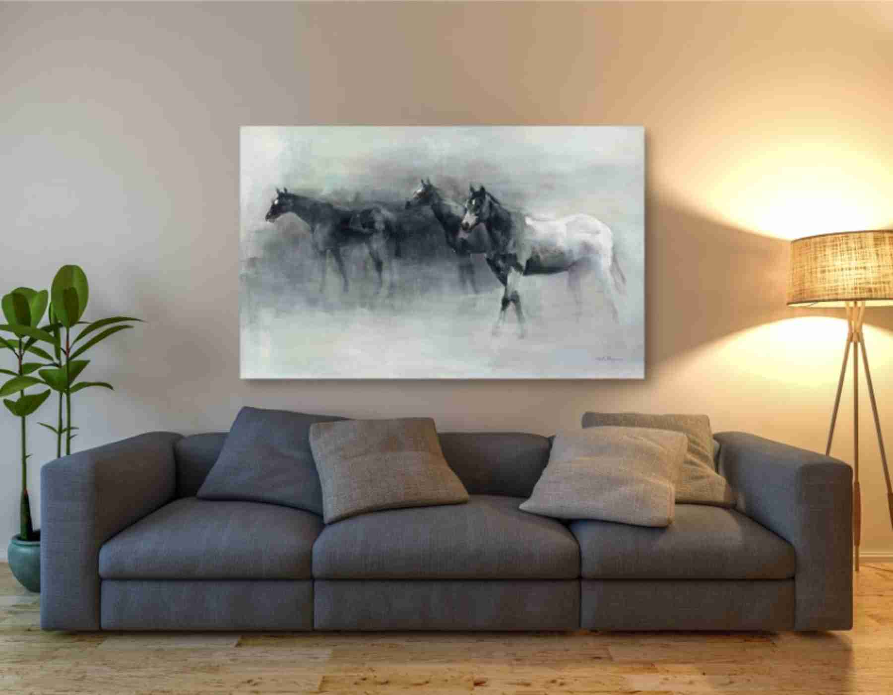 Description: "In the Mist" by Marilyn Hageman. Hageman holds both a BA and MFA in painting from Colorado State University; which shows in her artistic influences of Monet and Mary Cassatt. Her heavy brushstrokes range from playful to concise, which gives a representation as well as an impressionistic style. She’s been painting horses since the age of three, and later branched out to other subjects such as wine, flowers, home decor, and landscapes. You can find Hageman's work in galleries and private collections throughout the United States. Features: Giclee artwork, printed on high quality archival grade canvas Stretched and ready to hang Officially Licensed Digital Print, Artist: Marilyn Hageman Dimensions: Size 60" x 40" : Dimensions: 1.50"L x 60.00"W x 40.00"H Size 40" x 26" : Dimensions: 1.25"L x 40.00"W x 26.00"H Size 26" x 18" : Dimensions: 0.75"L x 26.00"W x 18.00"H Size 18" x 12" : Dimensions: 0.75"L x 18.00"W x 12.00"H Condition: Brand new. Authorized Dealer. Insured Shipping. We will replace items with shipping damage or manufacturing defects at no cost to you. Any questions or issues ? Please contact our US Based Customer Care Team.