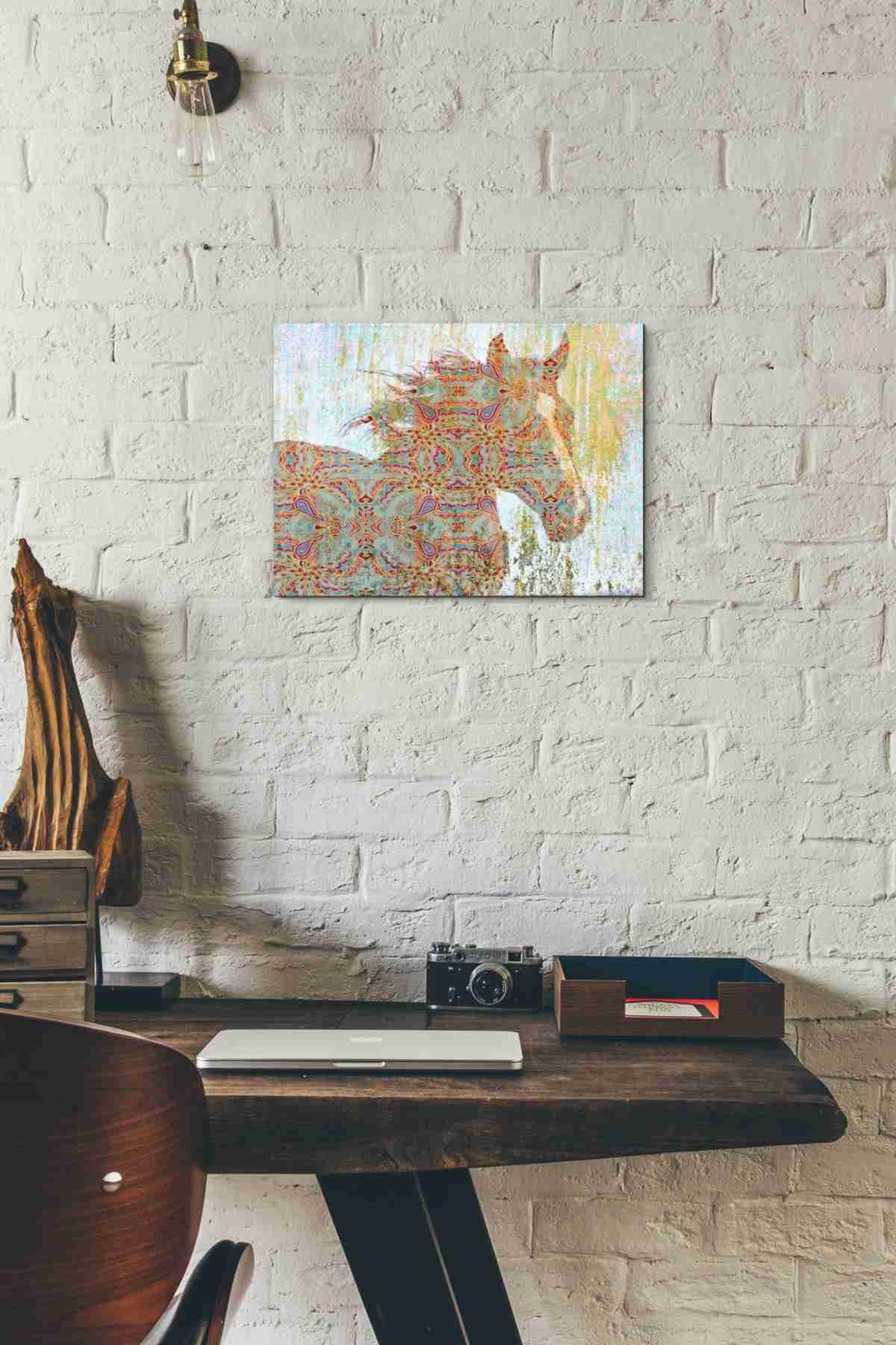 Description: 'Pattern Horse' by Irena Orlov. Irena Orlov is a contemporary artist of any many disciplines ranging as a fine artist, architect, designer, illustrator, and photographer. Having love in art in many media, Orlov doesn’t limit herself to just one and finds herself using mixed media based on her mood and emotions. It’s with that spirit and energy, she encourages the viewer to interpret it their own way. According to Orlov: “Life unfolds only in moments. Capturing moments that are full of emotion is the key to my art.” Being very versatile in these mediums, she’s lived in Ukraine, Russia, Israel, Canada, and recently lives and works in Los Angeles. Features: Giclee artwork, printed on high quality archival grade canvas Stretched and ready to hang Digitally Licensed Print, Artist: Irena Orlov Made in USA Dimensions: Size 26" x 18" : Dimensions: 0.75"L x 26.00"W x 18.00"H Size 16" x 12" : Dimensions: 0.75"L x 16.00"W x 12.00"H Size 34" x 26" : Dimensions: 1.25"L x 34.00"W x 26.00"H Size 54" x 40" : Dimensions: 1.50"L x 54.00"W x 40.00"H Condition: Brand new. Authorized Dealer. Insured Shipping. We will replace items with shipping damage or manufacturing defects at no cost to you. Any questions or issues ? Please contact our US Based Customer Care Team.