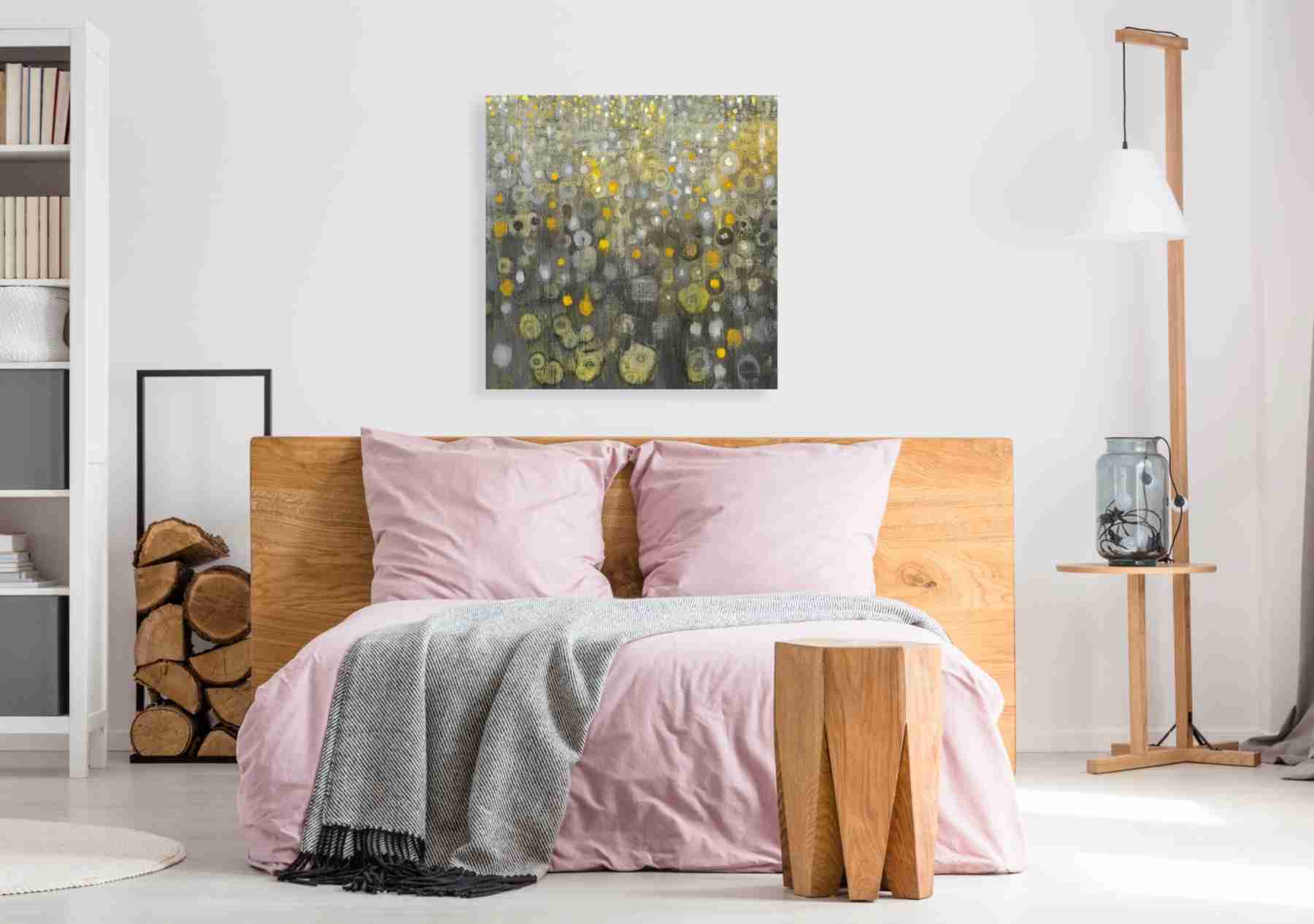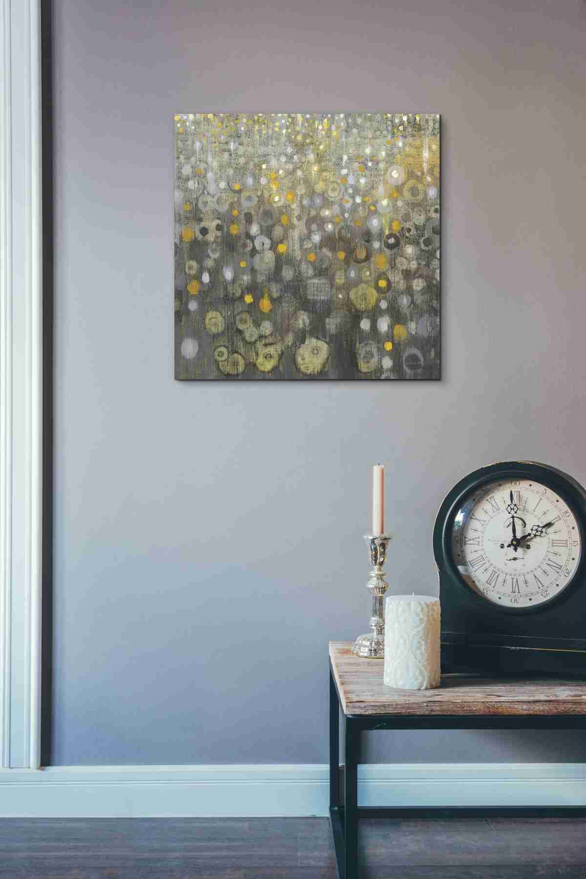 Description: "Rain Abstract V" by Danhui Nai. Danhui Nai was born in mainland China with her sculptor father and painter mother, whom both taught and supported her budding artistic skills. From an artistic household, she studied interior design in Paris and New York. Nai has experience in textiles and is classically trained in California. Her signature skills are in gouache where she uses layering techniques to apply color. But Nai is not shy in other painting media such as acrylics, oils, and tempera, to create beautiful, on-trend artwork. Features: Giclee artwork, printed on high quality archival grade canvas, Made in USA Stretched and ready to hang Officially Licensed Digital Print, Artist: Danhui Nai Dimensions: Size 18" x 18" : Dimensions: 0.75"L x 18.00"W x 18.00"H Size 26" x 26" : Dimensions: 1.25"L x 26.00"W x 26.00"H Size 37" x 37" : Dimensions: 1.50"L x 37.00"W x 37.00"H Condition: Brand new. Authorized Dealer. Insured Shipping. We will replace items with shipping damage or manufacturing defects at no cost to you. Any questions or issues ? Please contact our US Based Customer Care Team.