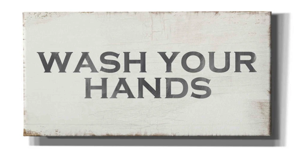 Description: "Wash Your Hands" by Linda Woods. Linda Woods is a mixed media artist that combines words and images, to reveal hidden stories of every day life. She has appeared on national television and numerous books, magazines, and exhibits worldwide. She currently resides in Los Angeles, California. Features: Giclee artwork, printed on high quality archival grade canvas, Made in USA Stretched and ready to hang Officially Licensed Digital Print, Artist: Linda Woods Dimensions: Size 12" x 24" : Dimensions: 1.25"L x 24.00"W x 12.00"H Size 20" x 40" : Dimensions: 1.25"L x 40.00"W x 20.00"H Size 30" x 60" : Dimensions: 1.50"L x 60.00"W x 30.00"H Condition: Brand new. Authorized Dealer. Insured Shipping. We will replace items with shipping damage or manufacturing defects at no cost to you. Any questions or issues ? Please contact our US Based Customer Care Team.