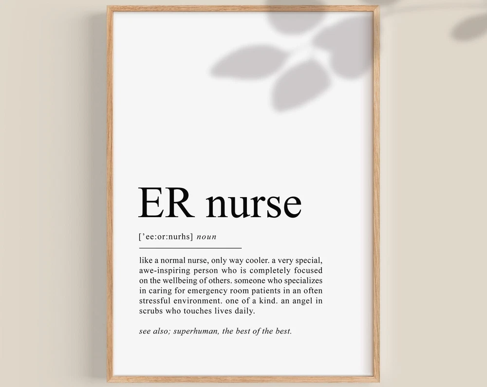 Er Nurse Definition Print Emergency Nurse Gift Emergency Room Nurse Poster Nurse To Be Graduation Gift Art Material: Premium luster photo paper Print type: Inkjet printing One side printed + The finish provides the highest possible resolution and color saturation + Lasts up to 200 years in color and 400 years in black-and-white + Printed on high-quality resin-coated photo base paper medium + Posters can be hung with double-sided tape, tacks, or framed + Hand washing with a gentle cry cloth is recommended for extended durability I will hand select the best choice of paper for your chosen design to ensure top quality results for a beautiful, bright and luxurious print. All prints are sealed in cellophane slips for protection during transportation, and are shipped in a protective cardboard envelope.