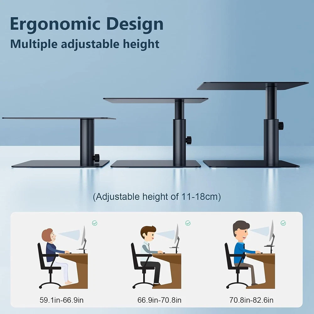 Product Description Monitor Stand Riser For Desk, Adjustable Height Computer Monitor Stand, Ergonomic Aluminum Computer Desk Holder For Imac,Macbook, Dell, Hp, Lenovo And Other Screen Display, Black Adjustable Height &Amp Ergonomic Design - You Can Adjust The Height By Your Stature And Sitting Posture. Convenience To Working, Typing And Viewing. This Monitor Stand Can Relieve The Stiffness Of Your Back And Neck. Wide Compatibility - Support Up To 33.07 Lbs(15Kg). Monitor Riser Stand Is Compatible With All Screen Display And Laptop, Such As Tv, Pc, Laptop, Computer. Macbook, Macbook Air/Pro, Surface, Lenovo, Pixelbook, Dell Xps, Hp, Asus And Other Screen Display. Stable - Panel Size: 29*22.8Cm, Stand Weight: 2.5Kg. Monitor Stand Is Made Of Metal And Adopt Cnc Processing. Stable And No Wobble. And Is Not Easy To Bend Or Dent. The Skidproof Pad At The Bottom Helps Prevent The Stand From Sliding. Storage Function - Sufficient Space Between The Metal Plates. You Can Place Keyboard And Book,Etc. Free Up Space Of The Table Top. Simple To Use - The Computer Stand Is Composed Of 2 Base Plates And A Support Rod. Easy Assembly. Packing Included Screw Driver And 6 Pcs Screw, It Can Be Completed Assemble With Only A Screw Driver. About Us We are a reputable seller with many years of experience selling on eBay. Our goal is to provide high-quality products and excellent customer service. Shipping Items will be shipped within 1-3 business days when we received payment. (Orders are not processed on weekends & holidays) Tracking information will be sent once item is shipped. Delivery time depends on destination and other factors Item is shipped to ebay address. Leaving correct address can minimize delay. For international shipping and shipping to Guam, Hawaii and Alaska, Please contact us before placing the order. International buyers please note: Import duties, taxes and charges are not included in the item price or shipping charges. These charges are buyer’s responsibility. We will try our best to reduce the risk of the custom duties. Local pick-up is unavailable at the moment. Contact Us We reply any email messages within 1 business / working days(off-duty at weekend). If you do not get a response from us, then please check your junk or spam mailbox. Our Business hours: Mon-Fri 9:00-18:00, UTC/GMT +8 hours. Please contact us either by clicking "contact seller" in the "purchase history" section or simply click "ask a question" at the bottom of this page. If you are unsatisfied with our item or service, please contact us before leaving any feedback. We are committed to resolve all issues in a friendly and satisfactory manner.