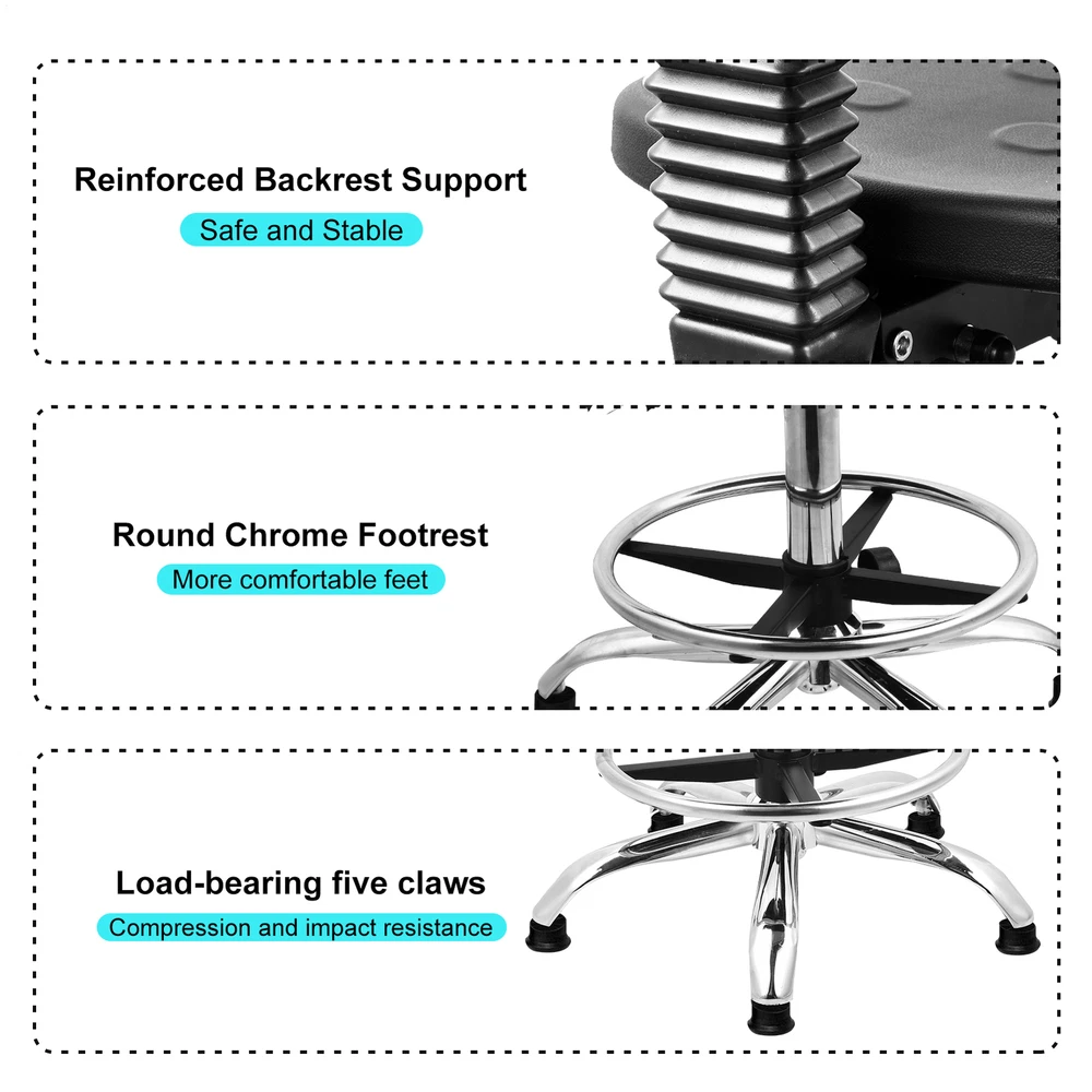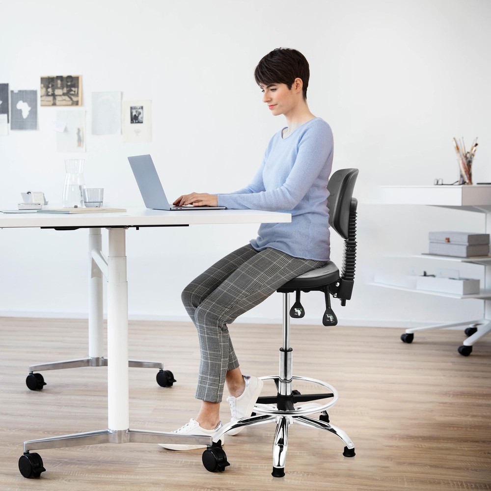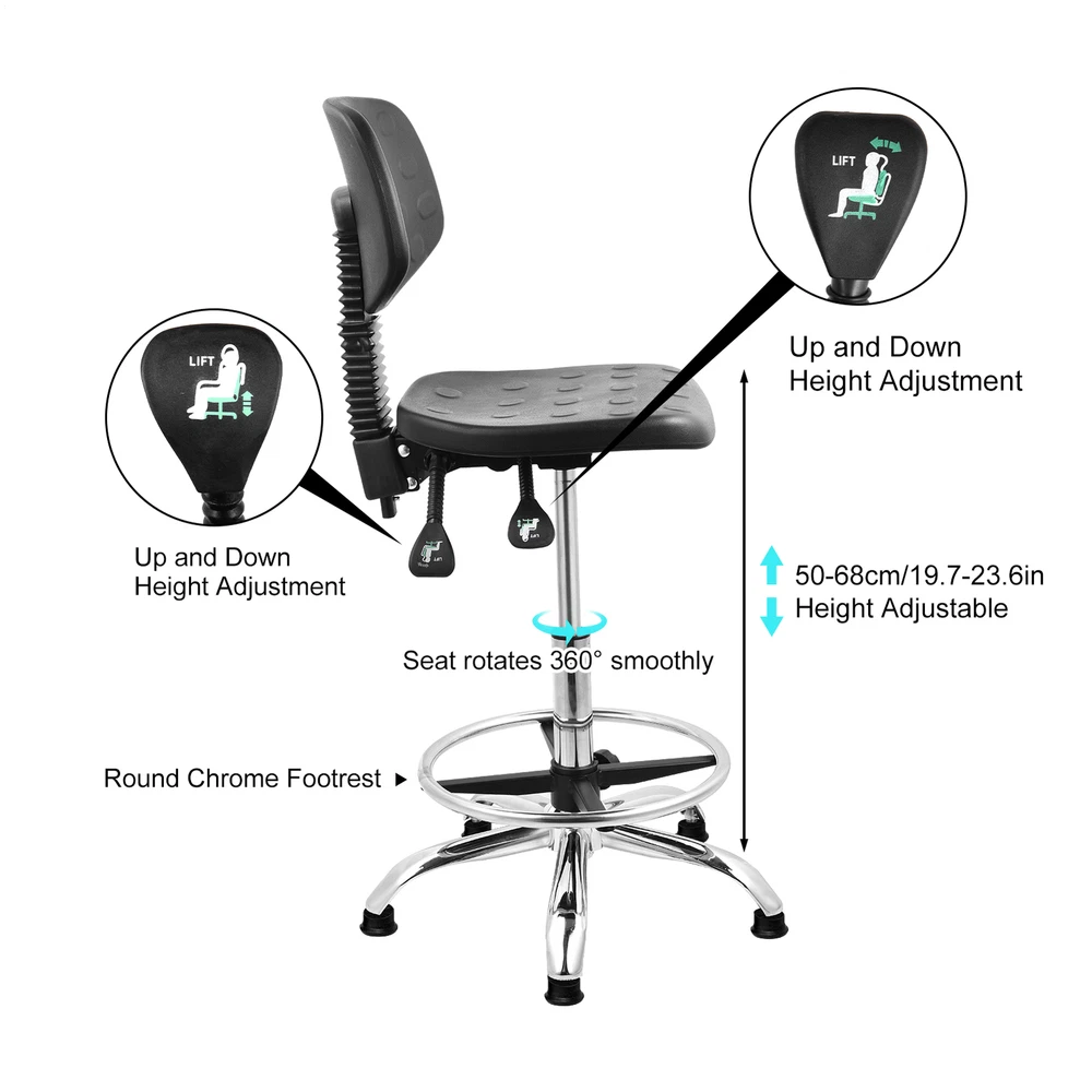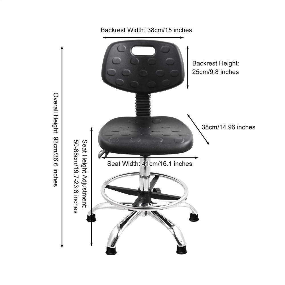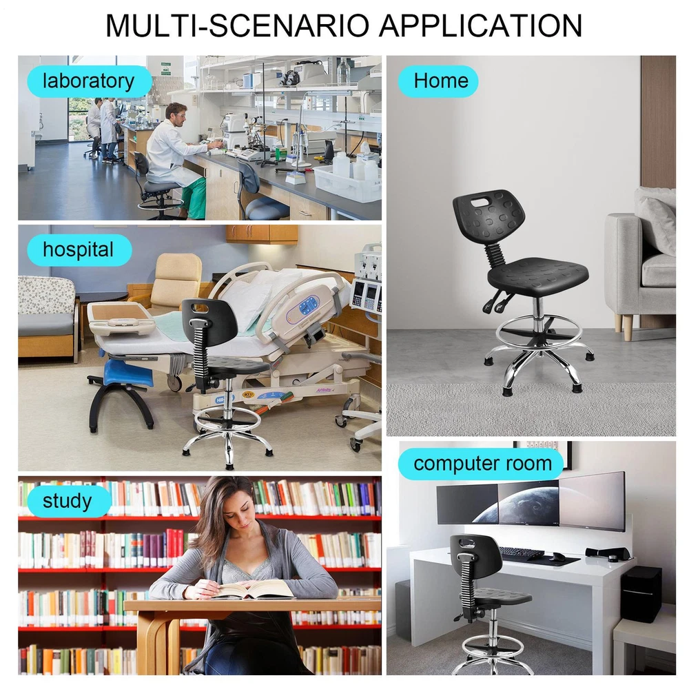 Store category Sign Up Now ! You may also like Product Description Bullet Points: Promoted Comfort: Our ergonomic drafting chair's lumbar support helps prevent muscle strain and fatigue from sitting for hours, allowing for a comfortable seating position Effortless Clean-Up: Ensure a clean work with our ergonomic drafting chair, crafted from waterproof and stain-resistant PU material. Effortlessly wipe away spills and stains with soap and water to maintain its comfortable seating. Enjoy easy cleaning with our easy-to-maintain design Flexible and Comfortable Work: With our ergonomic drafting chair, you can reach any adjacent work area with ease and swivel left or right for 360-degree rotation. Pivot around the pole without leaving the comfort of your seat, creating a flexible and comfortable work that boosts productivity Handy to Adjust: With an adjustable base and footrest, our ergonomic drafting chair is expertly designed to help you maintain a healthy posture and improve overall comfort. The adjustable design provides an optimal fit, while the footrest and base support your body for prolonged sitting Wide Application: Designed for cleanrooms, labs, or classrooms, our ergonomic drafting chair improves posture, enabling longer and more productive working hours Experience improved productivity and comfort in classrooms with this adjustable drafting chair. Designed with an adjustable base and footrest, prevent muscle strain and fatigue from sitting for hours. The stain-resistant PU material allows you to reach any adjacent work area. Specifications: Product name: Lab Stool Chair Material: PU Style: Footpad style/Pulley style Adjustable height: Footpad style 50-68cm/19.69-26.77 inches/Pulley style 45-58cm/17.72-22.83 inches Rotation: 360° rotation Is the chair back adjustable: Yes Packing List: 1* Adjustable Desk Chair Notes: 1. Due to different lighting and screen settings, the item color may be slightly different from the picture. 2. Due to different manual measurements, please allow a 1-2cm difference in size. Payment Delivery details Terms of sales About us Feedback & DSRs Payment Before you palce an order, please kindly make sure that you have a paypal account. We accept PAYPAL payment only. Payment should be completed within 2 days after auction closed, or unpaid dispute will be filed for an closing auction. An unpaid case will be filled after 4 days. Delivery details We ship to your eBay address. Each package will be shipped to US by UPS Regular Parcel with tracking number. Please check your shipping address carefully before checkout, it can't be changed if order completed. All items will be shipped within 1-2 business day upon receipt of payment.Orders placed on weekend will be shipped within 3 days. If you do not receive your item in 7-10 business days.please contact us immediately for further assistance. We will be responsible for any damages or losses incurred in the shipping process. About us We maintain high standards of excellence FIVE STAR and strive for 100% customer satisfaction! Positive Feedback is very important to us. We hope that you contact us immediately Before you give us neutral or negative feedback, so that we can satisfactorily address your concerns. We promise to offer the lowest price and high quality produce. Our working time: From Monday to Friday(9:30 am to 18:00pm), we don't working on holidays ,hope you can understand and know that , thank you. Please always talk to us via ebay Message. We appreciate your business and look forward to growing our e-Bay sales with satisfied customers. Feedback Contact us If you have any questions, please feel free to contact with us by ebay Message during our business hours ( 9:30a.m. to 5:30 p.m.), or email us through eBay, we will try our best to help you to resolve it. For any presale or after-sale questions,please do feel free to email us! Due to the time difference, each email will be replied within 1 working day,and weekend will be delayed a bit. Feedback