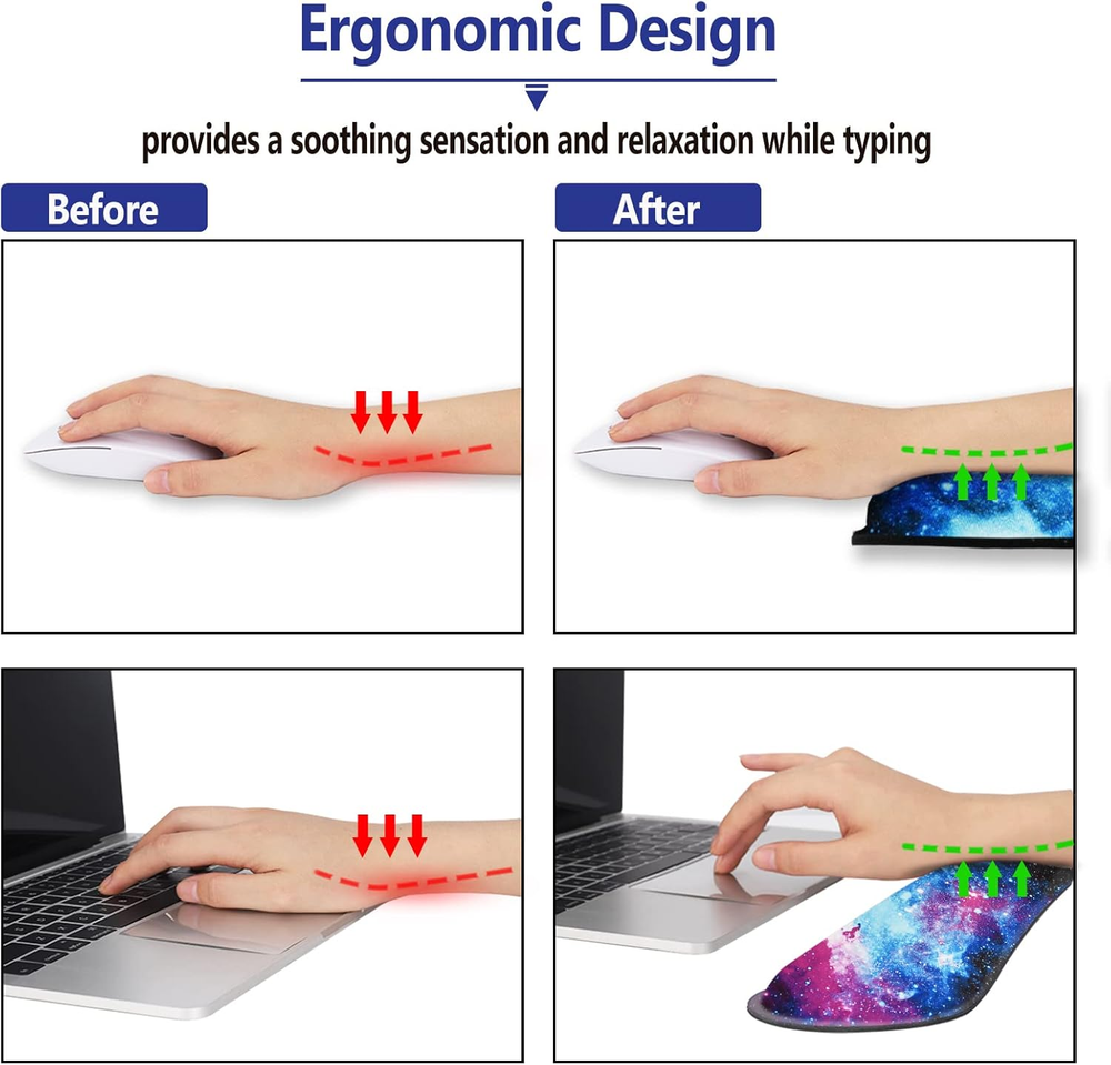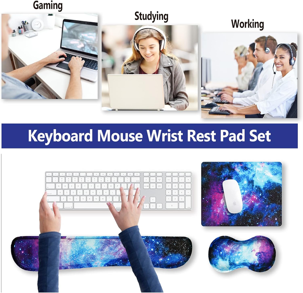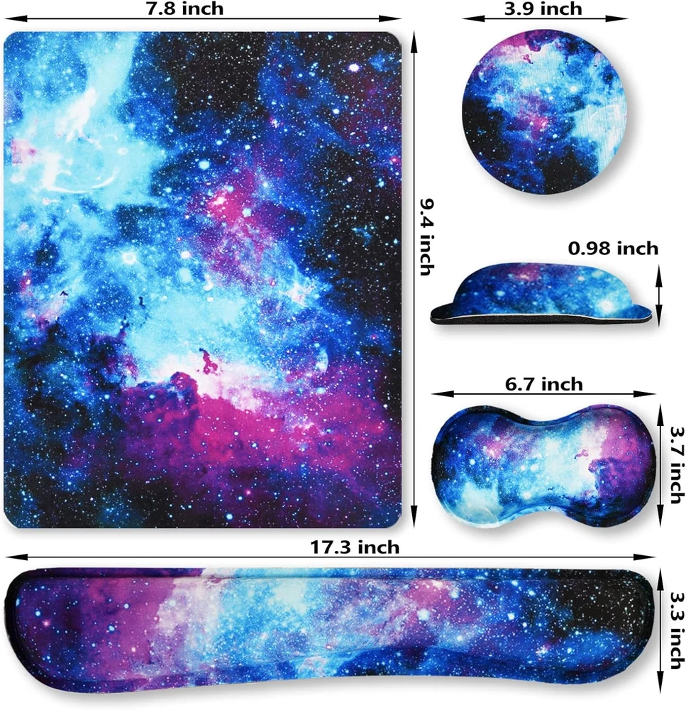 Store New Arrivals Add to Favorite View Feedback Contact Keyboard Wrist Rest and Mouse Pad with Wrist Support Set Ergonomic Coaster, Memory Foam Mousepad 4 in 1 Non-Slip Rubber Base Durable Comfortable for Easy Typing Pain Relief, Starry Sky Galaxy Description Item model number ATS-4in1 Color Starry Sky Galaxy Material Rubber Material Type Rubber Manufacturer Part Number ATS-4in1 Item Weight 8.1 ounces Shape Round Recommended Uses For Product Office, Gaming Special Feature Ergonomic Product Dimensions 17.3 x 9.4 x 0.98 inches Size Medium 【Excellent Quality】: The smooth fabric will allow you ease moving your mouse meanwhile precise positioning, give your hand a cosy environment to operate your mouse. Edges has been reinforced to prevent deformation and damage to the longer hours of use. The soft memory foam-filled cushion part will slowly bounce back when your hand leave it, not easy to out of shape 【Fatigue-free Typing Design】: This keyboard wrist rest and mouse wrist rest pad set is contoured ergonomically to keep the wrist well supported for 0. 98inch(25mm) higher while working and gaming for long periods of time. Perfect wrist & hand fatigue reliever for workers, gamers, writers, editors who are engaged at long typing work 【Non-slip Bottom Design】 : The bottom of the keyboard wrist mouse pad and cup coaster set adopts anti-skid natural rubber material. They can be firmly fixed on the desktop to prevent sliding. You can enjoy stable mouse or keyboard operation at work or in game 【Optimal Size 4 in 1 Set】: The keyboard wrist rest (17.3 in x 3.3 in x 0.98 in) , the mouse pad (9.4 in x 7.8 in) , the wrist rest pad (6.7 in x 3.7 in x 0.98 in ) ,and the cup coaster(3.9 in). This is a keyboard and mouse rest combo that will perfect fit all kinds of mouses or desks, maximum helps you ease your hands wrist pain or fatigue by providing you soothing sensation and relaxation, prevent muscle nervous or wrist injuries. 【Elegant Look】: Art Print, So Beautiful. Our ArtSo products care both quality and appearance, this is the difference between us and others. Any pattern of our mouse pads are handpicked to ensure a superb look. ArtSo : Art Print, So Beautiful The aim of the keyboard and mouse wrist pads is: Relief from the stress disorder. It helps with problems associated with excessive use of the keyboard or any other contraption that requires massive movement of the wrist, like carpel tunnel syndrome. Keeps wrists in neutral position. The product helps to perfectly align your wrists; it also supports them when you are not doing anything. Do you suffer from wrist sore or wrists would get red when using computer after a long time? Chose ArtSo keyboard wrist rest pad & mouse wrist rest with Cup coaster set 4 in 1 will give your everything in comfort you needed. The bottom work well keeping itself on the surface being used so it won't slide around while in use. Memory foam padding let’s your hands and wrists sink in soothingly and you can work or play computer game happily for hours or longer. Fatigue-free Typing Design reduced the strain on wrist, helps to avoid joint and wrist issues. Specifications: Wrist Filling Material: Memory form Mouse Pad-9.4×7.8inch Keyboard Wrist Rest Pad-17.3×3.3×0.98inch Wrist Rest Support Pad-6.7x3.7x0.98inch Cup Coaster-3.9inch (10cm) Package Included: 1×Mouse Pad 1×Keyboard Wrist Rest Pad 1x Wrist Rest Support Pad 1x Cup coaster Order ArtSo Keyboard and Mouse Wrist Pads today and say goodbye to uncomfortable and painful typing. Any questions, please feel free to contact ArtSo Direct, we will try our best to satisfy you. ABOUT US We offer the best prices around on high quality products. Our E-store includes media such as books, movies, music and games while offering electronics, toys, sporting apparel, clothing, tools, general home, garden items and more. SHIPPING We are always working hard to ensure your package arrives as soon as possible. Please understand that some factors like weather, high postal traffic, and the performance of shipping companies are outside of our control. We offer free shipping to the lower 48 states and ship within 2 business days of payment, usually sooner. We do not accept P.O. Boxes. Please provide a physical address. For shipping outside of the continental USA, we only use eBay's Global Shipping Program.The item is shipped to KY and then sent to the rest of the world. International customers are responsible for all duties and taxes. Continue to check out in order to calculate costs for shipping the item to your country. Messages regarding eBay's Global Shipping Program MUST be directed at eBay EXCLUSIVELY. RETURNS We offer a 30-Day Return Policy on items which you are not completely satisfied with. You have the option for a full-refund or an exchange of the item. No returns are available on items shipped outside of the USA. PAYMENT We accept PayPal. CONTACT US This page content is yet to come Please ad us to your favorite seller and visit again later Thank You CUSTOMER SATISFACTION We try our very best to make sure every customer is completely satisfied. If there's a problem, message us! We're happy to help. WE ACCEPT Copyright © 2021 AutoDS. | All Rights Reserved