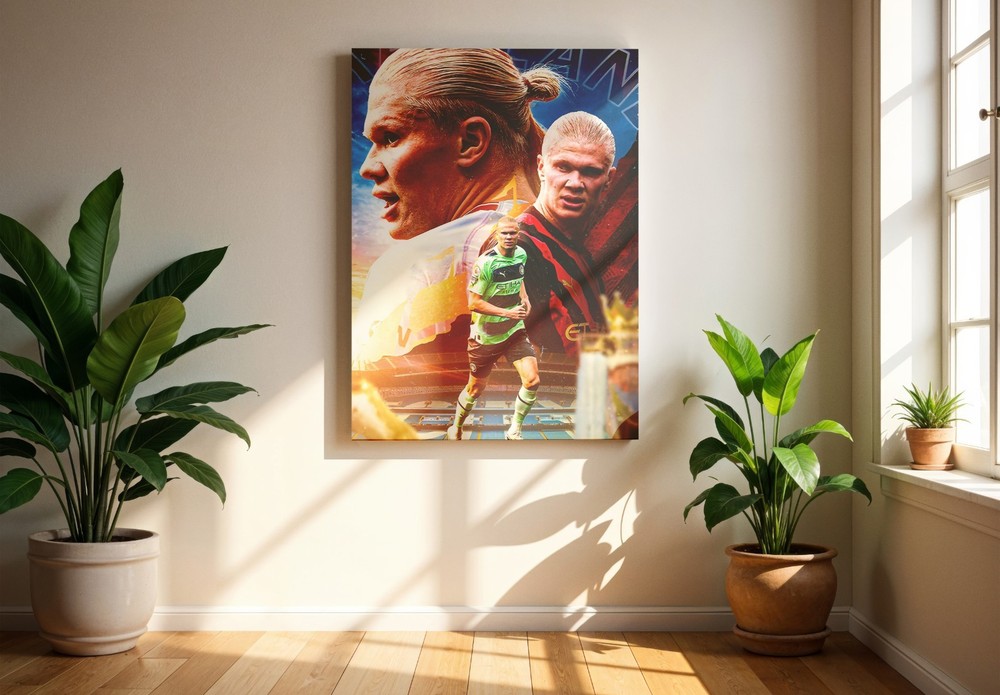 Erling Haaland Soccer Poster Art – Poster or Gallery Wrapped Canvas Bring home the energy of your favorite soccer player with this high-impact Erling Haaland Soccer poster or canvas print — perfect for any sports fan’s space. 🖼️ Two Premium Options : • Poster Print – Thick, high-quality stock with vibrant detail • Canvas Print – 1.5" deep, glossed, gallery-wrapped, and ready to hang 📏 Available Sizes : • 24x36 inches • 30x40 inches • 40x60 inches This artwork is ideal for your man cave, game room, office, or bedroom , and makes a perfect gift for Erling Haaland fans or soccer lovers. 💬 Questions? We’re happy to help — just send us a message!