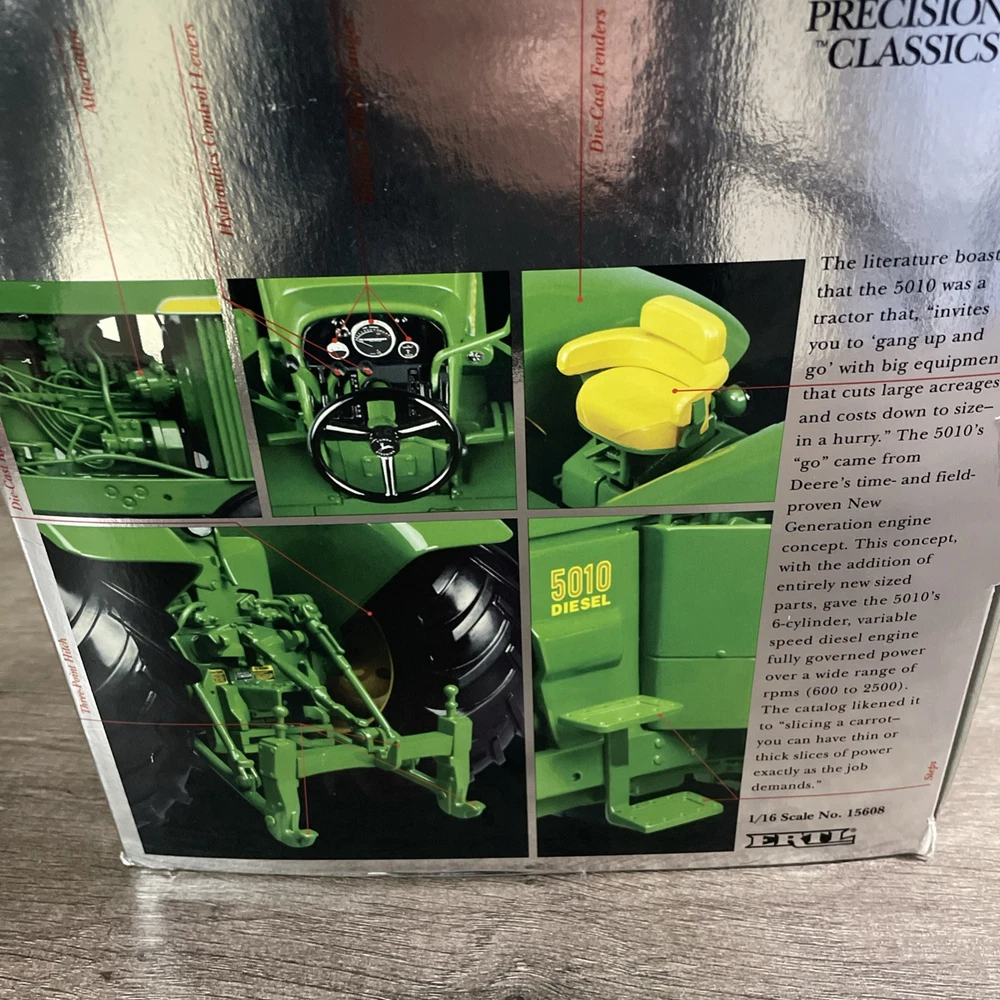 The Ertl 1/16 John Deere 5010 Precision Classic Tractor is a highly detailed model of a 1966 John Deere tractor, part of the Precision series. This diecast toy vehicle is designed with precision and accuracy, featuring the iconic green color associated with John Deere vehicles. With a scale of 1:16, this model showcases the craftsmanship and attention to detail that Ertl is known for, making it a sought-after collectible for fans of farm vehicles and John Deere enthusiasts.