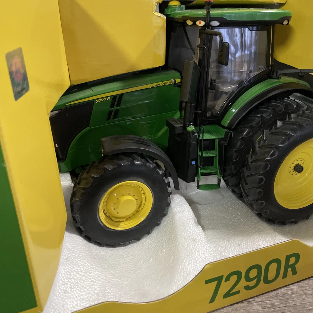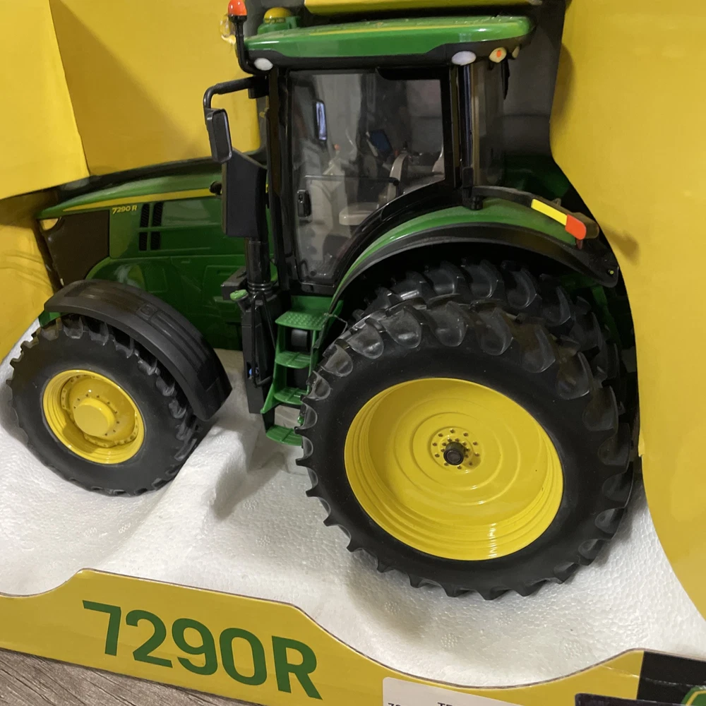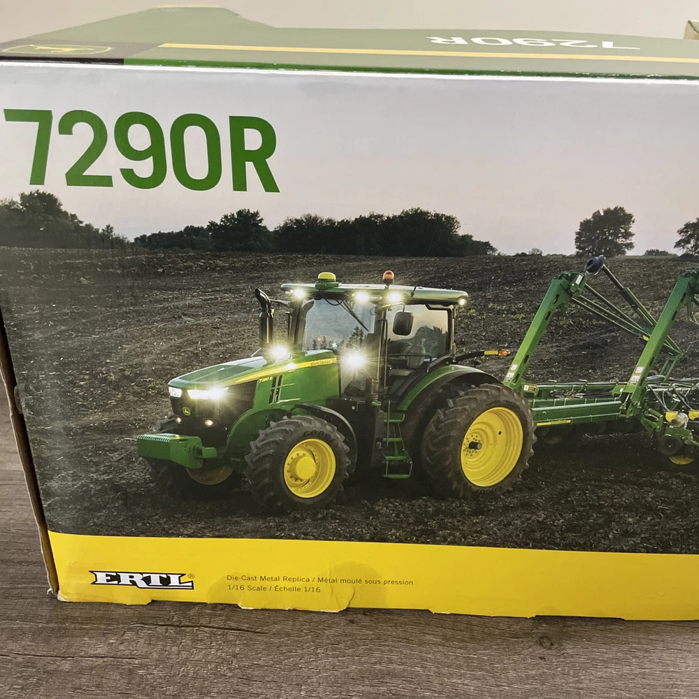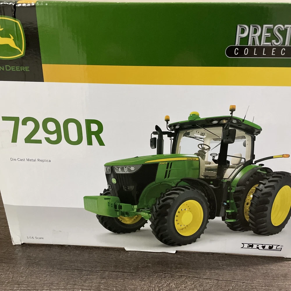 The Ertl 1/16 John Deere 7290R Prestige Edition Tractor is a collectible die-cast model featuring intricate details and a scale of 1:16. Made by Ertl under their Prestige series, this replica of the John Deere 7290R tractor is colored in the signature green of the brand. The toy is designed to resemble a contemporary farm vehicle, specifically a tractor, and is manufactured in China. Perfect for collectors and enthusiasts of farm vehicles, this model showcases the quality craftsmanship and attention to detail that Ertl is known for in the die-cast toy industry.