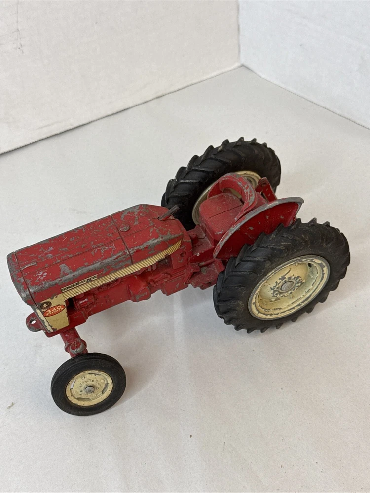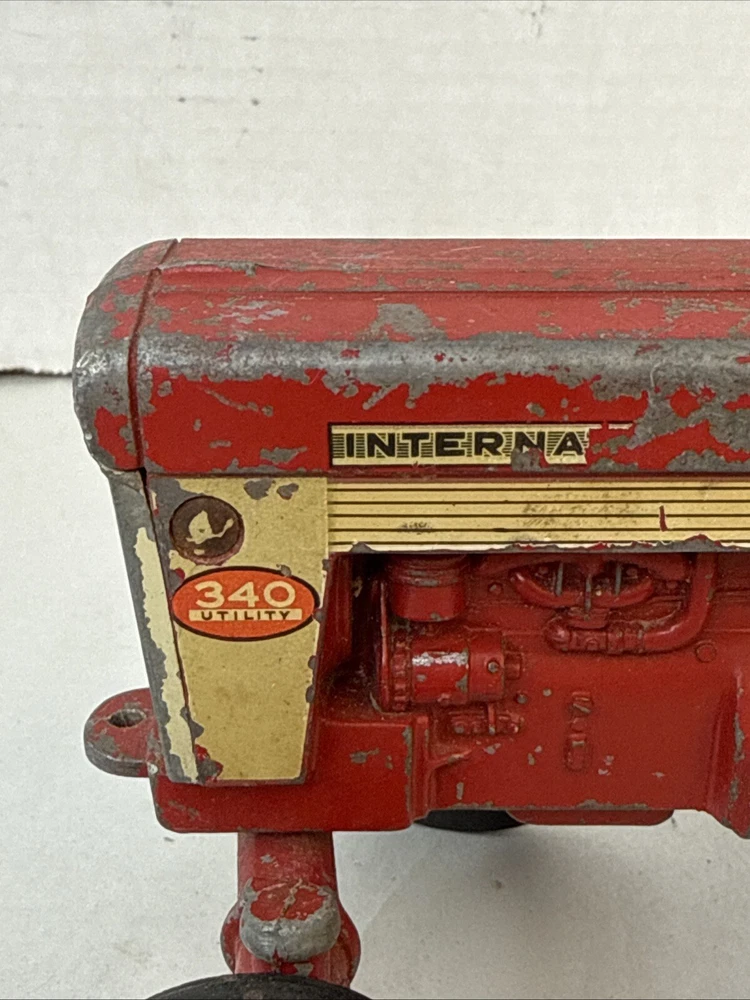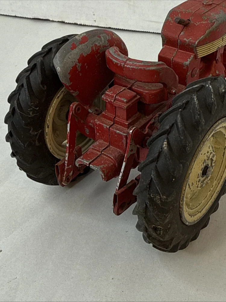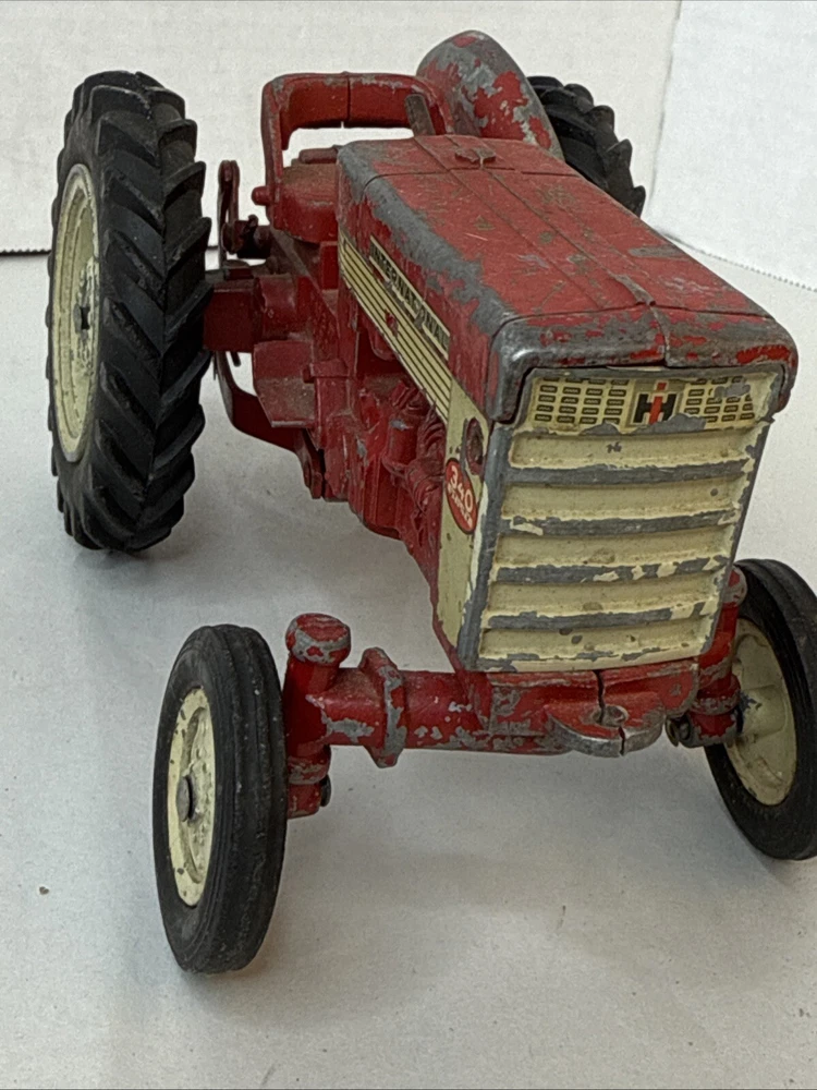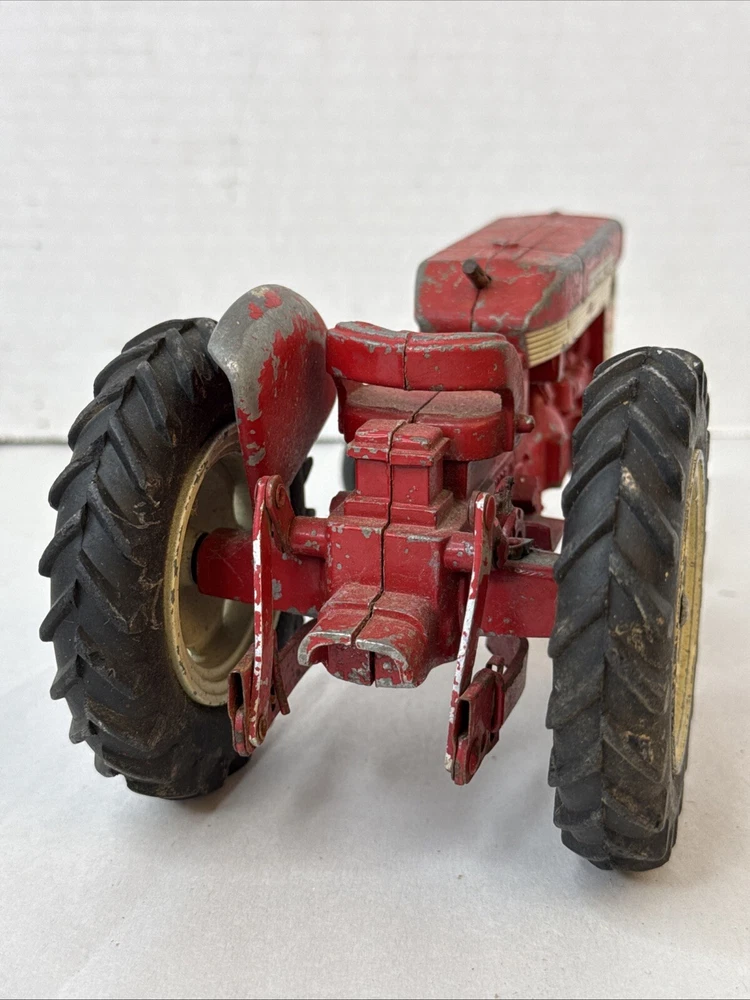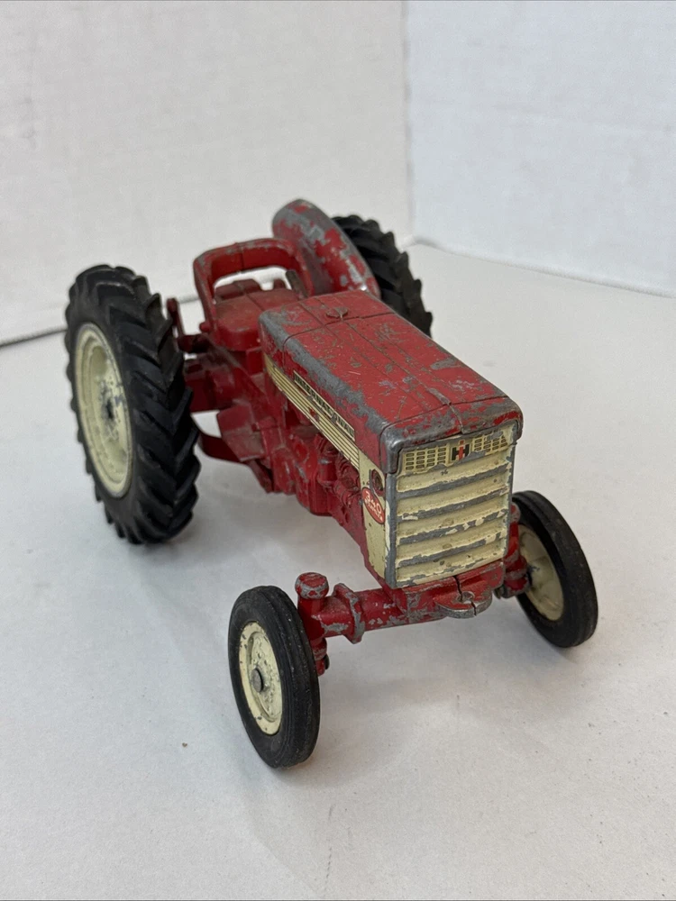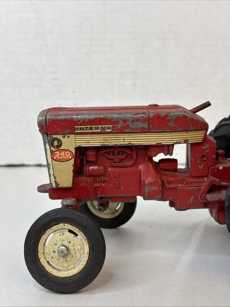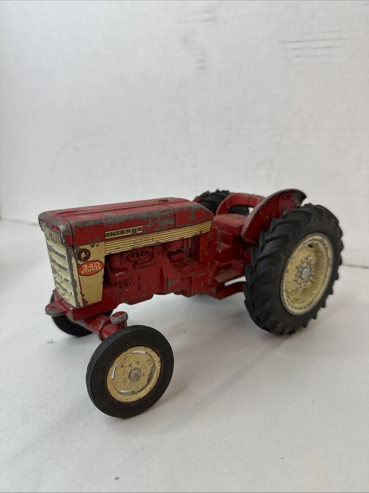 1/16th scale ERTL International vintage tractor, good condition for age, missing some parts, has marks and signs of wear from use over time