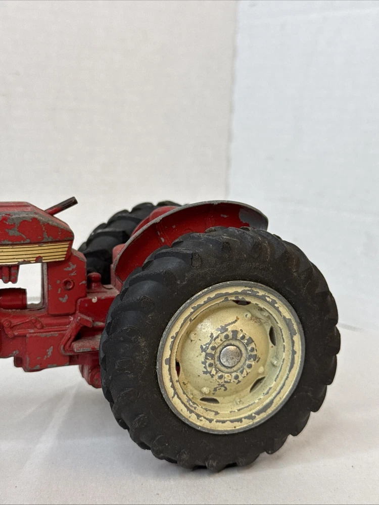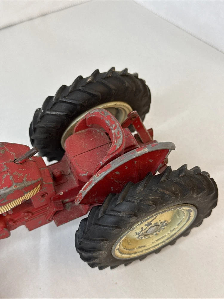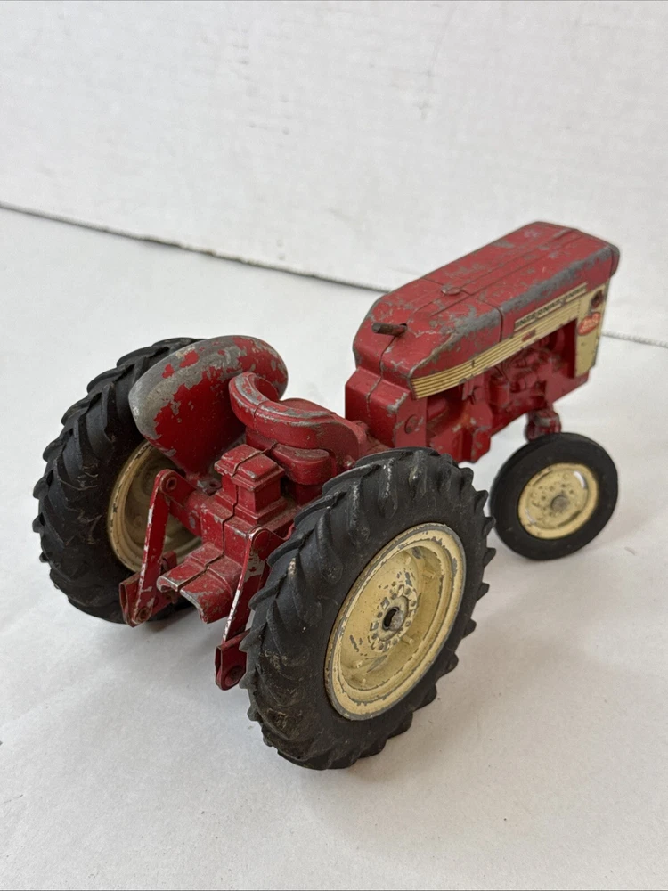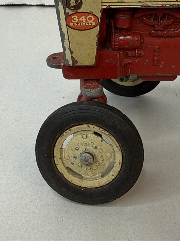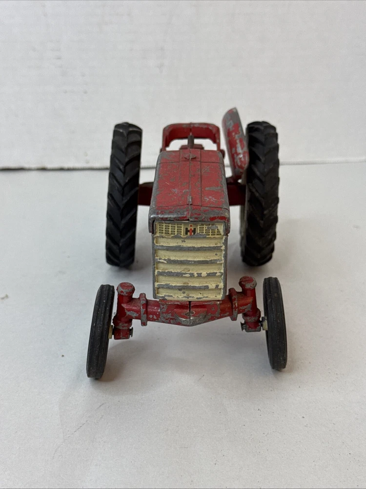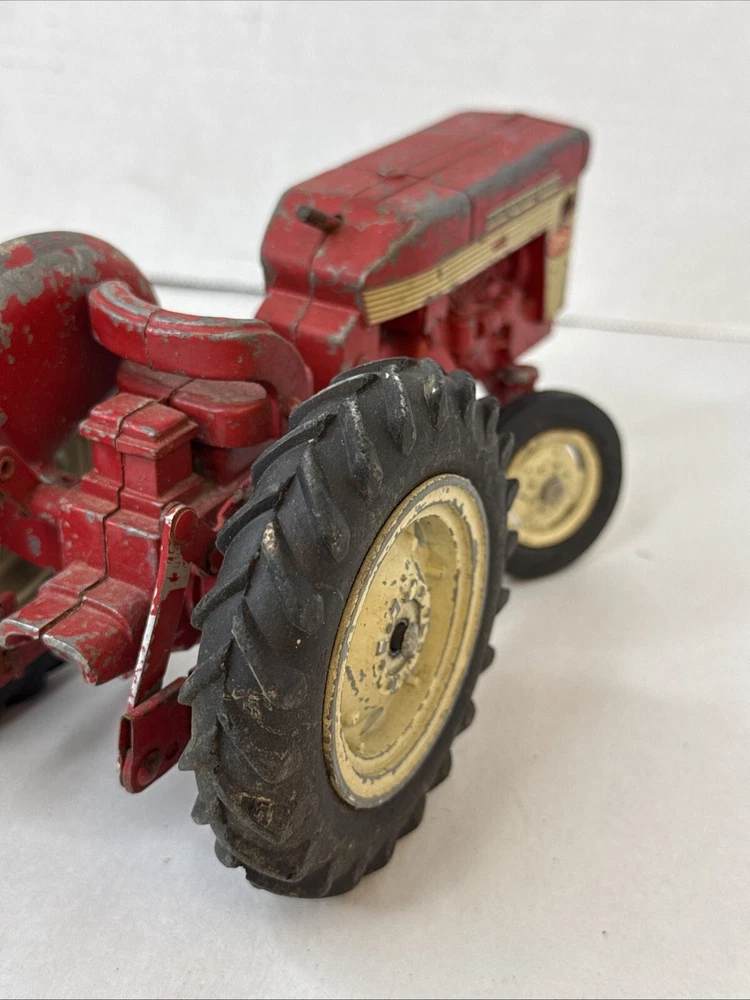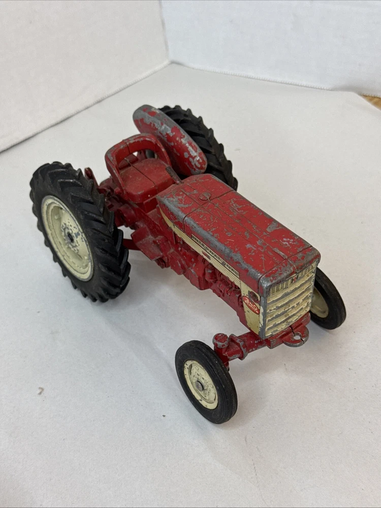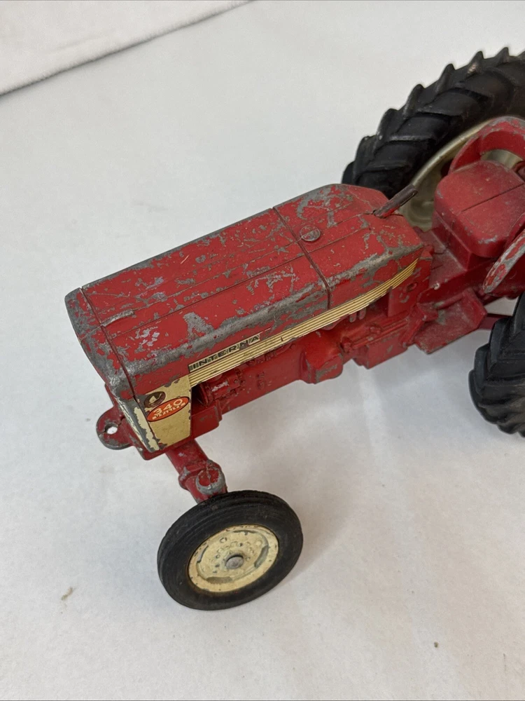 1/16th scale ERTL International vintage tractor, good condition for age, missing some parts, has marks and signs of wear from use over time