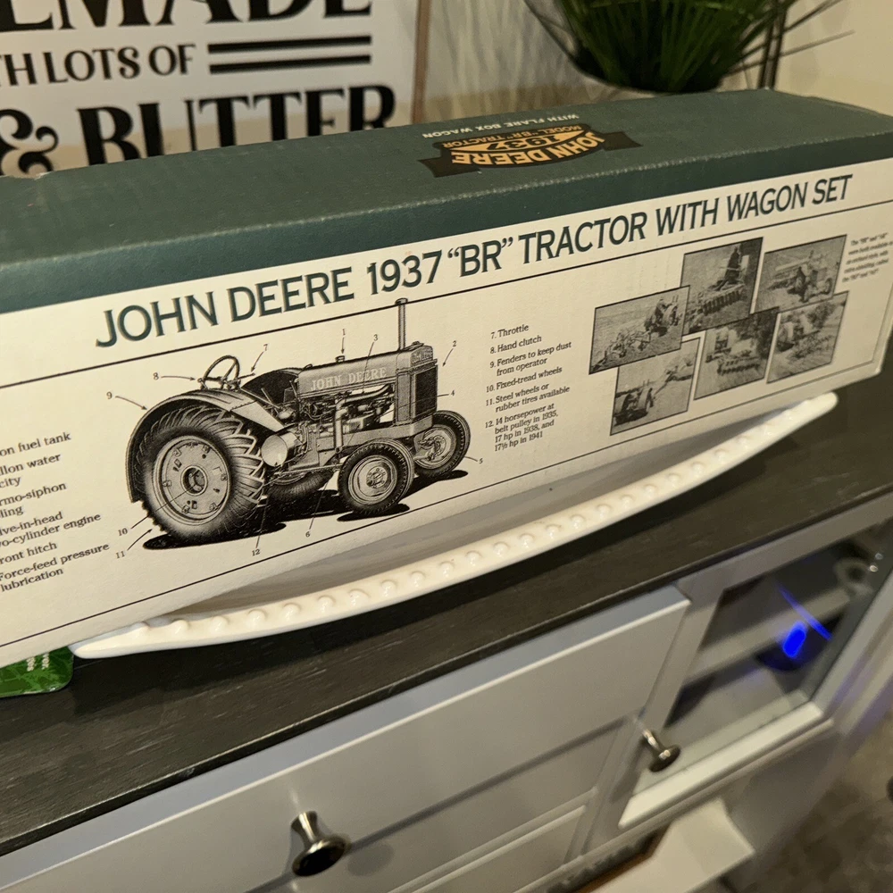 For those who appreciate farm toys, this 1:16 scale Ertl John Deere 1937 Model BR Tractor with Flare Box Wagon is a must-have. Made from diecast material, this collectible has been expertly manufactured in the U.S.A. and features intricate details that make it a great display piece. The vibrant green color and classic John Deere branding add to its charm. The tractor comes with a wagon attachment, making it a perfect addition to any farming scene. Whether you're a collector or just looking for a unique gift for a farm toy enthusiast, this Ertl John Deere set is sure to impress.