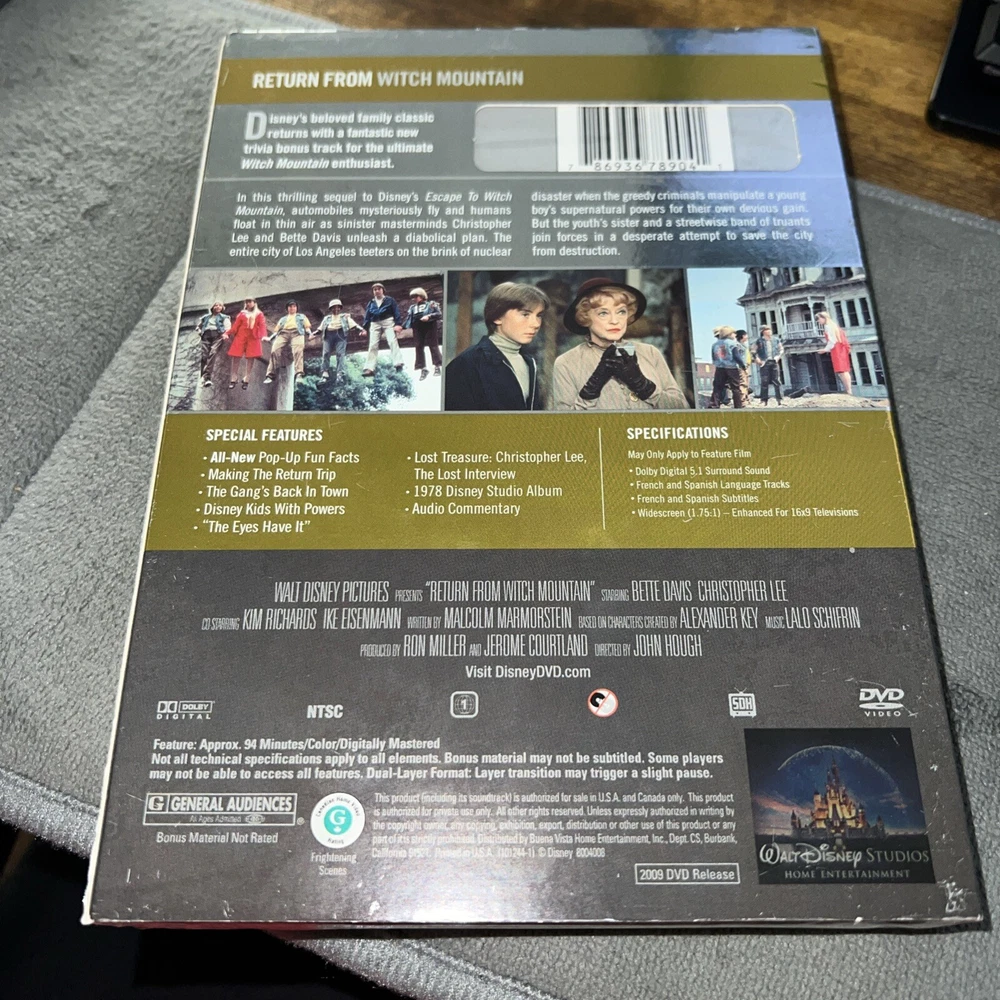 Release Year:2009Genre:Children's & FamilyUPC:0786936789041Format:DVDActor:Bette Davis, Christopher Lee, Ike Eisenmann, Kim Richardsgtin13:0786936789041Rating:GMovie/TV Title:Return from Witch MountainSub-Genre:Live-ActionDirector:John Hough