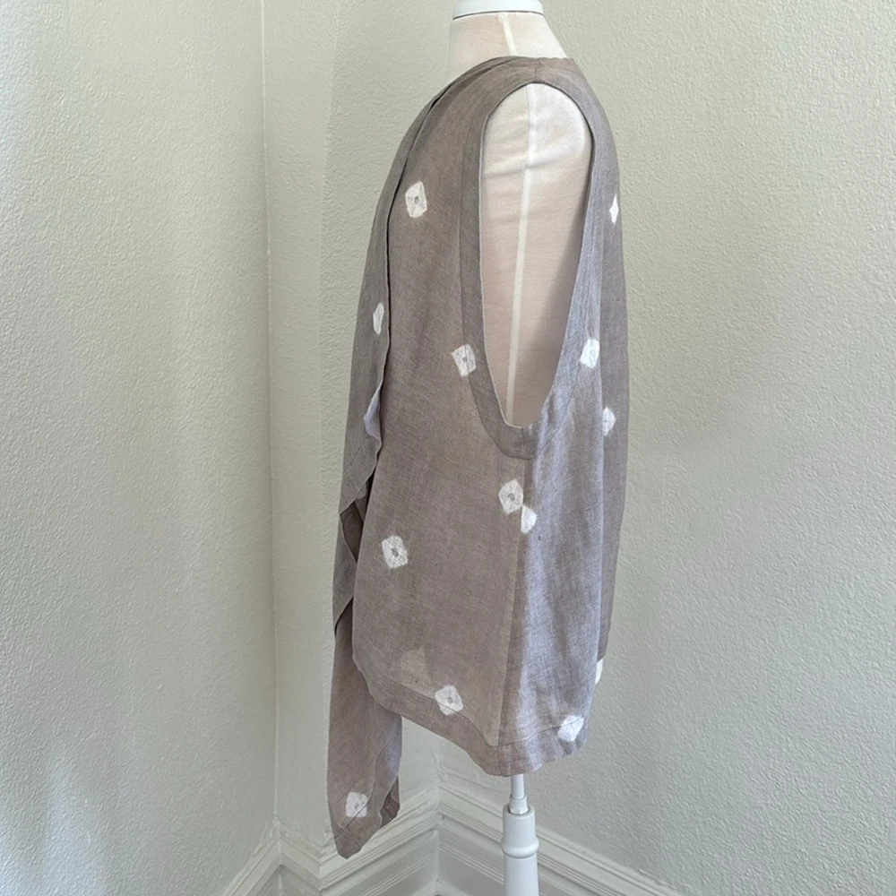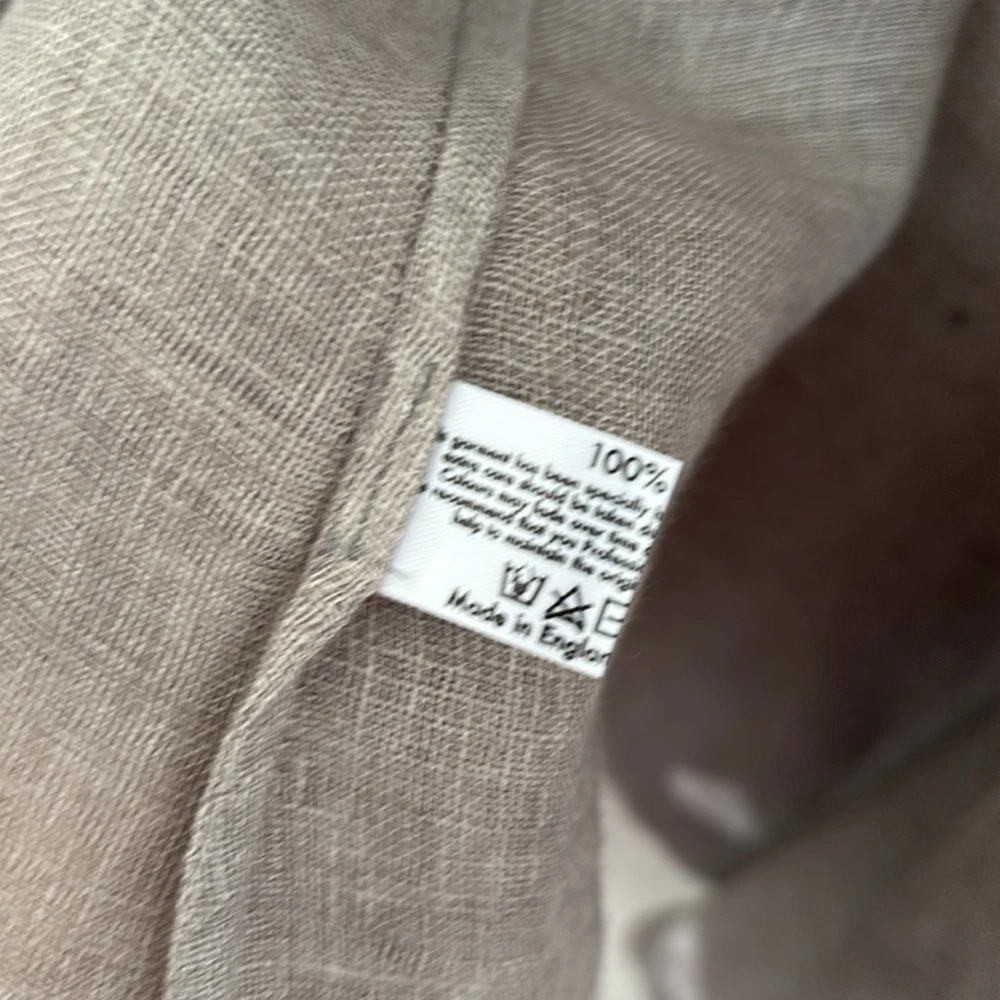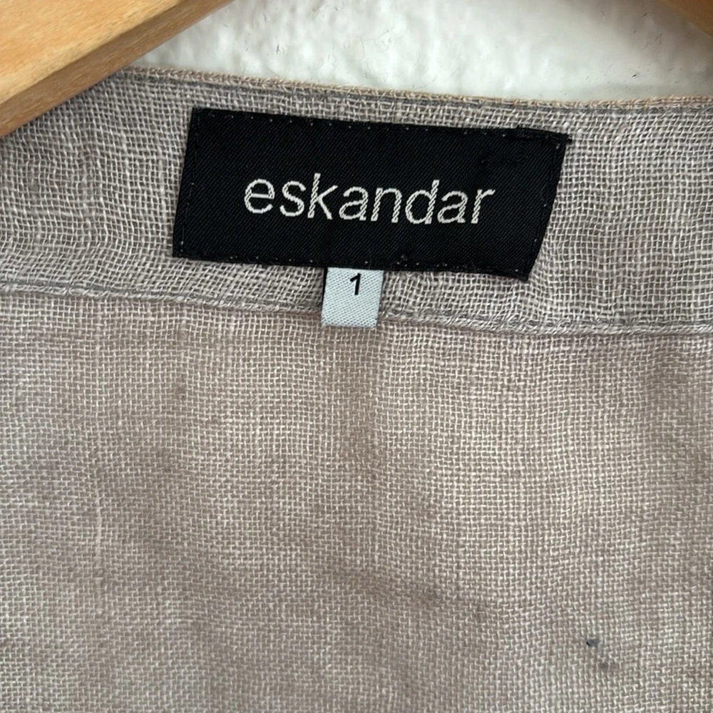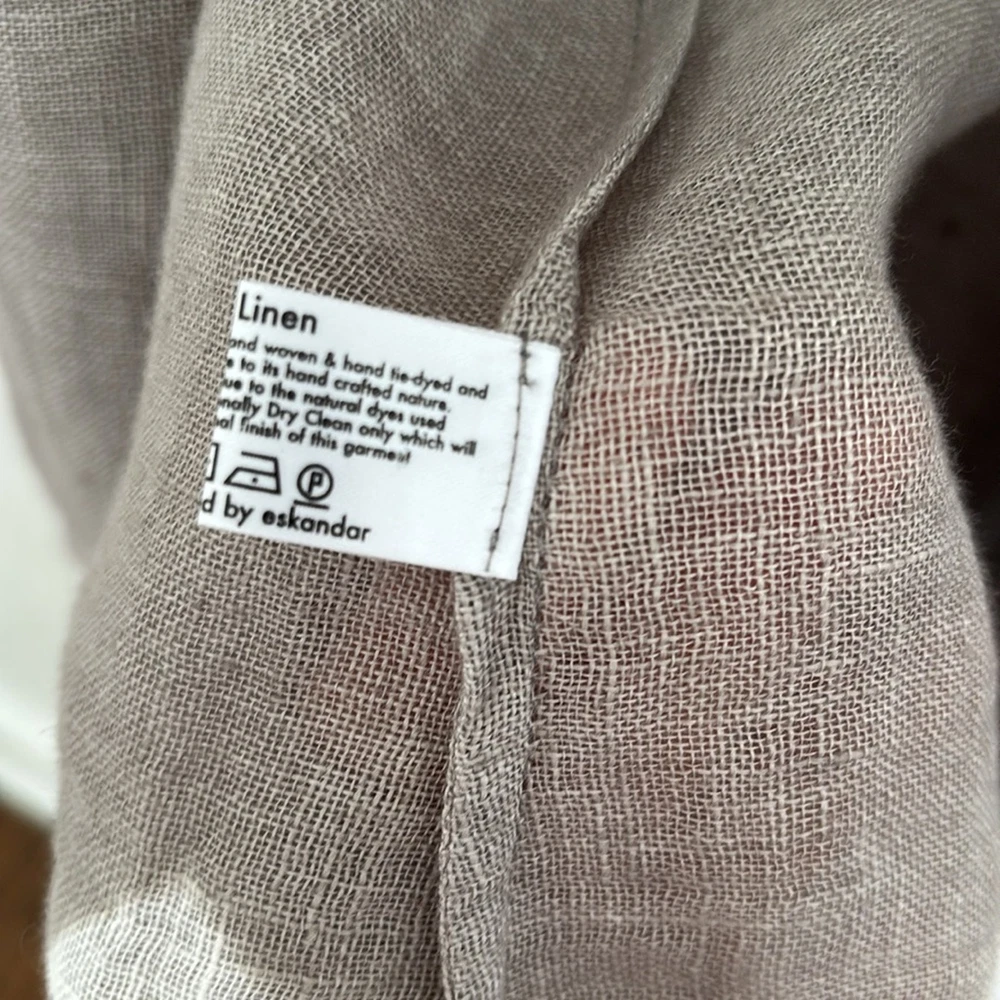 Eskandar Linen Long Line Open Front Lagenlook Vest Cardigan Duster Size 1 - US 10 12 See measurements to ensure fit as this could fit larger than a 10 -12 Made in England beautiful Lagenlook linen open front sleeveless cardigan with an asymmetrical hem Light Brown/Dark Tan color Condition: Great Preloved - I fixed a couple of snags so the thread is visible on the inside of the garment Keep in mind that linen has natural knots so there are some in the fabric. Approximate Measurements laid flat Armhole Length: 14.5” Length 27” - 41” Lagenlook, linen, longline, boho, coastal grandma, contemporary, minimalist, layer