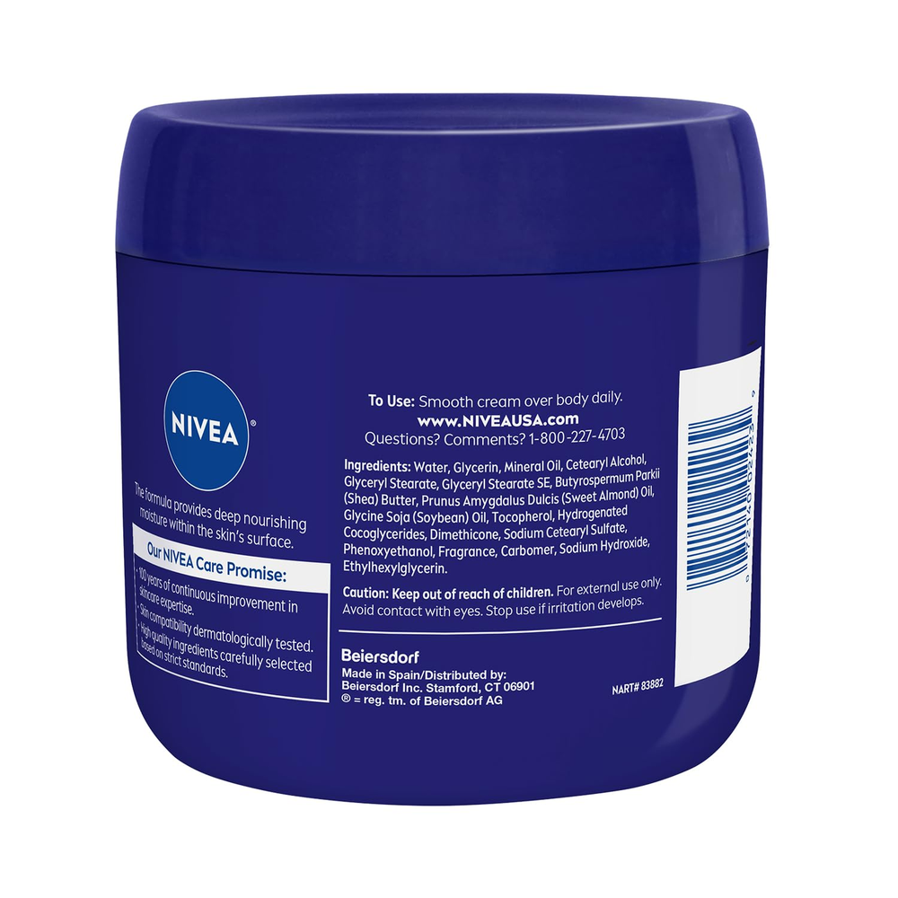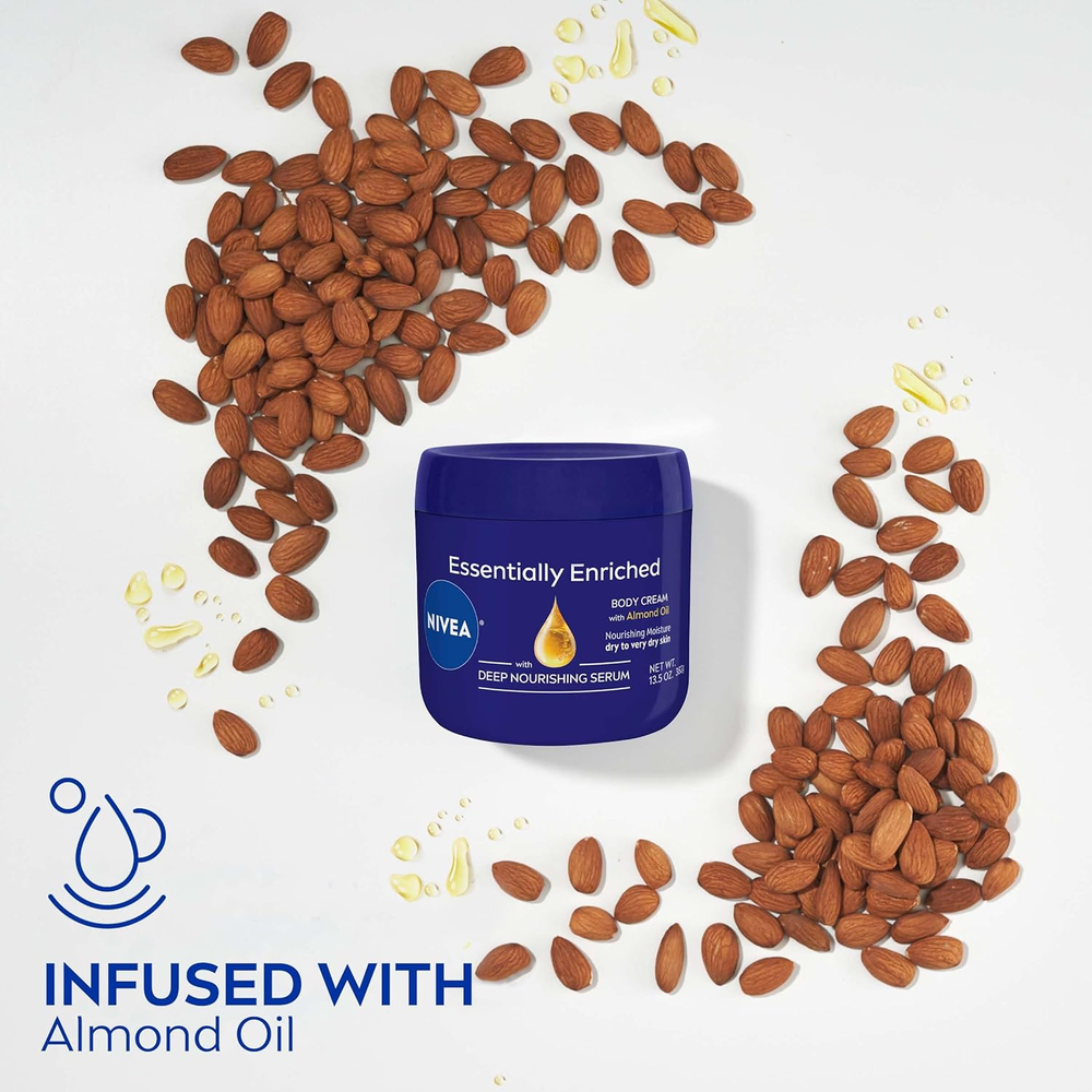 Neighborhood service Essentially Enriched Body Cream, Moisturizing Cream for Dry and Very Dry Skin, Enriched with Deep Nourishing Serum and Almond Oil 13.5 Oz Jar ENJOY THE FEATURES Tested & Trusted: Dermatologically tested dry skin cream provides skin with deep nourishing moisture For Dry and Very Dry Skin: Enriched with Deep Nourishing Serum and Almond Oil for skin nourishment for dry to very dry skin Lock In Moisture: This dry skin moisturizer cream locks in moisture and provides noticeably smoother skin Daily Body Cream: To use, smooth this moisturizing cream over the body; use daily for best results Trusted Brand: NIVEA is a trusted leader in skin care products, with more than 130 years of expertise Includes one (1) 13.5 ounce jar of NIVEA Essentially Enriched Body Cream With NIVEA Essentially Enriched Body Cream, nourishing your skin with deep moisture is not as far away as you think. Enriched with our Deep Nourishing Serum and Almond Oil, this NIVEA body cream provides deep, nourishing moisture to dry to very dry skin. This NIVEA moisturizing cream formula locks in moisture and provides noticeably smoother skin. Give your skin a little extra care and lasting moisture with this dermatologically tested body moisturizer for dry skin. To use, smooth NIVEA Essentially Enriched Body Cream for dry skin over the body, and use daily for the best results. This NIVEA cream can also be used as a hand cream or foot cream. Check out the entire NIVEA line of products for your skincare regimen. NIVEA is proud to be one of the leading companies in the field of skin care products, with more than 130 years of experience. Item dimensions L x W x H 3.7 x 3.7 x 3.72 inches Item Volume 13.5 Fluid Ounces Active Ingredients almond oil,carbomer,cetearyl alcohol,glycerin,glyceryl stearate,sodium hydroxide,tocopherol Product Dimensions 3.7 x 3.7 x 3.72 inches; 15.84 ounces Country of Origin Poland Age Range (Description) Adult Scent Fresh Scent Size 13.5 Ounce (Pack of 1) 3.66 inches x 3.7 inches x 3.58 inches. Weight: 15.84 oz PAYMENT We accept all payments via Ebay using Credit Cards , PAYPAL , Apple Pay and many others SHIPPING We are always working hard to ensure your package arrives as soon as possible. Please understand that some factors like weather, high postal traffic, and the performance of shipping companies are outside of our control. We offer free shipping to the lower 48 states and ship within 3-5 business days of payment, usually sooner. We do not accept P.O. Boxes. Please provide a physical address. We do not ship internationally at this time. DELIVERY & RETURN POLICY We do not offer returns unless the item violates eBay policies. Please be aware these polices only make sellers accept returns if the item violates eBay's Buyer Guarantee. If you would like to learn more about this please visit eBay's Help Page. Thank you for your business