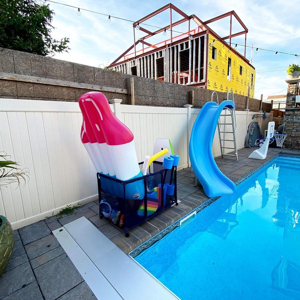 This mesh storage bin is a game-changer for pool toy organization! The sturdy PVC frame and tough mesh hold noodles, floats, and balls without trapping water. Kids love how easy it is to grab their toys, and I love how neatly everything stays in one place. The compact height is perfect for little ones, while the wide design fits all our pool gear. No more tripping over scattered toys—just toss them in and roll the bin away! Super convenient and built to last through seasons of fun.
