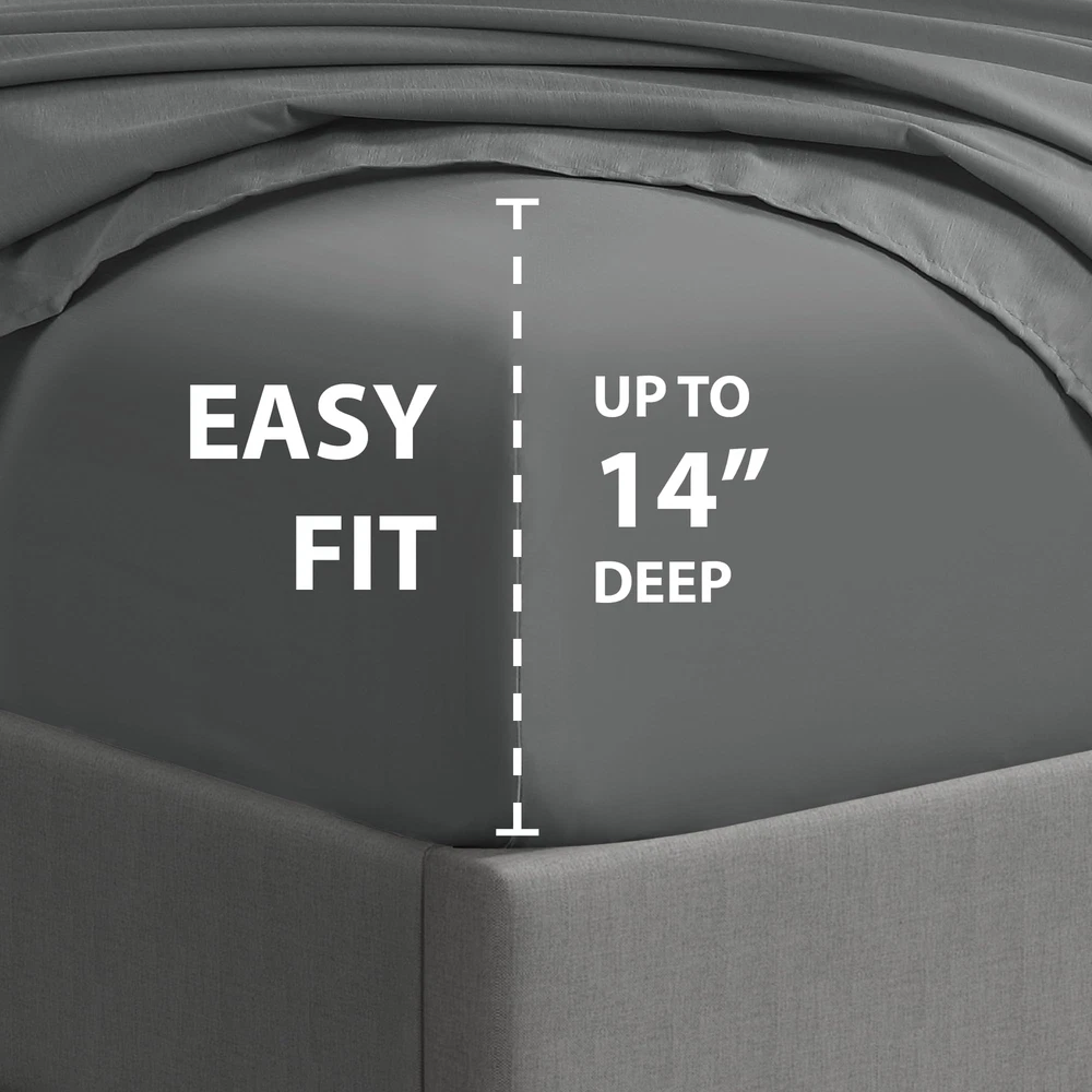 Composed of 100% polyester double brushed yarns for a crisp ironed look that is resistant and remain soft to the touch. Durable and long lasting, our ultra-thin sheet set comes in an array of neutral and vibrant colors that will not fade or shrink with every wash. You'll feel comfortable sleeping on them all night long. WHAT’S INCLUDED - Twin Set Includes: 1 Fitted Sheet 39" x 75", 1 Flat Sheet 66" x 96", 1 Pillowcase 20" x 30". WHY WE LOVE THESE SHEETS: Whether curling up with a good book or drifting off to dreamland, our sheet set will provide the perfect touch of relaxation and style to your sanctuary. These luxurious, durable sheets are crafted from 100% microfiber polyester and double brushed for amazing softness to pamper you all night long and for years to come. Available in a wide range of vibrant colors, you can add a pop of personality to your bedroom while enjoying blissful sleep. *Microfiber is an umbrella term for ultra-fine synthetic fibers that are commonly made from polyester and polyamide. *Please bear in mind that due to the difference in lighting and monitor settings, the color of the actual product may vary slightly from what you see on screen. EASY FIT - The fitted sheet is fully elasticized with extra strength elastic and can easily accommodate mattresses between 10" - 14” thickness for a snug fit. EASY CARE - and fade resistant, these sheets are machine washable - cold with like-colors - and quick drying for easy care. OEKO-TEX CERTIFIED - Tested and certified to be free from harmful chemicals, the sheets meet high safety standards.