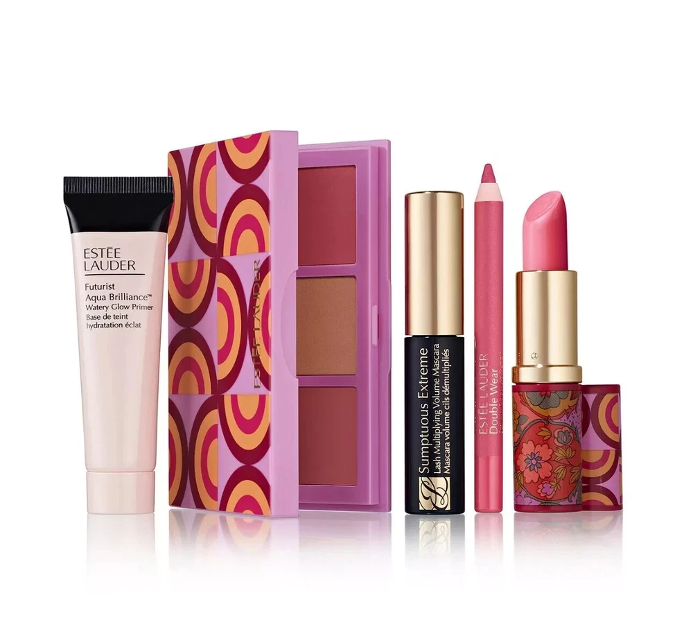 Estee Lauder 6 Pc Makeup Set Blush Palette Primer Lip Pencil Lipstick New Sealed