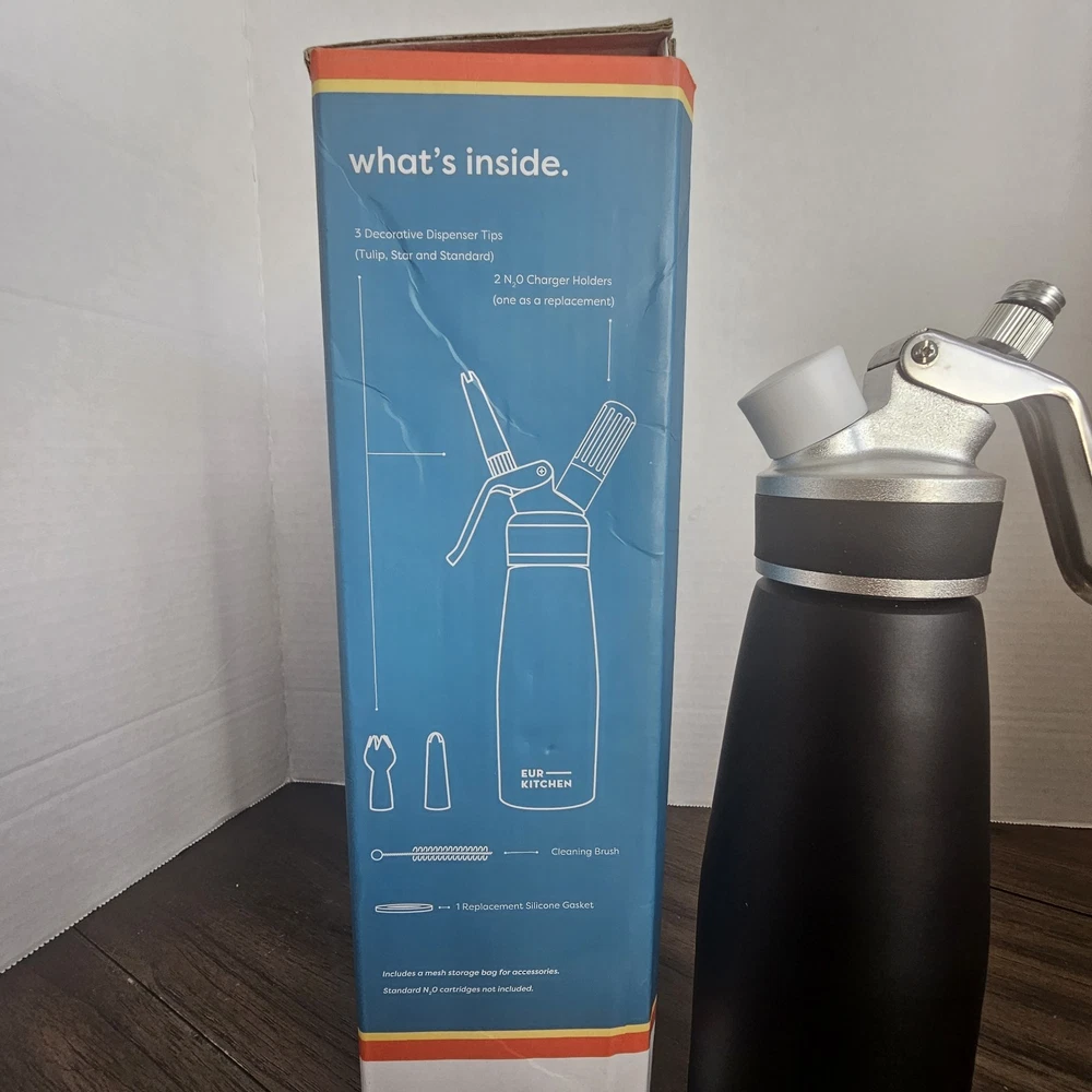 EurKitchen Professional Whipped Cream Dispenser - Black NIB. Pre-owned condition, please review all of the photos of the actual item for more details, measurements, and as your visual condition description, and feel free to ask any questions.