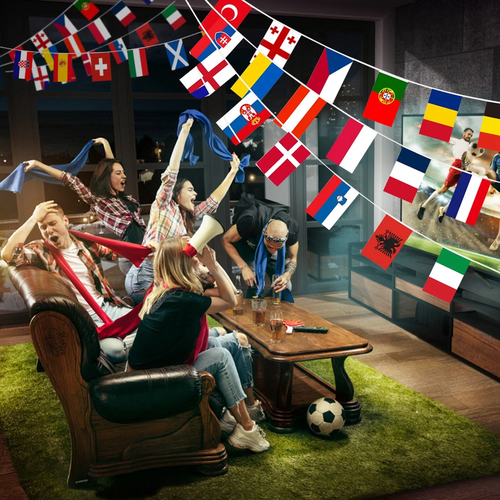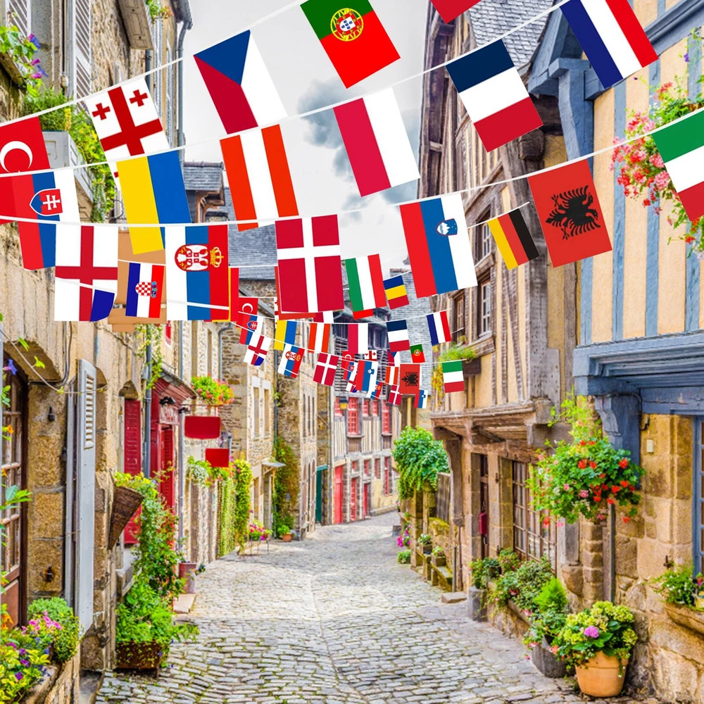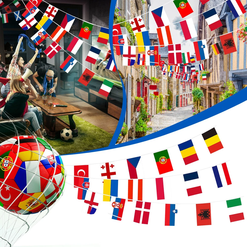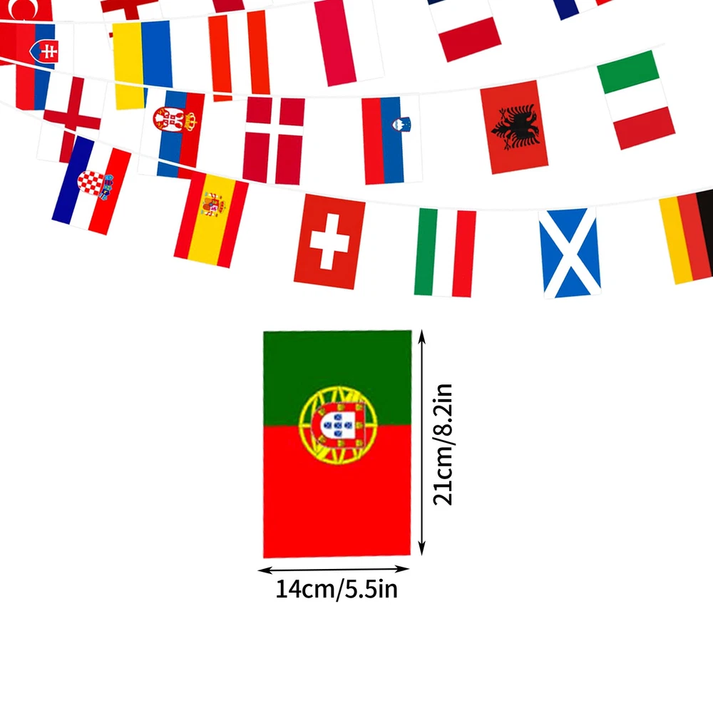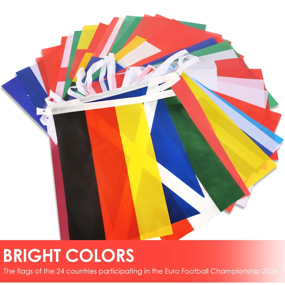 24 Team Flags In 2024 Information about this article: [Size]: There are a total of 24 flags, with a small size of 14x21 cm/5.51 * 8.26 inches (width x depth) and a rope flag length of 26.25 feet/8 meters. [Countries]: The 24 countries in the 2024 season are Germany, Scotland, Hungary, Switzerland, Spain, Croatia, Italy, Albania, Slovenia, Denmark, Serbia, England, Poland, the Netherlands, Austria, France, Belgium, Slovakia, Romania, Ukraine, Türkiye, Portugal, and so on. Our flag includes all countries/regions of the 2024 season . [Information]: The 2024 season will be held in Germany . We celebrate this football game. We can decorate our house and club in advance. [Bright Colors]: Its bright colors will last for a long time. 【 High Quality 】: Even after rain, the flag remains in its color and will not fade Size: 5.51in * 8.27in Including: 24 * fl ag+1 * rope flag