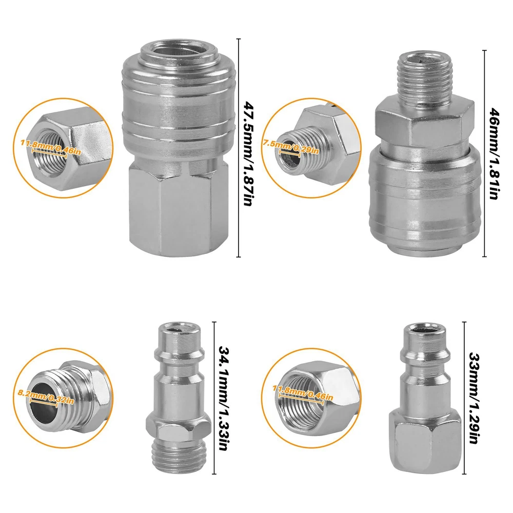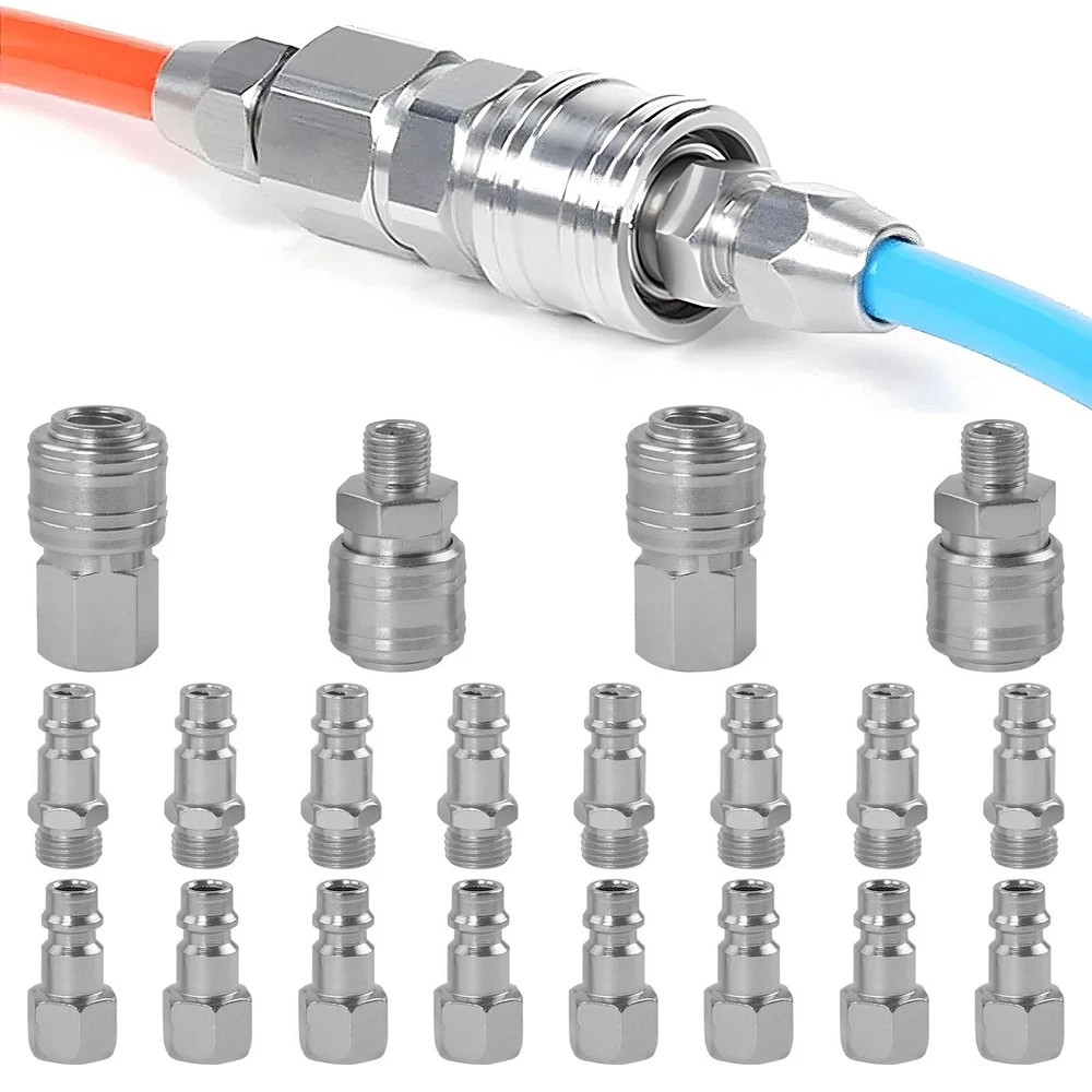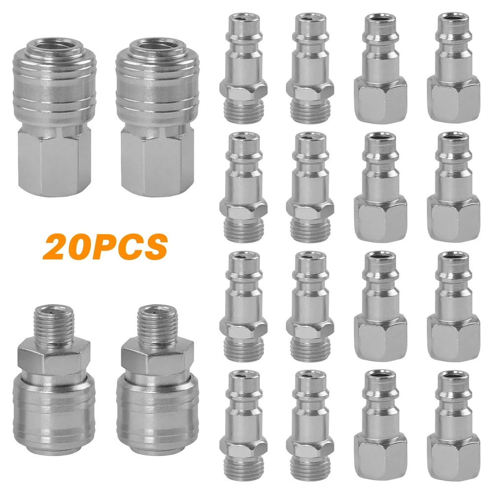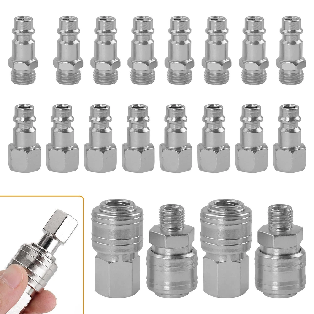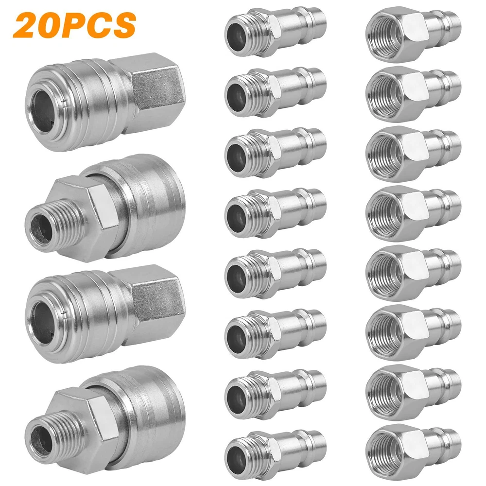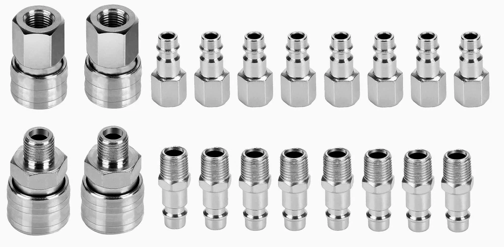 product Store Home Shipping Payment Warranty and Guarantee Other Policies Item Description 20 Pcs Euro Air Line Hose 1/4" Fitting Connectors Male Female Quick Release The Air Hose Couplings Can be Used for Pneumatic Tools, Air Compressors, Air Nail Guns, Air Guns, Hight Pressure Cleaners, Air hoses, etc. Enables tools and airlines to be quickly connected / disconnected. Reduces accidental airline disconnection. Specifications: Size: 1/4'' Material: Nickel Plated ( Corrosion Resistant) A3 Iron ( Strength & Durability) Main Colour: Sliver Type: Air Line Fitting, Air Compressor 20 Pcs in the Package Quick Release Easy to Operate Instructions: Assemble: 1. Screw on the Connector 2. Press Down to Connect Disassemble: 1. Press Down and Pull the Sleeve Package included: 8 x 1/4" BSP Female Thread 8 x 1/4" BSP Male Thread 2 x 1/4" BSP Fitting with Female Thread 2 x 1/4" BSP Fitting with Male Thread Item Pictures More Shipping 1.We ship to worldwide,except Hong Kong,Taiwan,Macao,China,Guemsey,Puerto Rico and we do not ship to APO/FPO, etc. 2.Item will be shipped within 3 business day on payment received. 3.Items are shipped from China using Airmail,reach most of countries within 10-20 business days. 4.sDelivery time depends on destination and other factors,it may takes up to 20 business days. Payment 1.We accept Paypal only. 2.All major credit cards are accepted through secure payment processor PayPal. 3.Payment must be received with 7 days of auction closing 4.If you have bought multiple items from us,you can send us one payment for all the items instead of paying for them individually. When you click the Pay Now button,eBay will automatically determine if there are other items you have won of purchased from us and will combine them for your review. Warranty and Guarantee 1.One year warranty!30 days money back!Buy with confidence! 2.If you are not satisfied when you receive your item,please return it within 30 days for a replacement or money back.Please contact us before you return the item. 3.If item is defective in 3 months,we will send you a replacement without extra charger,or offer refund after we receive the defective item. 4.If item is defective after 3 months,you can still send it back to us.We will send you a new one after after receiving the defective item,but you have to pay the extra shipping fee. Other Policies 1.We are not responsible for any custom duty or import tax. 2.We will leave Positive Feedback after receiving the payment.Please contact us if you are not satisfied with the item after receiving it. 3.All emails will be answered within 1 business day.If you do not receive our reply,please kindly re-sent your email and we will reply you as soon as possible. 4.Serious Buyer Only!Please place bid only if you agree with all the terms.