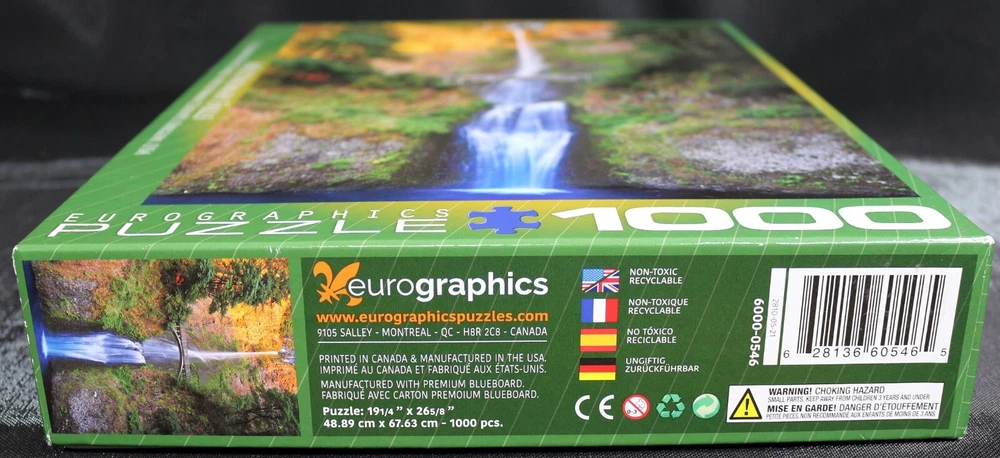 Experience the beauty of Oregon in the United States with this Eurographics Multnomah Falls jigsaw puzzle. With 1000 interlocking pieces, this puzzle features a stunning scenery theme that is sure to captivate puzzle enthusiasts of all ages. Made of high-quality cardboard material, this puzzle is built to last and is perfect for those who are looking for a fun and challenging activity to do. Measuring at 19 1/4" x 26 5/8" when completed, this puzzle is recommended for ages 12 and up. This puzzle is a great addition to any collection and is perfect for those who love contemporary puzzles. Don't miss out on the opportunity to own this beautiful piece of art. Doing puzzles has some hidden benefits Excellent qualities : Cultivate concentration, patience, and temper your will Movement development : Train hand-eye coordination and precise small movements Spatial intelligence : Improve visual discrimination of colors and shapes Critical thinking ability : Understand the relationship between parts and the whole, and draw inferences from one example to explore the future Relaxes your mind : Relieve work pressure and release yourself Brain development : Enhance memory and may help prevent or slow brain degeneration * We did not work the puzzle or count the pieces, but we verify the number count at your request . Puzzle pieces are all bagged. Each item we ship is carefully packaged to prevent any damage and is shipped immediately with tracking. Anticipated Benefits of Puzzles for Children Overcoming attention deficit Strengthening visual memory Improving problem solving skills Strengthening hand-eye coordination Improve fine motor skills Improve gross motor skills Shape recognition ability Gain the ability of setting goals Learning patience