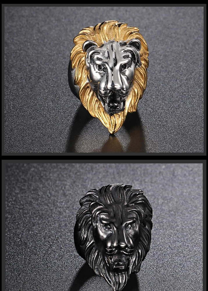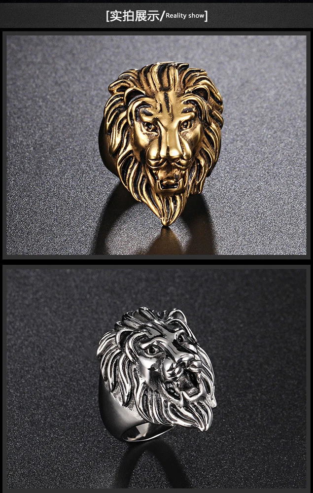 European and American stainless steel ring men's titanium steel lion head ring