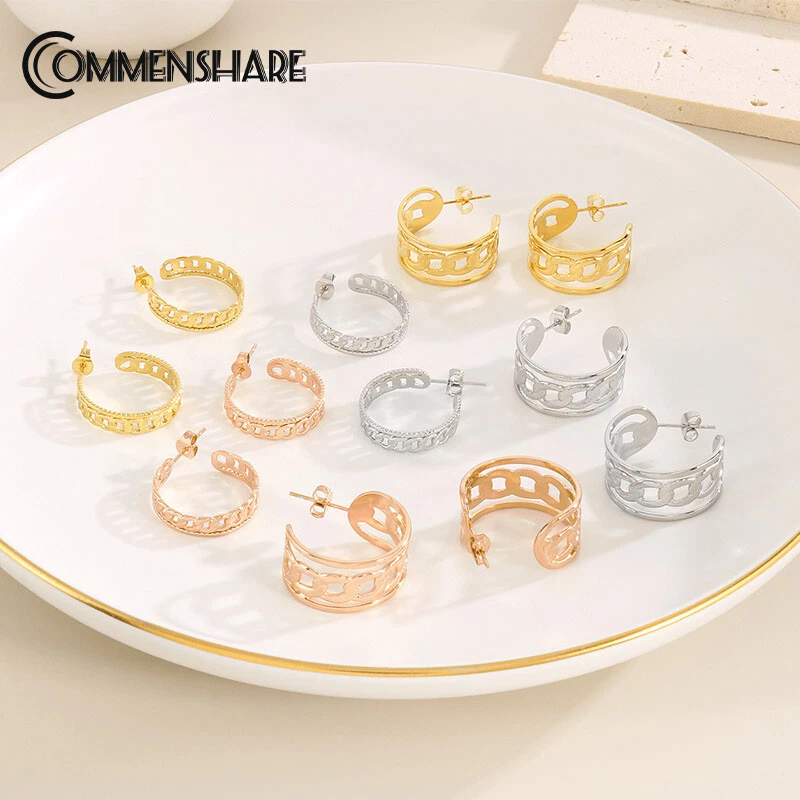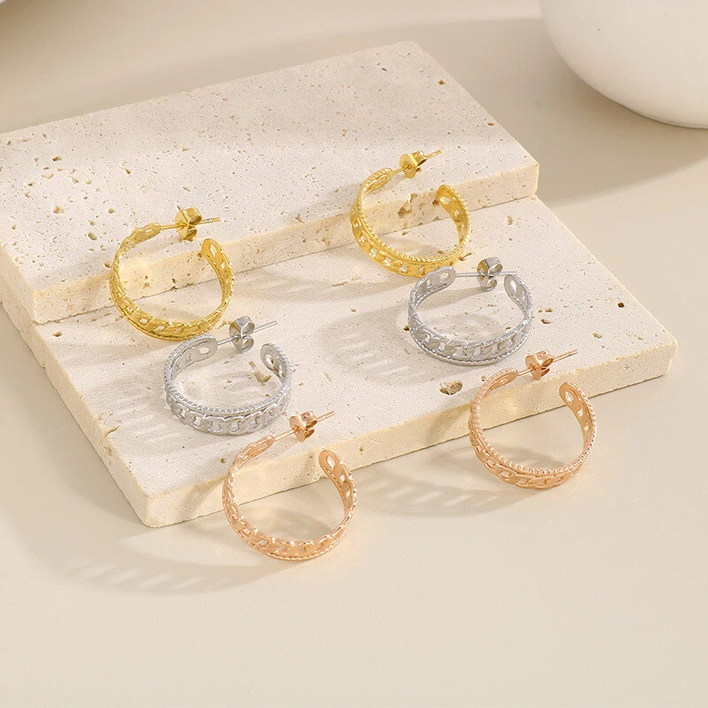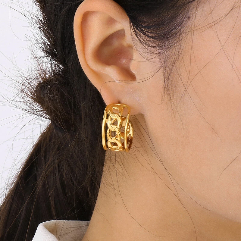 European and American stainless steel titanium steel chain earrings for ladies