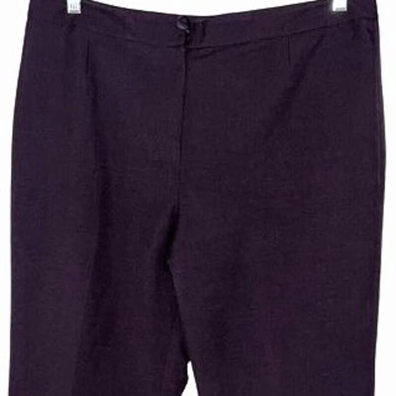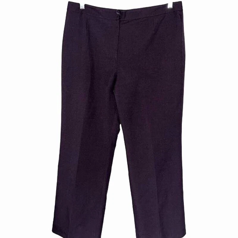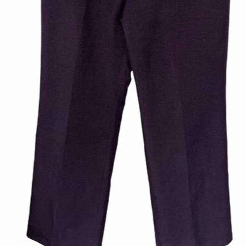 34" waist 28" inseam 12" rise Evan Picone pants purple plum-colored dress pants solid pattern high-rise waistline flat front straight leg style comfortable and professional look made of high-quality fabric lined ** all items stored in a smoke-free & pet free home