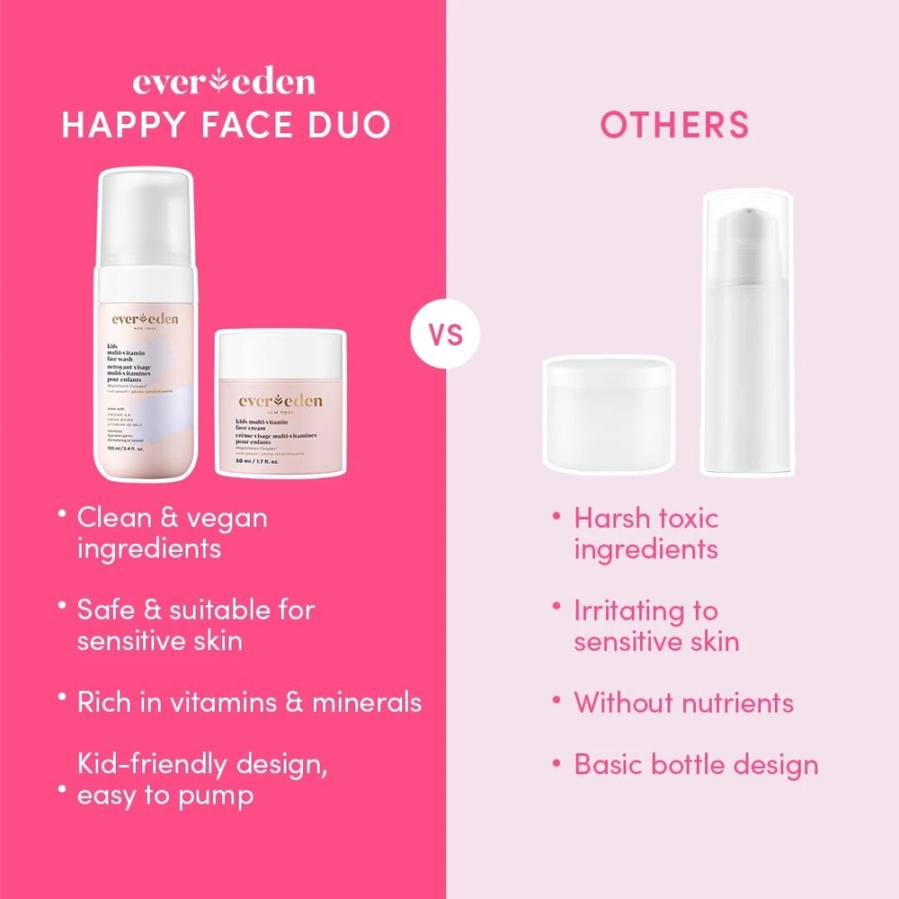 Kids Skincare Face Wash & Moisturizer Duo – Gentle Cleansing & Hydrating for Sensitive Skin Take care of your child’s delicate skin with the Kids Skincare Face Wash & Moisturizer Duo. Specially formulated for children ages 3+, this gentle, nourishing duo helps cleanse, hydrate, and protect your child’s face. With a multi-vitamin face wash and hydrating face moisturizer, this set is designed to remove impurities, soothe sensitive skin, and keep it balanced and healthy. Key Features & Benefits: Gently Cleanse Impurities: The multi-vitamin face wash is designed to remove excess oil, dirt, and pore-clogging impurities without irritating or drying out your child’s skin. Use this gentle wash both morning and night for a fresh, clean face. Nourish with Vitamins & Minerals: Infused with essential vitamins and minerals, this skincare duo not only cleanses but also nourishes and balances the skin. Follow the face wash with the kids face moisturizer to hydrate and soothe the skin, leaving it soft and smooth. Cleanse, Moisturize & Protect: This dynamic duo uses amino acids and omegas to cleanse and balance the skin, while also providing protective benefits. It keeps your child’s skin healthy, nourished, and shielded from environmental stressors. Gentle on All Skin Types: Safe for kids ages 3+, this duo is formulated to be gentle on sensitive skin. It is suitable for all skin types, including the most delicate and sensitive skin, making it ideal for your child or the whole family. Clean & Vegan Ingredients: This skincare set is made with clean, vegan ingredients, developed by dermatological experts. The products contain no sulfates, parabens, phthalates, or petrolatum, so you can feel confident about the safety and quality of the products you're using on your child’s skin. Why Choose the Kids Skincare Face Wash & Moisturizer Duo? This set is the perfect solution for parents looking for a gentle yet effective skincare routine for their children. Designed to clean, hydrate, and protect delicate skin, the multi-vitamin face wash and moisturizing lotion duo work together to keep skin soft, balanced, and healthy. It’s great for kids of all ages and makes a wonderful addition to your family’s daily skincare routine. How to Use: Step 1: Apply the kids face wash to dampened skin in the morning and evening. Gently massage to remove dirt, oil, and impurities. Step 2: Rinse thoroughly and follow with the kids face moisturizer to hydrate and soothe. Use daily for the best results and healthy, nourished skin. Package Includes: Kids Multi-Vitamin Face Wash (Gentle Cleanser for Kids) Kids Face Moisturizer Cream (Hydrating, Soothing & Protecting Lotion) Both products in one convenient, family-friendly set. Kids Skincare Set Kids Face Wash & Moisturizer Gentle Face Wash for Kids Kids Skincare for Sensitive Skin Vegan Kids Skincare Hydrating Face Cream for Kids Gentle Face Wash for Sensitive Skin Safe Skincare for Kids 3+ Kids Daily Face Care Clean Skincare for Children Paraben-Free Kids Skincare Multi-Vitamin Kids Face Wash Amino Acid Skin Care for Kids Vegan Face Wash for Children
