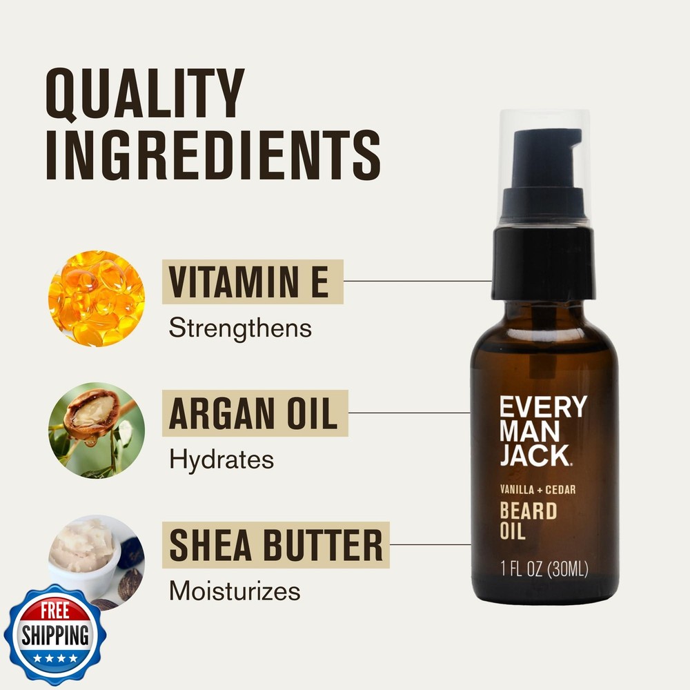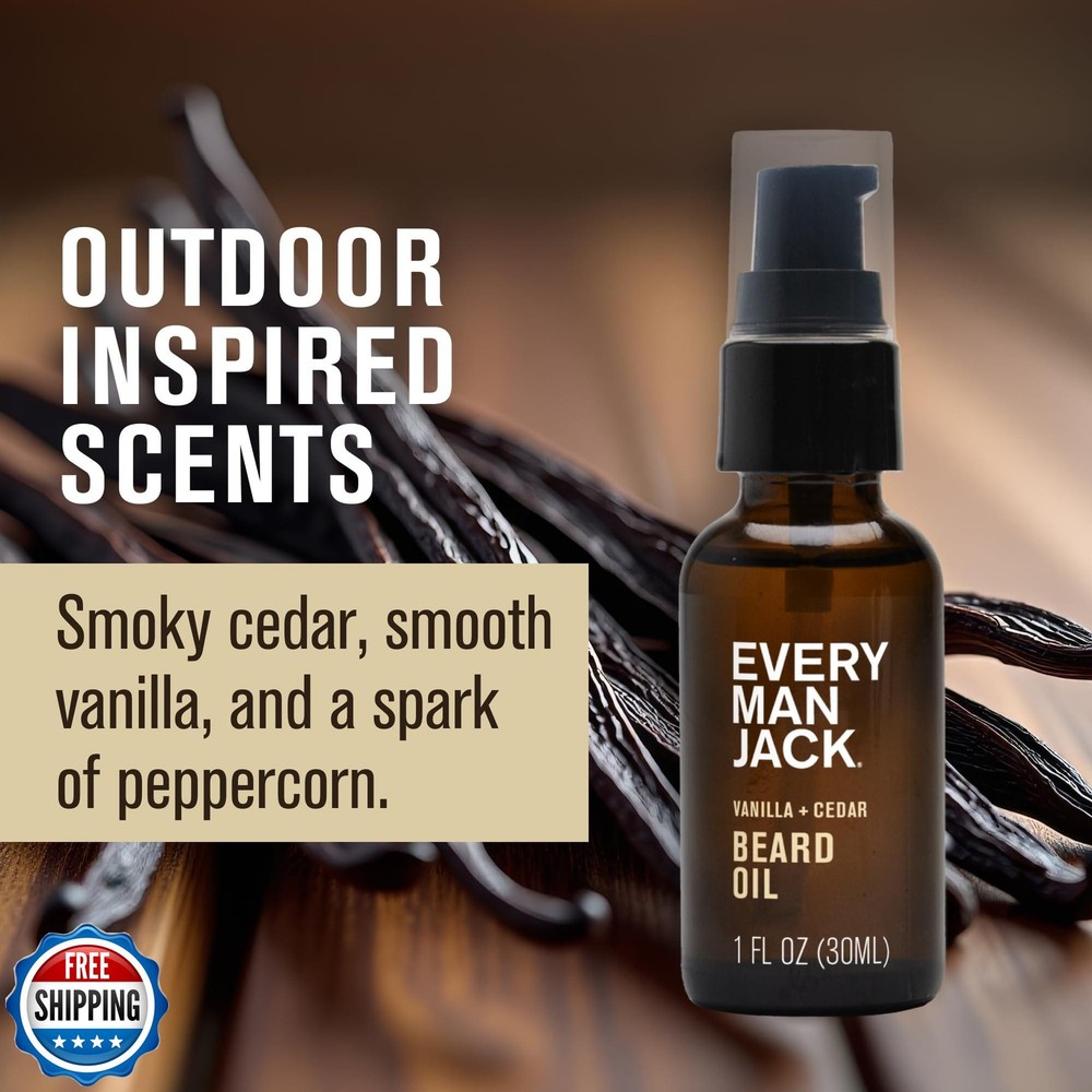 Every Man Jack Mens Beard Oil - Vanilla + Cedar Fragrance - Deeply Moisturizes and Softens Your Beard and Adds a Natural Shine - Naturally Derived with Shea Butter and Argan Oil - 1 fl oz Features LOOK LIKE A LUMBERJACK. FEEL LIKE SILK: You don’t have to suffer to look like a boss. Rub in our beard oil to soften your beard and nourish your skin and you’ll be feeling as good as you look. SMELL WARM AND WOODY: A bold yet balanced blend of warm vanilla and rich cedar. Smooth with a hint of ruggedness—fresh, woodsy, and effortlessly confident. NATURALLY DERIVED INGREDIENTS: Rub in our blend of Naturally Derived Vitamin E, Argan, and Borage to soften, nourish, and finish with a healthy shine. TRUSTED BY MORE THAN 5 MILLION MEN: Born at the base of Mt. Tam, CA. Proudly made in the US and B Corp Certified. Loved by millions of men the world over. THE DREAM TEAM: With daily beard wash, hydrating oil, moisturizing butter, and styling balm, our all-star squad will take your beard care routine to championship levels. Shipping Free & Fast Shipping: We offer free shipping to most of the USA with a normal delivery time of 3-7 days. However, due to the current situation, additional delivery time (up to 3 weeks) may be required for some items. Alternative Carriers: We may use alternative carriers (e.g., USPS, FedEx, UPS) to ensure your package arrives safely and on time. Due to the use of multiple carriers, we are unable to provide a tracking number automatically. Handling Time: Orders are processed and shipped within 1-2 business days of receiving cleared payment. Shipping Restrictions: Shipping to Alaska, Hawaii, Puerto Rico, Guam, and other US territories may incur shipping charges or delivery restrictions. Please contact us before ordering, or your order can be refunded/cancelled. State Restrictions: Certain items may not be shipped to California due to state regulations. Contact for Tracking Updates: If you require tracking updates or have any concerns about the delivery of your order, please feel free to contact us, and we will be happy to assist you. Return Policy 30-Day Hassle-Free Returns: If you are not completely satisfied with your purchase, you can return the item for free within 30 days of receiving it for a full refund or exchange. Easy Return Process: Contact us, and we will provide you with a prepaid return shipping label and detailed instructions. No Restocking Fee: There are no restocking fees for returns. However, the buyer is responsible for return shipping costs if the return is not due to a seller"s error. Refund Processing: Refunds will be processed within 1 business day of receiving the returned item in its original condition. Feedback Your feedback is extremely important to us. We strive to provide the best products and customer service possible. If you are satisfied with your purchase, please take a moment to leave us a positive review. If you have any concerns or issues with your order, please contact us before leaving negative feedback. We are committed to resolving any problems and ensuring your satisfaction. Contact Us If you have any questions or concerns, please feel free to reach out to our customer support team. You can contact us through the eBay messaging system. We are available Monday to Friday, 9:00 am to 5:00 pm EST, and we will do our best to respond to your inquiry within 24 hours. Thank you for supporting our small family business!