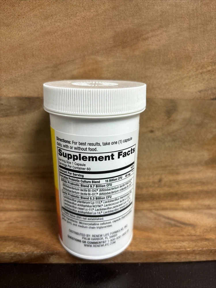 Brand:Does not applyFlavor:15 Billion CFUBody Area:Does not applyLabels & Certifications:Does not applyIngredients:Does not applyUPC:631257120984Department:Does not applySize:60 Count (Pack of 1)Country/Region of Manufacture:Does not applyFeatures:Does not applyExpiration Date:Does not applygtin13:631257120984Main Purpose:Does not applyLOT Number:Does not applyUnit Count:60 CountAdministration:Does not applyDosage:Does not applyFormulation:Does not applyProduct Line:Does not applyMPN:631257158673Type:Does not applyNumber of Pills:Does not applyActive Ingredients:Does not apply