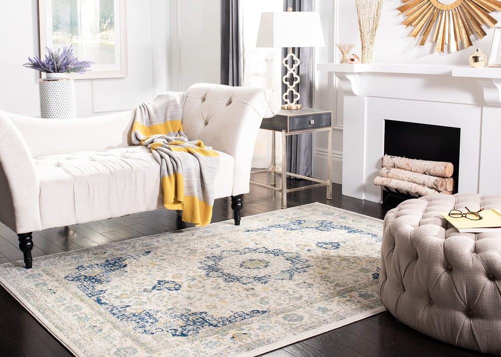 Evoke Collection EVK220C Ivory Blue Shabby Chic Oriental Medallion Square Rug
