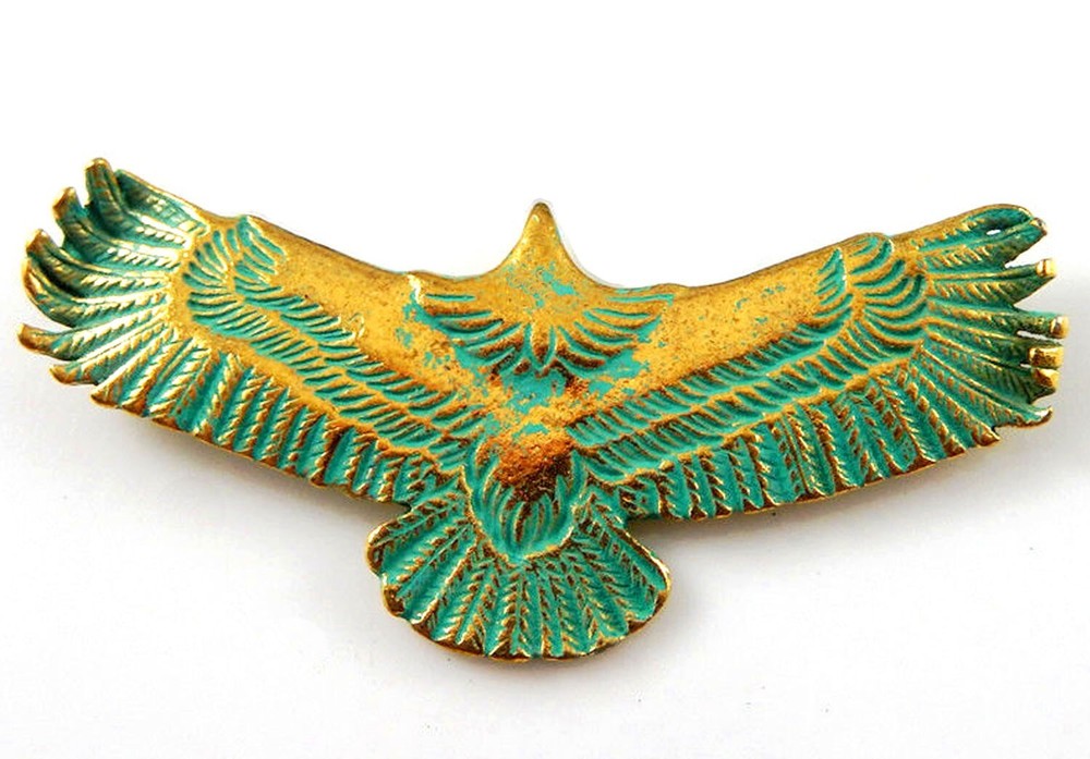 This exclusive miniature Art Deco wall art set is delightful. The first item is the geometric design verdigris metal hanging. It is 50 mm or 2 inches high. The second item is the verdigris metal wide-winged wall eagle. The eagle is 63 mm or 2 1/2 inches wide. The last photo shows the bonus. You will receive two of these pretty golden metal origami style cranes. These items will look perfect in your Art Deco or other theme dollhouse. Please check my listing for other unique miniatures. All my minia tures are made in a smoke-free environment. Please note that my miniatures are not suitable for young children but are intended for collectors. Payment must be made via PayPal by the winning bidder within three days after the end of the auction. Combined shipping is possible if the auctions end within seven days of each other. If you have any questions about this, please contact me before you place a bid.