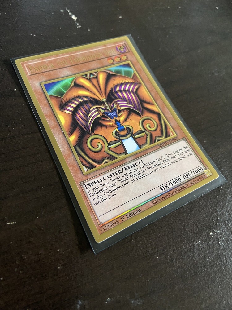 Exodia the Forbidden One - MGED-EN005 IN NEAR MINT CONDITION! This is a GREAT card for collectors, it's gold border is holographic and pops so nicely! Thank you for checking out the card, if you're into collecting, please be sure to check out the rest of my profile as I'm listing more rare TCG cards from Yugioh and Pokemon!