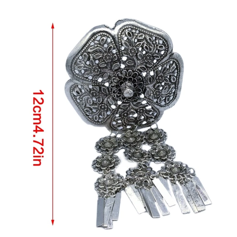 Delicate Exotic Carved Flower Shape Hairpin Bride Wedding Hair Features: Outstanding with our versatile hair clip featuring a unique flower shaped and tassels, showcasing the exotic charm. Add a touch of vintage to your hairstyle with this vintage inspired hairpin. Made from alloy, it is durable and to deformations, ensuring long lasting beauty. This hair accessory is suitable for people who appreciate the allures of exotic cultures and want to showcase their unique of for travel, vacation, and special occasions, this hair clip adds a touch of exoticism to your hairstyle, creating a relaxed Elevates your look with this hair designed to enhances your hairstyle with a touch of elegant and sophistication. Wonderful for weddings, parties, or formal party, it adds a charm and eye catching to your overall appearance. Specifications: Metal Size: As Shown As Picture Color: Antique Silver, Silver, Golden Package Includes: 1pc Carved Floral Pattern Hair note: 1: Please allow 1-2cm errors due to manual measurement, ensure that you do not mind before you order. 2: Due to the difference between different monitors, the picture may not reflect the actual color of the item.