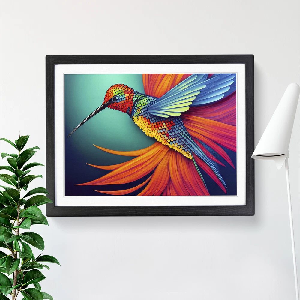 Transform your living space with our captivating framed wall art prints. Crafted in the UK, the stunning Exotic Hummingbird Abstract framed print is designed to elevate your home decor. We utilise high-quality inks to ensure the colours of the artwork are rich, vibrant, and true to life. The print seamlessly fits within a contemporary frame, creating a stylish wall art picture that is ready to hang in your living room, lounge, bedroom, dining room and home office. Visit Our Shop eBay Message Framed Art Print Enhance your living space and showcase your individual style with our framed prints. Each design is printed upon premium art paper with fade-resistant inks, ensuring the colours remain rich and vibrant for years to come. The print is encased in a ready-to-hang frame, offered in black, oak, or walnut, and safeguarded by shatter-resistant Perspex. An ideal addition to your home, and the perfect gift choice. Like what you see? Visit our eBay store to see more. Premium Quality : The design is printed on quality art paper, enhanced with fade-resistant colours. Ready to Hang : The frame is pre-fitted with hanging hardware, making wall mounting simple, safe and secure. Frame Dimensions : A4 - 25 x 34 cm / A3 - 34 x 46 cm / A2 - 46 x 64 cm. Fast Shipping : Prompt, reliable UK-based dispatch. Customer Satisfaction : Our priority is your satisfaction which is why we offer a hassle-free return policy. Payment You can pay for your order safely and securely via credit or debit card, Apple Pay, Google Pay, and PayPal. Shipping Production times are 1 to 2 working days. Orders are sent via Royal Mail or Evri (depending on size). Returns For your peace of mind, we have a 30-day returns policy in place. Please, contact us for more details. At Big Box Art, we are dedicated to providing high-quality wall art and decorative homeware items. From the outset, we've focused on excellence in our products, service, and reputation, continually enhancing our standards. With an extensive selection of designs, you're certain to discover the perfect piece to suit your taste. ? Copyright 2021, Big Box Art. All rights reserved. Made with by eBayshopdesign.org