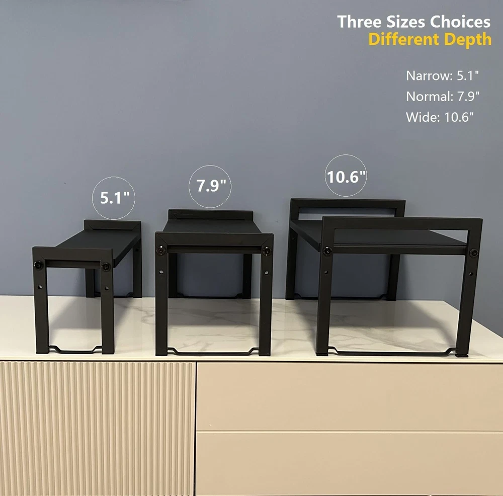 Expandable Cabinet Shelf Organizer 16-26" L Stackable Kitchen Counter Shelf Rack Sink Riser Countertop Storage Black (Normal 7.9”D) Versatile Storage Solution: With an adjustable length of 16-26” (L) * 7.9” (D) * 8.5” (H), this kitchen counter shelf is a versatile and sturdy storage option suitable for the kitchen, pantry, office, bedroom, or any other space where you need organized and accessible storage. and a height under the cabinet shelf of 7.1”, it can adapt to various cabinet or countertop sizes Durable Construction: Built with sturdy metal construction and a heavy-duty design, this cabinet organizer and storage shelf can hold 22 to 30 lbs, making it ideal for storing a variety of items, from kitchen supplies to books and office essentials. The elegant matte black powder-coated finish adds a touch of style while protecting against corrosion Multi-Purpose Functionality: Designed with a modern aesthetic, this expandable counter shelf can be used for storing kitchen items, office supplies, personal collections, and more, making it a versatile and practical addition to any space, and also for kitchen sink shelf Easy Assembly and Adjustability: Setup is straightforward, with instructions provided and all necessary installation accessories included. The expandable cabinet shelf organizer is designed for easy assembly, requiring only four screws and internal support. Adjustable countertop shelf allow you to customize the height according to your needs Patented Design: This expandable counter shelf features a patented design (CNIPA Patent No. ZL 2020 3 0296239.4), ensuring its uniqueness and reflecting the manufacturer's commitment to innovation and quality Expandable Cabinet Shelf Organizer Countertop Shelf Shipping We offer FREE shipping on all orders! We ship within Three business days of payment, usually sooner. We use a selection of shipping services such as UPS, FedEx, USPS etc. We only ship to the lower 48 states, no APO/FPO addresses or PO Boxes allowed. Local pickups and combined shipping options are not provided at this time. International buyers – please note: Import duties, taxes, and charges aren't included in the item price or postage cost. These charges are the buyer's responsibility. Please check with your country's customs office to determine what these additional costs will be prior to bidding or buying. Order Cancellation Policy * Order Cancellation Policy ** You can return a product for up to 30 days from the date you purchased it. 1. The seller reserves the right to cancel the special case only due to eBay cancellation fee. 2. The decision of seller is the final. 3. The seller will respond to the cancellation request within 2 business days. Please wait for the result of cancellation. 4. In case the cancellation is not completed by some reasons, the buyer can follow the options below to get the refund. 4.1 The buyer can reject the item when it arrives. 4.2 The buyer can send the item back to the seller within 30 days If the buyer receives item (USA Shipment ONLY). The seller will provide the FREE return label to the buyer when the buyer opens " Return Item" case on eBay by using the reason as "Change my mind" ONLY. 5. When buyer has placed the order. The order will be processed and completed by automatic warehouse system within 5 minutes. In case that buyer sends the cancellation request after 5 minutes of placing the order, the request will be rejected. **Sending direct message to cancel the order is not allowed for every case.* Return Policy - If buyer would like to return the items for refund or replacement, please CONTACT SELLER to receive the free return label from seller. The refund or replacement will be processed with the tracking number of return label which is provided by seller only. The other ways of return which are not approved by seller will not be processed for the refund or replacement. Return You can return a product for up to 30 days from the date you purchased it. Any product you return must be in the same condition you received it and in the original packaging. Please keep the receipt. Payment We accept payment by any of the following methods: eBay Payments Please pay as soon as possible after winning an auction, as that will allow us to post your item to you sooner! Feedback Customer satisfaction is very important to us. If you have any problem with your order, please contact us and we will do our best to make you satisfied. Contact Us If you have any queries, please contact us via ebay. We usually respond within 24 hours on weekdays. Please visit our eBay store to check out other items for sale! Thank you for shopping at our store.