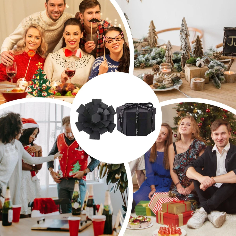 Explosion Gift Box, Handmade Exploding Photo Album Preassembled Surprise Black Product Description Bullet Points: Surprise Delight Factor: Make your special moments unforgettable with Love Present Box. This unique design comes decorating with ribbons and heart-shaped cards. The 6-sided, 5-tier album unfolds layer by layer, providing a great canvas for you to decorate with colorful pens, photos, and stickers. Captivating Love Experience: Featuring a unique 6 sides, 5 tiers, and 12 pockets design that blows up when opened, this lightweight and practical love present box is crafted from sturdy kraft paper Light Weight: The Love Present Box's small size, portable design, and lightweight construction makes it a great travel companion. Carry it effortlessly to enjoy your memories outdoors Extensive Use: Lift your present-giving game with our Love Present Box, thoughtfully chosen to suit various celebrations like Valentine's Day, Christmas, Mother's Day, Thanksgiving, and birthdays. Your loved person will feel extra special Unique Present: Impress your loved person with this Love Present Box, specifically designed to express your warm affection, a great present for family, friends, and colleagues to cherish This 6-sided 3D greeting card is a 5-tier surprise album that unfolds layer by layer. It's lightweight and practical, making it easy to carry. Specification: Name: Love Present Box Material: Pper Packing List: 1* 3D Greeting Card Note: Due to different lighting and screen settings, the item color may be slightly different from the picture. Due to different manual measurements, please allow a 1-2cm difference in size. Payment 1.PayPal is a preferred Payment method. if you Do NoT have a Paypal account, please go to www.paypal.com register. 2.You can make a Credit payment via Paypal.Paypal will let you use MasterCard,Visa to pay. 3.Payment should be completed within 3 days after auction closed, or unpaid dispute will be filed for an closing auction.An unpaid case will be filled after 4 days. Delivery details 1. We ship to many countries. 2. Delivery Time: Ship from China via Speedpak to US (takes 8-12 days) Ship from China via others shipping method to other countries (takes 15-60 days) 3. If you want to choose another address, please leave us a message on ebay.Please check your shipping address carefully before checkout,it can't be changed if order completed. Seriously promise:Refund or resend will be offered if item still not arrive in 7-10 business days. Just send us an email,we will give you a satisfied solution as soon as possible. Return policy 1.All item comes with Basic 3 Months Sellers Warranty, if item defective in 3 months,We will offer replacement without extra charger (including shipping fee) After we receive the defective item. If item Defective after 3 Month, Buyers can still send it back, We will contact suppliers or Manufactory for Warranty. Buyers Might Need pay the Shipping fee For resend the replaced item. 2.If item DOA(Dead of Arrival), Buyers can return it in 30 Days, we will replace it with new item after we receive DOA item. Please Contact us Before you sent the item back. 3.All item can be returned for exchange only. The buyer has responsibility for all return shipping including DOA or defective return. About Feedback When you receive the item and satisfied with the product, please leave positive feedback and 5 scores DSR. We will leave a 5 Scores DSR feedback for you. If, for any reason you are not satisfied with your purchase, please contact via Ebay Message and we will do our best to resolve it. Please don't leave neutral or negative feedback without any communition with .