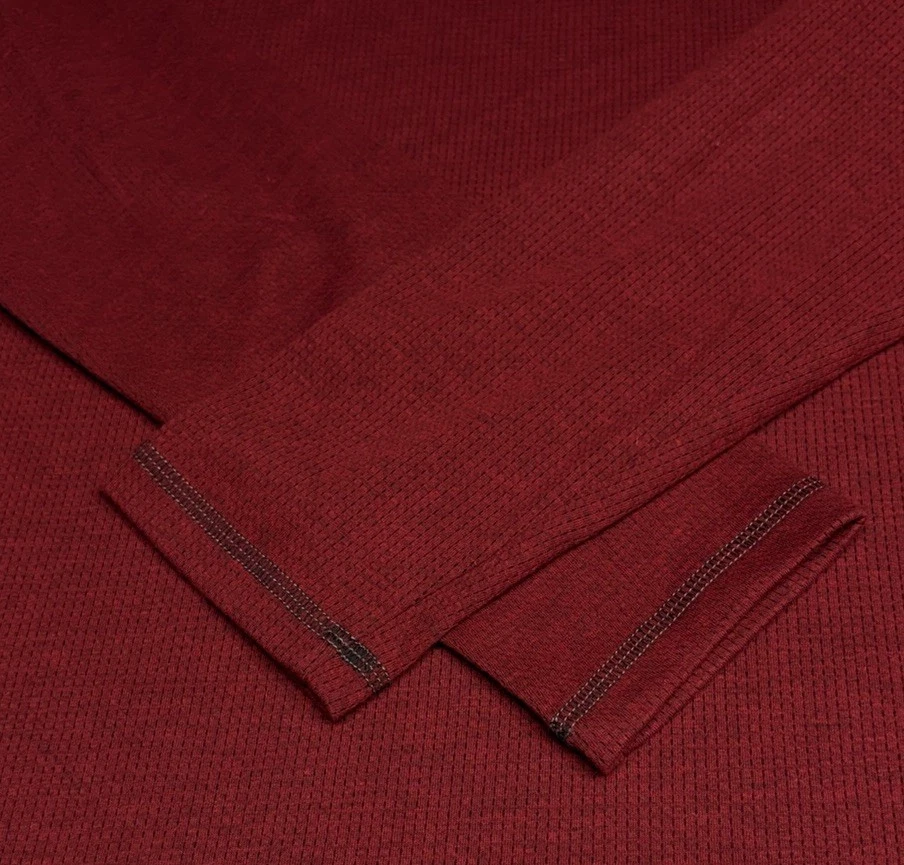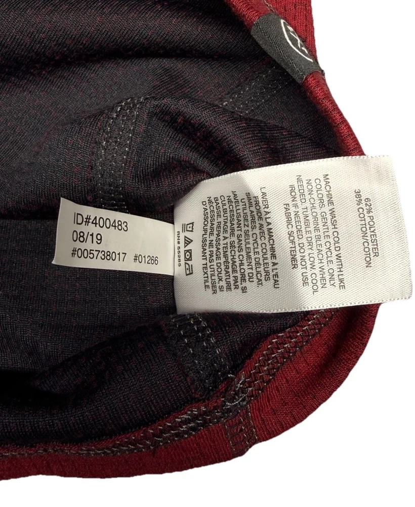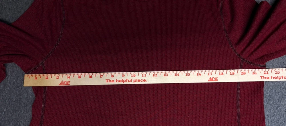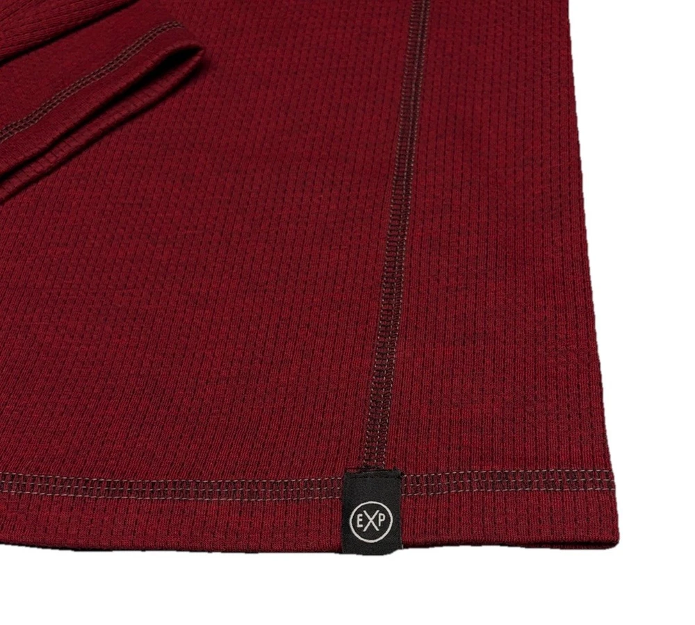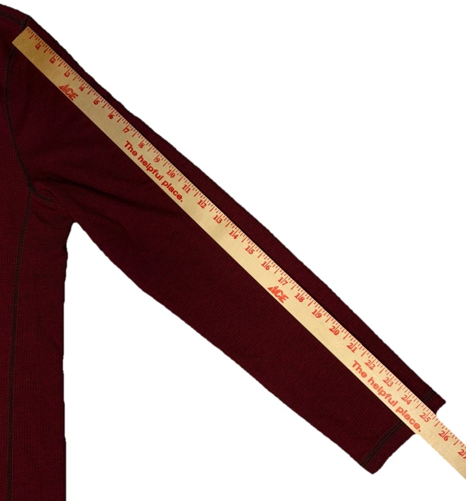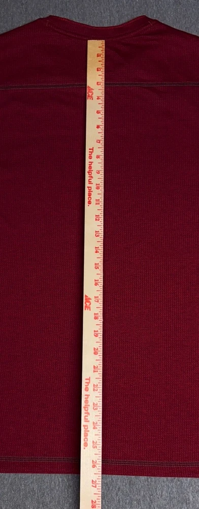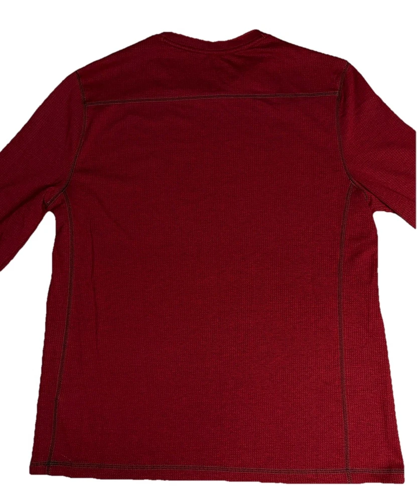 The product is an Express Men’s Long Sleeve Shirt in Burgundy, Size Large. It features a crew neckline and is designed for moisture-wicking performance. The shirt is in a rich red color and is perfect for men looking for a stylish and comfortable option for everyday wear. The long sleeves provide added coverage and warmth, making it a versatile choice for various occasions.