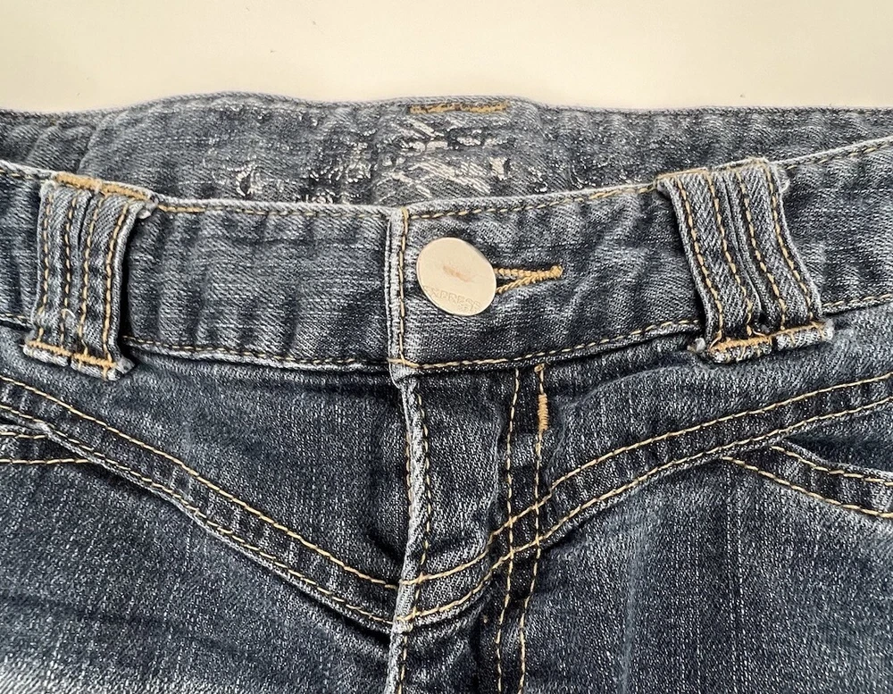 Elevate your casual summer style with these Express women's blue jean shorts in size 6. Featuring a zip closure and flat front, these chino-style shorts are made from a comfortable and stretchy cotton blend fabric with a medium wash. The shorts also have logo button and design on the back pockets, adding a touch of classic style. Perfect for walking, going to the beach, or school, these shorts have a 3.5 inch inseam and a waist size of 30 inches. They are machine washable and easy to care for. Whether you're looking for a comfortable and stylish pair of shorts or want to add a classic touch to your wardrobe, these Express women's shorts are a great choice. They are in very good condition. Express imprint on the inside back waistband is faded. The colors are not 100% accurate due to lighting issues. Please look at all pictures. My home is SMOKE FREE. Thank you for your visiting my store. I appreciate and value your business. Import duties, taxes and charges are not included in the item price or shipping charges. These charges are the buyer's responsibility. Please check with your country's customs office to determine what these additional costs will be prior to bidding/buying. These charges are normally collected by the delivering freight (shipping) company or when you pick the item up – do not confuse them for additional shipping charges. I do not mark merchandise values below winning bid amount or mark items as "gifts" - US and International government regulations prohibit this practice.