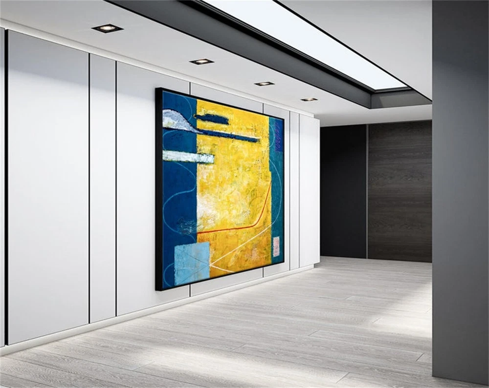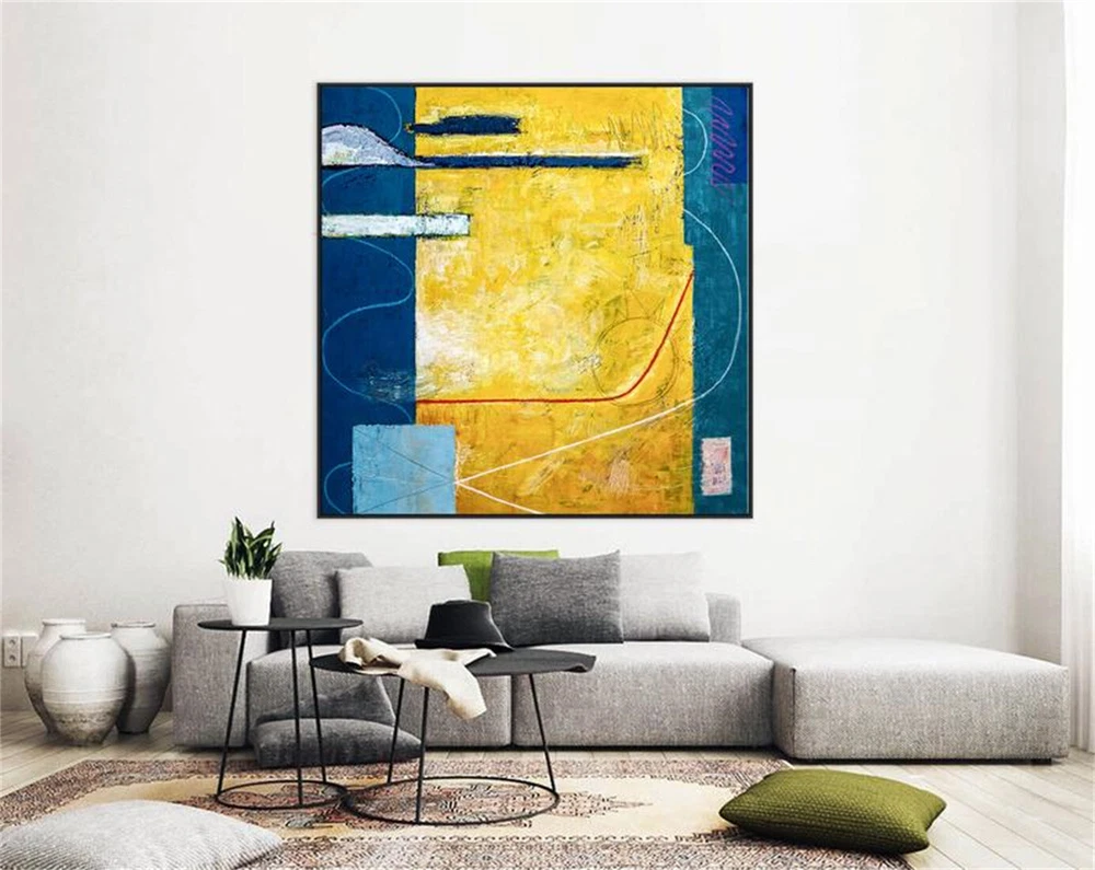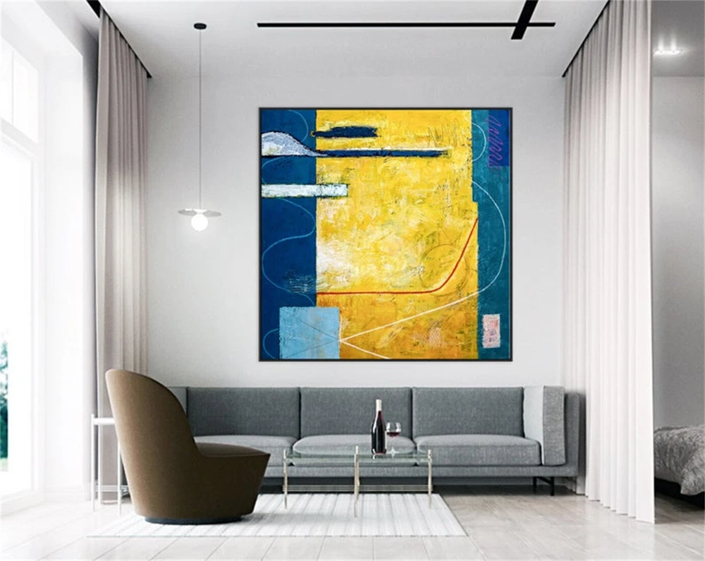 Expressionism Yellow And Blue Modern Painting Wall Art On Canvas Summer Time