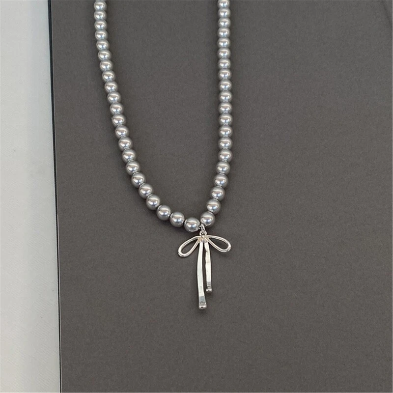 Exquisite Pearls Bowknot Necklace Neckchain Charm for Women's Jewelry Collection Features: Elevate your with this gray pearls beaded bowknot pendant necklace, crafted from high for a fashionable and versatile accessory. The bowknot pendant brings a playful and feminine touch to any attire, making it suitable for both casual and formal occasions. Designed for women who appreciate beauty and want to showcase their unique of fashion. Wear it daily as a addition to your wardrobe or layer it with other necklaces for a more personalized and fashionable look. This necklace makes a thoughtful birthdays, anniversaries, or any special occasion, allowing the recipient to feel confident and beautiful. Specifications: Size:Approx.45cm/17.71inches Package Includes: 1Piece Gray Pearls Bowknot Pendant Necklace note: Please allow 1-2cm error due to manual measurement. Please make sure you do not mind before you bid. Due to the difference between different monitors, the picture may not reflect the actual color of the item. Thank you!