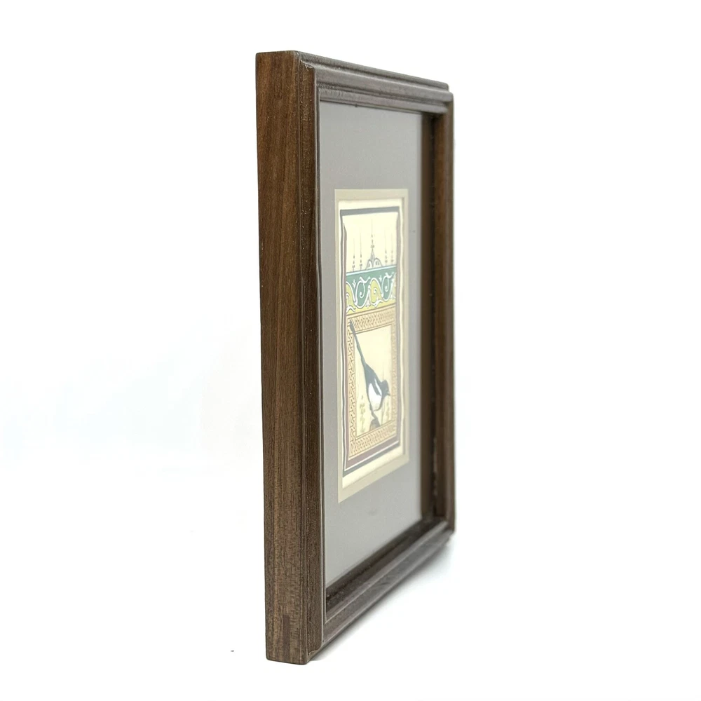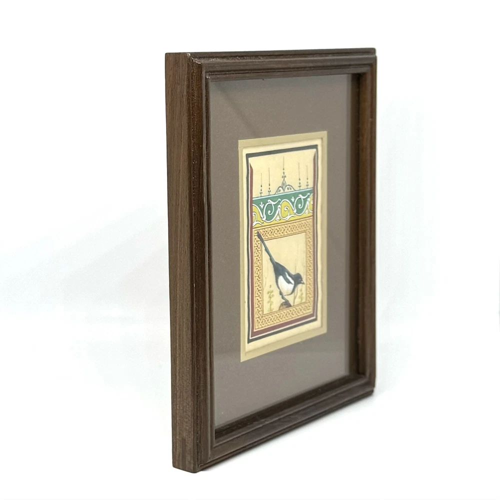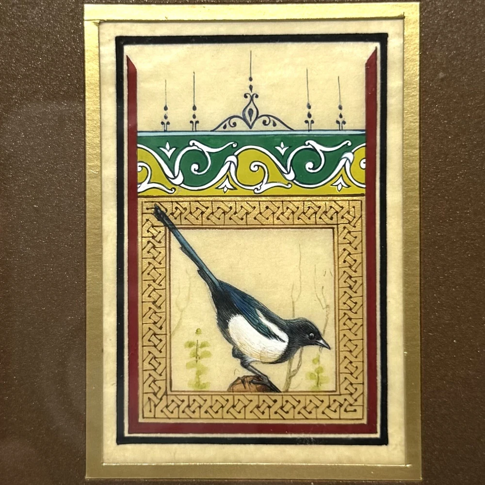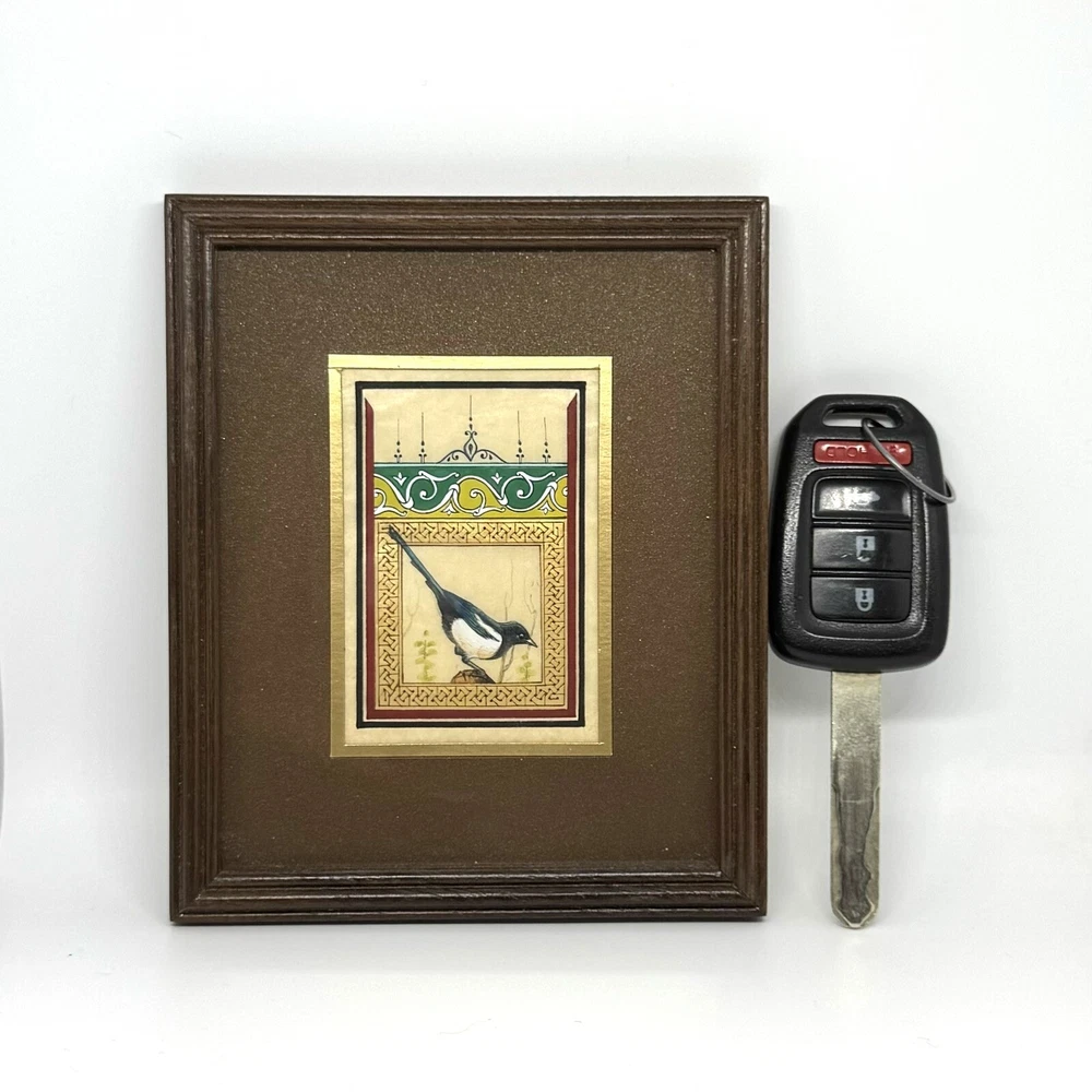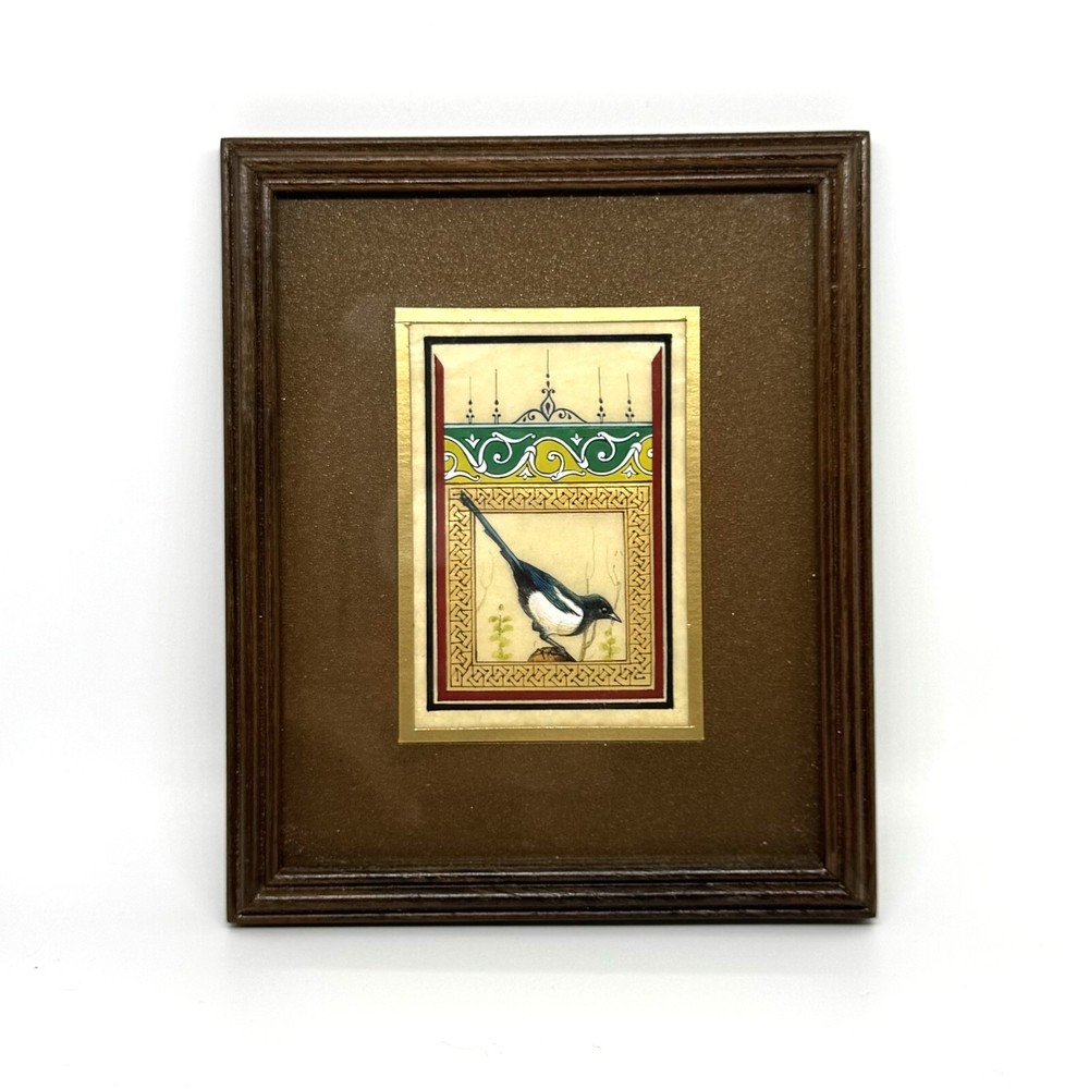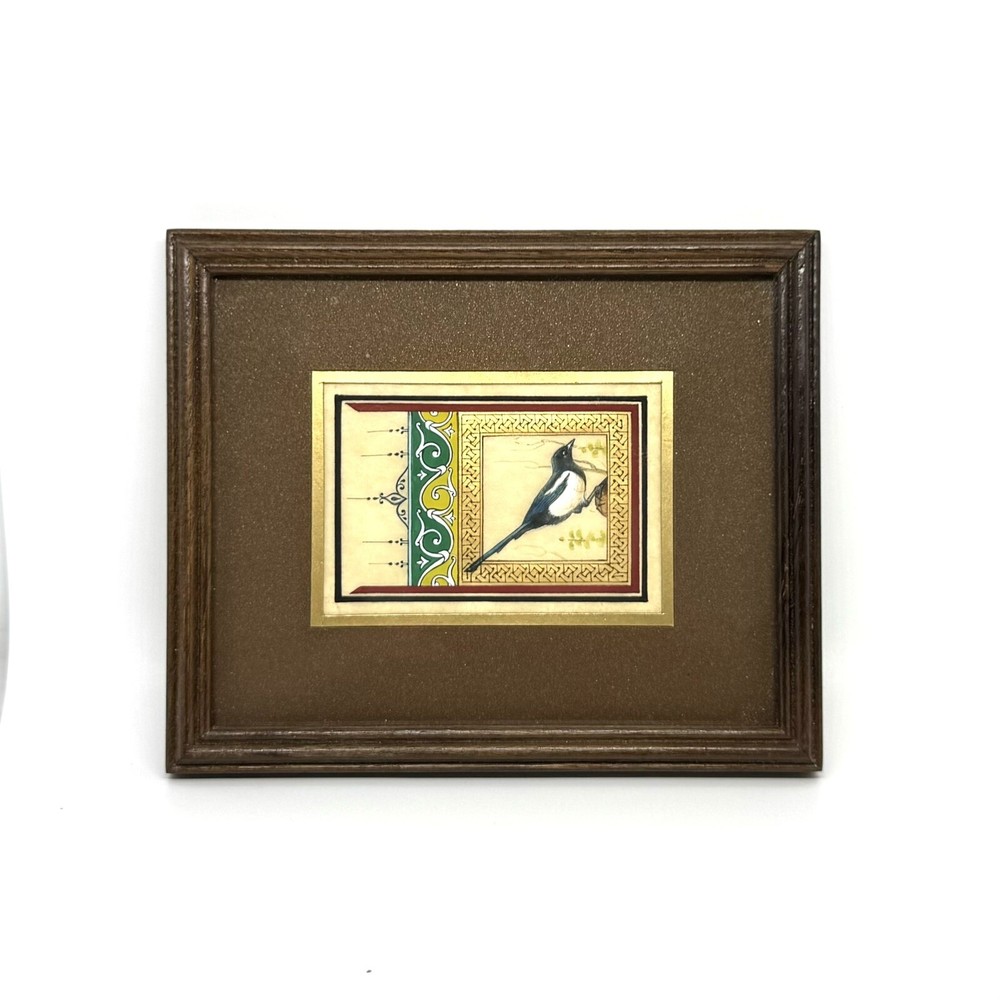 Framed Artwork: Tiny Bird Portrait ( Fine Walnut Frame, Protected with Glass, Hermetically Sealed ) An unparalleled masterpiece of miniature art, this framed portrait of a tiny bird is a testament to exceptional precision and timeless craftsmanship. Painted under a magnifying glass, the intricate details come alive through the use of a fine brush and a masterful combination of materials — including watercolor, gold leaf, gold gouache, acrylic, tempera, and liquid ink. Each element of this artwork is a harmonious fusion of nature’s beauty and ornamental design, brought to life on the finest silk paper. Encased in an elegant walnut frame, this piece is meticulously crafted to elevate any interior, exuding sophistication and artistic excellence. A true Collector’s Edition , this fine art painting embodies the spirit of luxury, rarity, and cultural richness. Ready to hang, it is perfect for collectors seeking to own a piece of extraordinary artistry. Brought to life by ARTBEHZODIYUS — where the spirit of timeless artistry and unrivaled craftsmanship unite. We also are pleased to offer a custom ( framing, sizes, colors, composition) made-to-order piece, so we encourage customers to contact us before any customizations. This ensures we provide an accurate timeline for completion and customize the piece to your preferences.