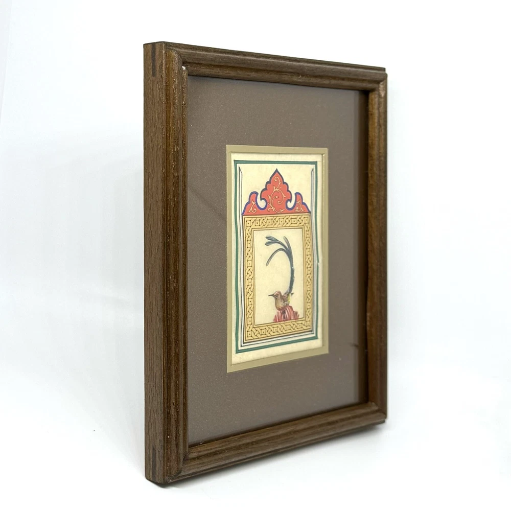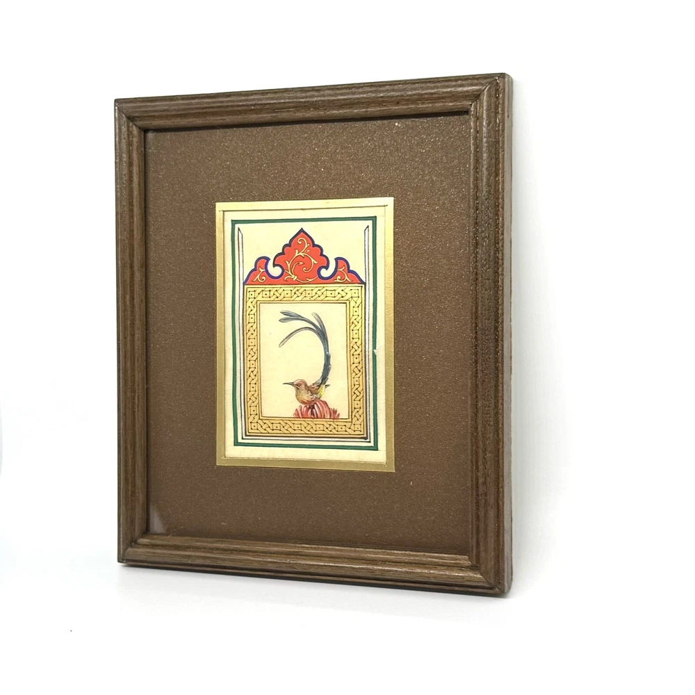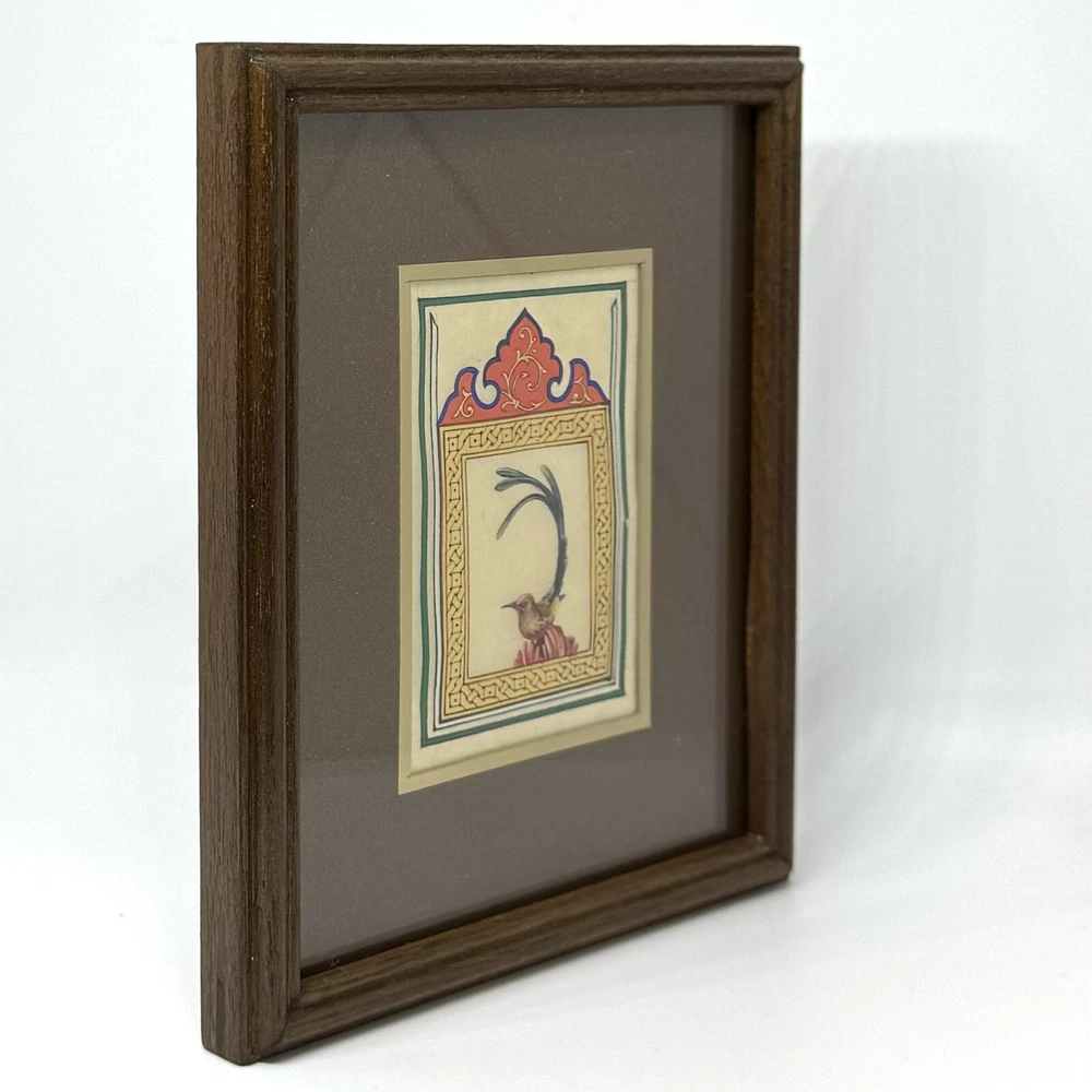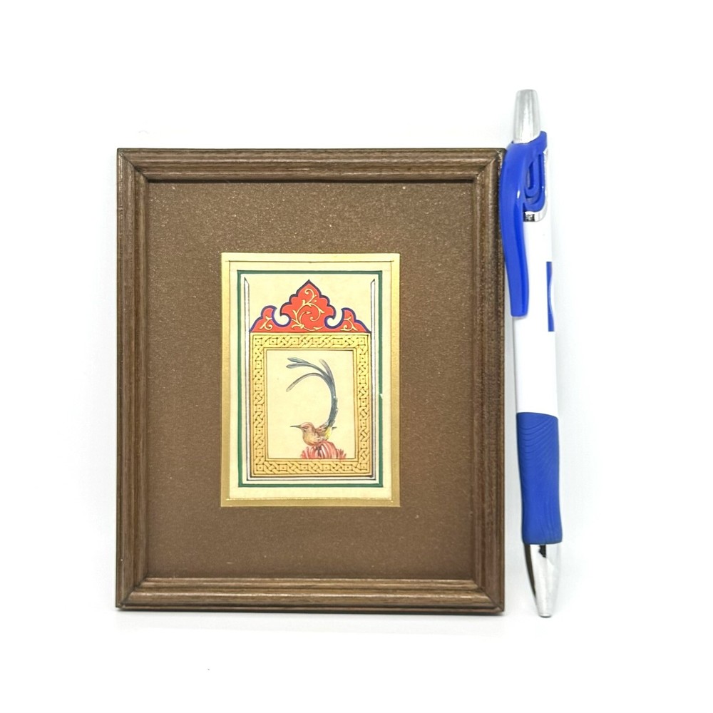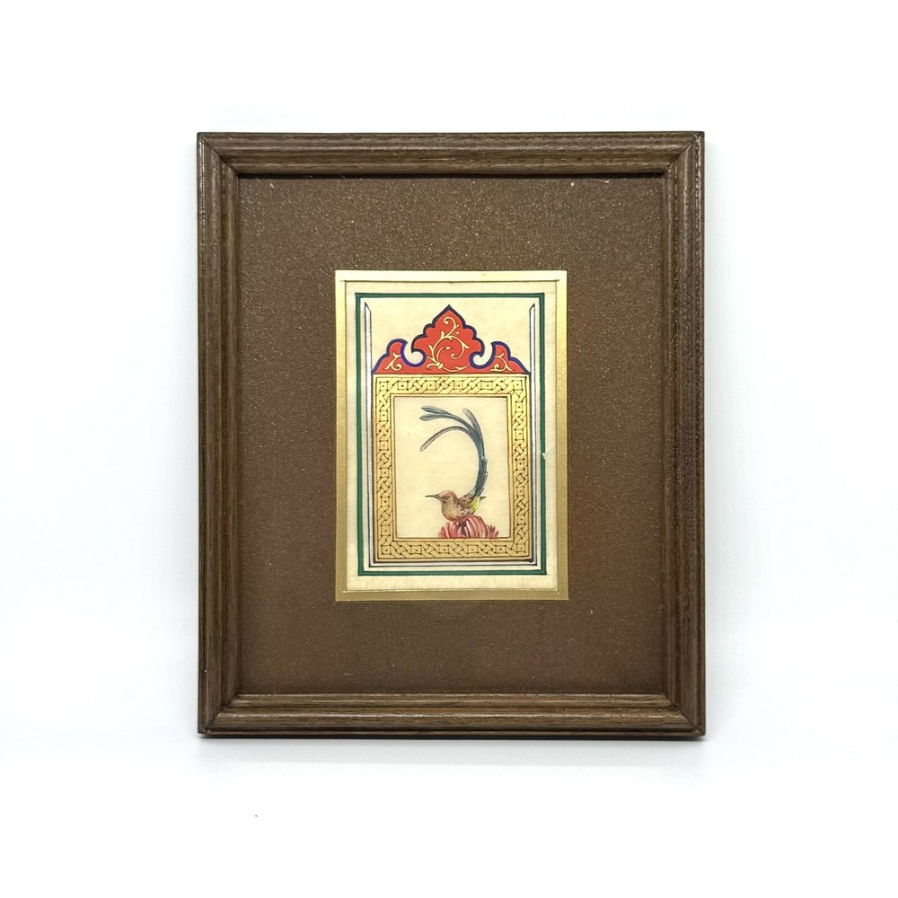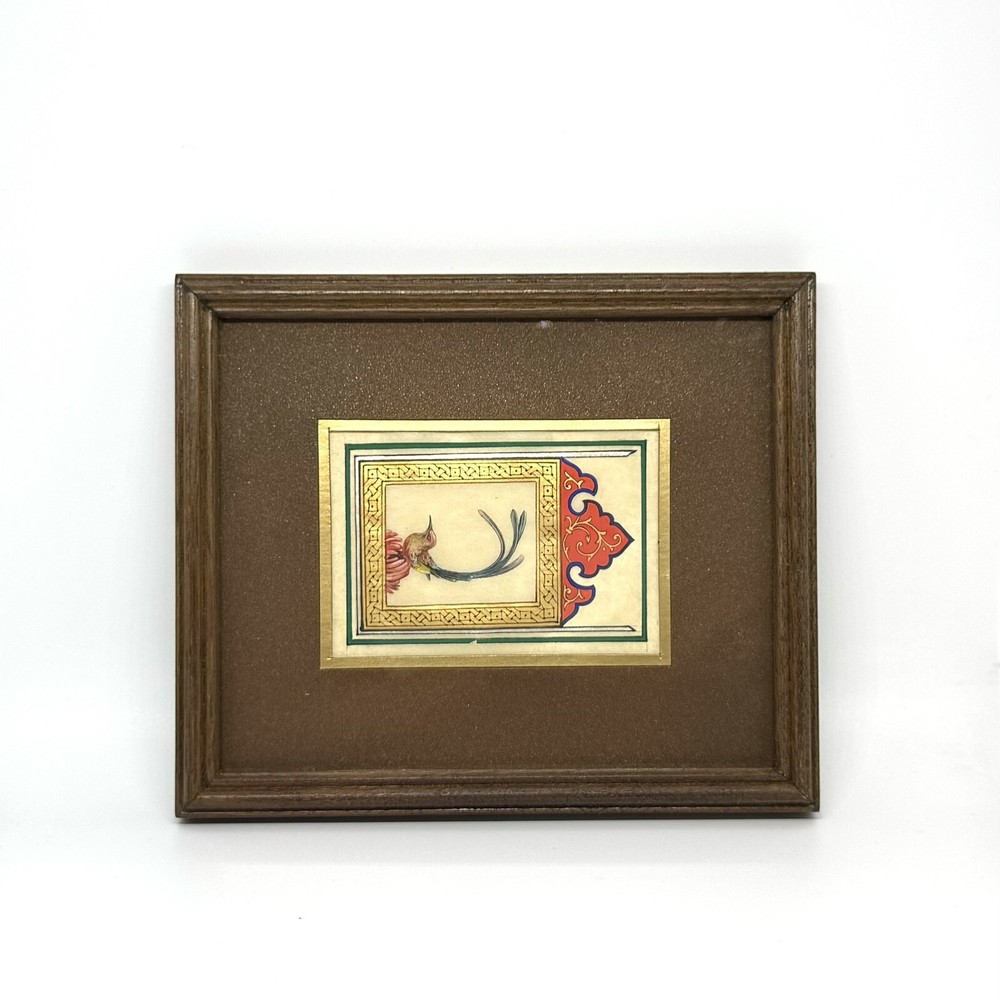 Framed Artwork: Tiny Bird Portrait ( Fine Walnut Frame, Protected with Glass, Hermetically Sealed ) An unparalleled masterpiece of miniature art, this framed portrait of a tiny bird is a testament to exceptional precision and timeless craftsmanship. Painted under a magnifying glass, the intricate details come alive through the use of a fine brush and a masterful combination of materials — including watercolor, gold leaf, gold gouache, acrylic, tempera, and liquid ink. Each element of this artwork is a harmonious fusion of nature’s beauty and ornamental design, brought to life on the finest silk paper. Encased in an elegant walnut frame, this piece is meticulously crafted to elevate any interior, exuding sophistication and artistic excellence. A true Collector’s Edition , this fine art painting embodies the spirit of luxury, rarity, and cultural richness. Ready to hang, it is perfect for collectors seeking to own a piece of extraordinary artistry. Brought to life by ARTBEHZODIYUS — where the spirit of timeless artistry and unrivaled craftsmanship unite. We also are pleased to offer a custom ( framing, sizes, colors, composition) made-to-order piece, so we encourage customers to contact us before any customizations. This ensures we provide an accurate timeline for completion and customize the piece to your preferences.