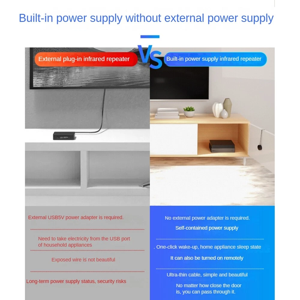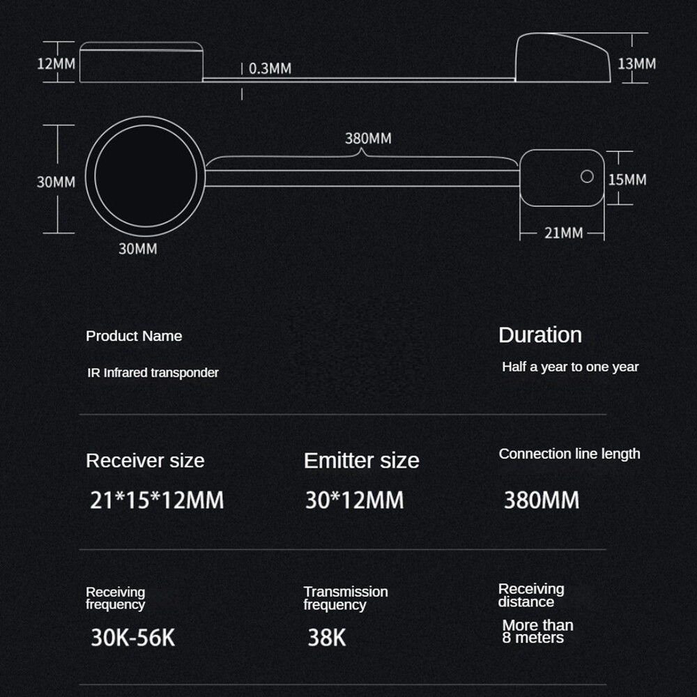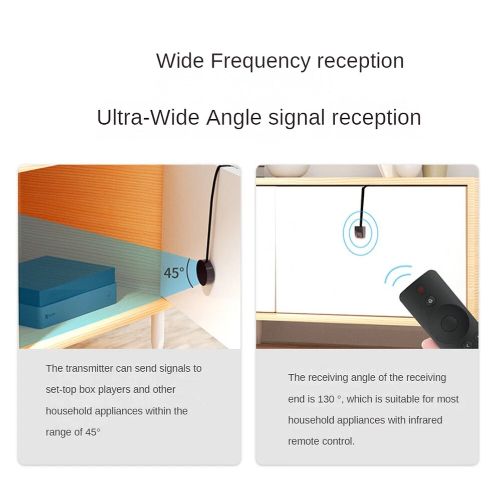 IR Remote Control Extender Infrared IR Remote Extender Infrared Repeater4176 Because there are many infrared in the family, such as set-top boxes, , remote control fans, air conditioners, and projectors, this device can be used for centralized control and hidden control. Applies to all remote control devices, Suitable for TV set, STB, DVD, DVR, , video recorder, satellite receiver, and so on. When installing, please aim at our launch point. within a suitable range 26ft, without having to stick individual emitter onto each of the equipment,With emitter's extreme transmitting capabilities, it can extend the remote signals for all the equipment .The receiving distance is (26FT) Colour:As Shown Material:Plastic Size:About 38CM long Package Contents: 1 * Infrared IR Remote Extender