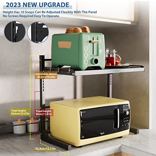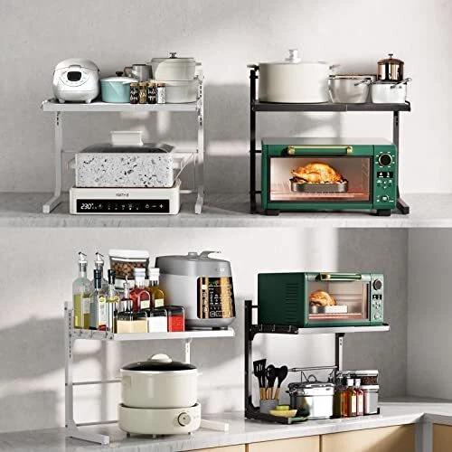 Return Policy Fast Delivery Trusted seller Extendable Microwave Oven Rack Adjustable Microwave Stand Kitchen Counter Shelf Kitchen Countertop Organizer Microwave Shelf 2 Tier with 3 Hooks Product Description 【UPGRADED HEIGHT ADJUSTMENT】 Our microwave stand has been upgraded to include 10 levels of height adjustment, making height adjustments simple and hassle-free. Forget cumbersome screws of the past, easily adjust the height by clamping the storage board on the corresponding snaps. 【FLEXIBLE WIDTH】This microwave shelf has a flexible width that can adjust between 14.48-23.62 inches (36.8-60cm). Coupled with its adjustability in height, it is the perfect space-saving solution for your kitchen. 【Premium Material】Our kitchen counter rack stands out for its high-quality carbon steel material, making it practical, stain-resistant, wear-resistant and rust-proof. You won't be disappointed with its sturdy construction. 【STRONG BEARING CAPACITY】Capable of supporting up to 132lbs (60kg), this countertop shelf can hold various items such as microwave ovens, coffee makers, air fryers, bread maker and so much more. We provide 3 complimentary hooks for extra storage and easy access to your kitchen tools. 【EASY INSTALLATION】 No need to worry about complicated procedures or drilling holes with this shelf. Our female customers reported a 20-minute installation time on average. If you encounter any issues, please contact us through and we will promptly assist you within 24 hours(You can contact us through or find our after-sales support email by entering the store). Shipping Returns Payment Shipping Shipping is FREE to all addresses other than APO/PO boxes in the lower 48 states. All our stock ships from US-based warehouses. Shipped via USPS or UPS (depending on location and package weight) Unless stated otherwise, all orders will ship within 24-72 hours of your payment being processed. Check our feedback to see the great reviews of FAST shipping we offer. Returns Seller does not accept returns Payment We currently accept payment via eBay managed payments only. Once payment is cleared, we will dispatch your shipment within 1-3 business days. Please refer to the "Shipping" tab for more information regarding shipping speed to your destination.