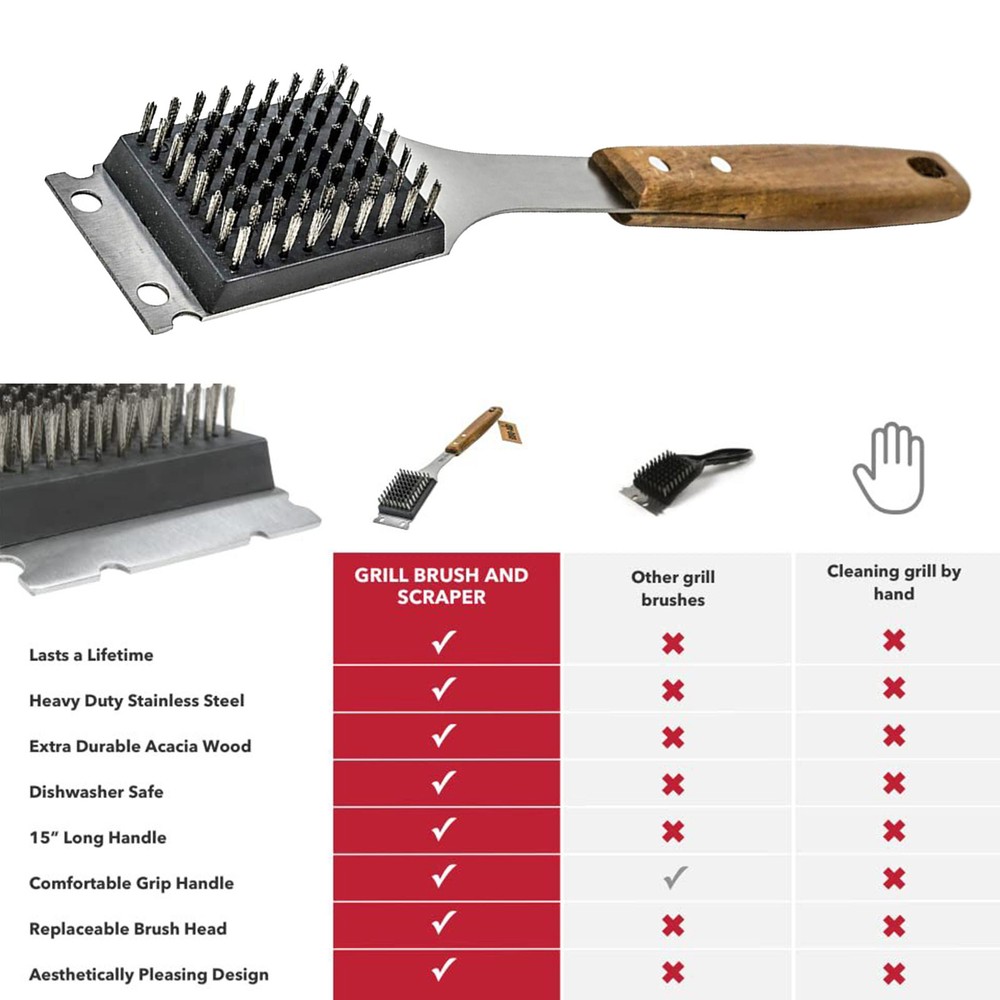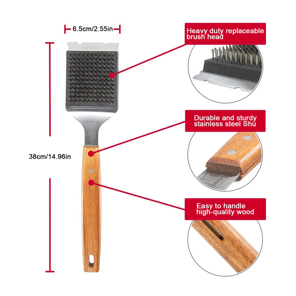 Barbecue Grill Brush and Scraper –Extended, Large Wooden Handle for Camping Bullet Points: Easily Use: Keep your grill in pristine conditions with ease using our BBQ grill cleaning brush and scraper. Boasting denser stainless steel bristles and a grill scraper, removing even the toughest grill waste is a breeze, making it perfect for effortless grill maintenance. Multiple Uses: Clear stubborn grill stains with ease using our BBQ grill cleaning brush. The brush head, along with a stainless steel scraper and groove design, will boost the cleaning efficiency of the scraper, perfect for multipurpose use. Get a left-free grill in no time. Innovative Solution: The angled brush head and handle of our BBQ grill cleaning brush and scraper make grilling and cleaning a breeze. You'll enjoy stress-free grilling every time. Convenient Organization: This BBQ grill brush and scraper features a lightweight wood handle with a suspend loop on top, allowing you to easily suspend it when not in use and keep it out of the way. Extensive Application: This BBQ grill cleaning brush and scraper can handle any type of grill, making it perfect for dinner parties, picnics, and camping trips, giving you an effortless and speedy cleaning experience. The Stainless Steel BBQ Brush helps you remove even the toughest grill waste in just a few strokes. The brush head features a stainless steel scraper and an angled design between the grill brush head and handle. Specification: Name: BBQ Grill Cleaning Brush and Scraper Material: stainless steel and wood Product size: about 38 x 6.5 cm/15 x 2.5 inch Packing List: 1* BBQ Grill Cleaning Brush and Scraper Payment should be completed within 2 days after auction closed, or unpaid dispute will be filed for an closing auction. An unpaid case will be filled after 4 days ● We strive for 100% customer satisfaction ! ● Positive Feedback is very important to us. ● We hope that you contact us immediately BEFORE you give us neutral or negative feedback, so that we can satisfactorily address your concerns. ● We promise to offer the lowest price and high quality produce. Our working time: Monday to Friday (9:00 am to 18:00pm)(Beijing Time) Saturday (9:00 am to 12:00am),except International Holiday. Dear buyers : ● Welcome to my store ! ● Your satisfaction is our top goal,we appreciate your patronizing. ● If you have any questions, please contact us before leave negative or neutral feedback, we will try our best to solve the issue to your satisfaction, thanks ! ● If you are satisfied with our service, please rate the details of the transaction (Detailed Seller Ratings) on eBay. ● Please always talk to us via ebay Message . ● We appreciate your business and look forward to growing our e-Bay sales with satisfied customers.