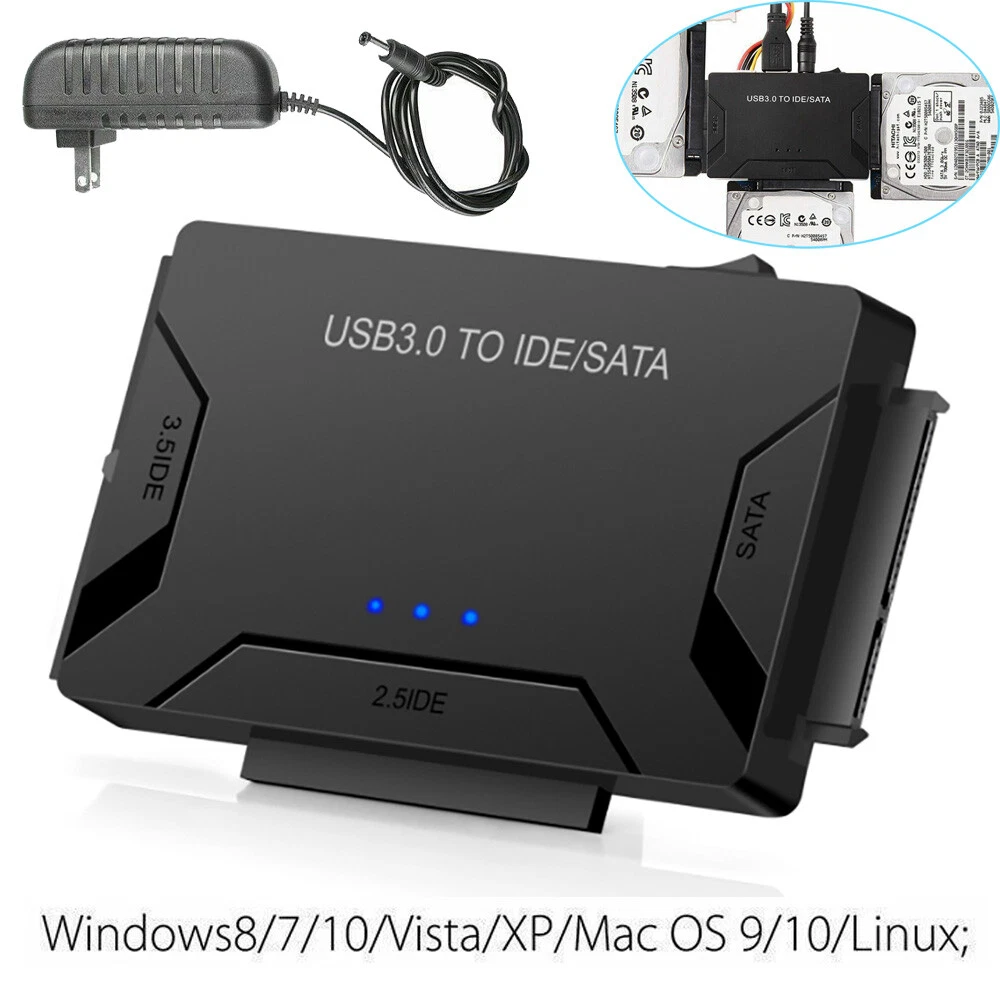 Product Features Get All Your Drives Active Combo's 3.0 to SATA IDE Converter allows you to connect 2.5"/3.5" IDE/SATA hard disks through USB port to the computer. This is a 2. perfect tool to duplicate, copy, backup or transfer large amounts of data from one drive to another. It has a SATA II connector and two IDE connectors (40pin and 44pin). Access to 3 Drives Simultaneously: This USB SATA adapter enables access to all three HDD drives simultaneously or file transfer among the 3 drives. It supports 2.5"/3.5" SATA HDD and SSD; 2.5"/3.5" IDE HDD; DVD-ROM, CD-ROM, CD-RW, DVD-RW, DVD + RW. Superb 5 Gbps Transfer: With USB 3.0 interface, data transfer rates up to 5 Gbps. The USB 3.0 interface is also backwards compatible with USB 2.0 / 1.1. Huge Capacity Supportive: Up to 4TB capacity of the drives supported. The LED indicator of the USB to SATA IDE adapter can monitor the working status. Plug and Play, easy to use. Wide Compatibility: This IDE SATA Adapter is universally compatible with Windows 10/ 8.1/ 8/ 7/Vista/XP, Mac OS 9/ 10, Linux etc. Supports drives with a capacity of up to 4TB. Support speed up to 5Gbps. Backward compatible with USB 2.0/1.1. On/Off Switch for HDD protection. Type Adapter/Converter Supported Drives 2.5"/3.5" SATA HDD/SSD; 2.5"/3.5" IDE HDD; DVD-ROM, CD-ROM, CD-RW, DVD-RW, DVD+RW Compatible Systems Windows8/7/10/Vista/XP/Mac OS 9/10/Linux Power Supply DC 5V/2A for 3.5" devices Features LED activity indicator, Plug & Play, reliable and stable Converter Size 3.93x2.36x0.59 in (100x60x15mm) Net Weight 8oz (226g) Package Weight 9.29oz (264g) Package includes: 1 x USB 3.0 to SATA/IDE converter 1 x USB 3.0 male to male cable 3ft 1 x 12V/2A (DC5.5*2.1) power cable 1 x 4pin Power Cable On Feb 28, 2024 at 02:43:13 PST, seller added the following information: