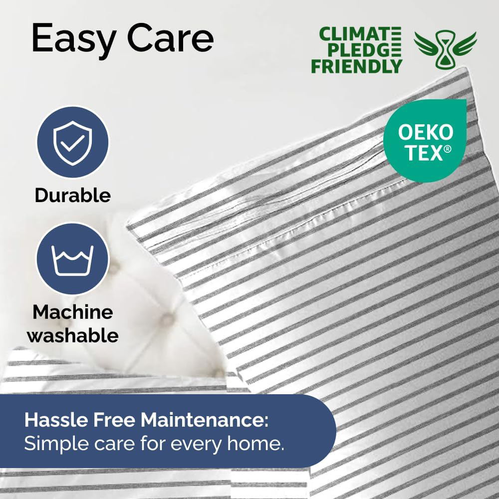 Fast Shipping Great Customer Support Satisfaction Guaranteed DESCRIPTION Shipping Shipping Shipping All domestic packages are shipped for Free (Unless other shipping method was selected during the checkout) Most items ship and arrive much sooner than the estimate delivery date. Usually within 2-3 days from payment. However, we have longer estimates to compensate for the occasional delay or supply chain breakdown. We do not accept P.O. BOXES - PLEASE PROVIDE A PHYSICAL ADDRESS Return Return Return In the event that you would like to return your purchase, we allow returns that are processed within the defined return date (the return date is to be found in the return policy/shipping and handling section) Please contact us for a return authorization and the return shipping address. Payment Payment Payment PayPal is our preferred method of payments it's the quickest, easiest and most secure way to pay for your goods or services online. PayPal offers buyer and seller protection should there be a problem. If you do not have a PayPal account, to get started and buy your first item with us is very easy. Simply click on the 'Buy It Now' button and follow the eBay checkout steps. Select PayPal as the payment method you then will be given the chance to enter your card details in to PayPal's secure checkout in order to pay for your order. Once the payment has been made, you will then be given the opportunity to make your own PayPal account to make paying for your items in the future very easy. Should there be a problem with payment please do let us know. Feedback Feedback Feedback Customer satisfaction is very important to us. If you have any problem with your order,please contact us and we will do our best to make you satisfied, please do not leave a negative feedback before we resolve your problem. We guarantee that your issue will be solved quickly. As long as you are happy with your purchase of , please leave us a positive feedback. Your feedback is very important to us it affects our search placement on eBay. We will leave a positive feedback for you in return automatically once we receive your feedback. Contact Us Contact Us Contact Us If you have any queries, please contact us via ebay. We usually respond within 24 hours on weekdays. Thank you for visiting our ebay store! EXTRA DEEP POCKET KING SHEETS / EXTRA DEEP FITTED KING SHEETS: These bed sheets are for very deep pocket mattresses. They fit any mattress with pockets that are 18, 20, 21, 22 and 24 inches deep. There's stretchable elastic around the extra deep fitted sheet which stretches for a nice tug around your mattress. Perfect for extra tall & large mattresses. Rest assured these oversized sheets will stay on tight & stay in place! 6 PIECE SHEET SET: This bed sheet set comes with 4 pillowcases total all with a beautiful decorative embroidery design on each pillow case. The pillow cases have enclosure designs. This bedding set will accommodate your extra thick mattress perfectly. GREAT FOR DOUBLE PILLOW TOP MATTRESS: These bed sheets are perfect for mattresses with a 3 inch or 4 inch topper on top, memory foam toppers, big mattress pads, pillow tops, foam toppers, big foam toppers, pillow top mattresses and memory foam. These sheets will not come off. MICROFIBER: These are the softest type of microfiber bed sheets we have created. Super soft with a light feel. Not crisp like cotton. If you're accustomed to cotton sheets and you've never tried microfiber sheets we recommend you give these a try. They're even softer than cotton! DIMENSIONS & SIZES: Flat Sheet 111 wide and 102 long. Fitted sheet 78 wide and 80 long with 21 inch pockets (has elastic so it can stretch). All four pillow cases are oversized 20 x 40 inch. Extra Deep King Sheet Set - 6 Piece Breathable Cooling Sheets - Grey Striped Click here to see description Fast Shipping Great Customer Support Satisfaction Guaranteed DESCRIPTION Shipping All domestic packages are shipped for Free (Unless other shipping method was selected during the checkout) We ship within two business days of payment, usually sooner Standard FREE shipping takes between 3-5 business days Expedited shipping takes between 2-3 business days Overnight shipping takes between 1-2 business days We do not accept P.O. BOXES - PLEASE PROVIDE A PHYSICAL ADDRESS We Ship Globally using ebay's GSP, the item is sent to a logistic center in KY and shipped from there to the rest of the world. International customers are responsible for all duties and taxes Contact your local authority for questions related to the amount of duties or taxes you will be responsible for Return In the event that you would like to return your purchase, we allow returns that are processed within the defined return date (the return date is to be found in the return policy/shipping and handling section) Please contact us for a return authorization and the return shipping address. Please contact us for a Return Merchandise Authorization (RMA) number. We advise you to use a reputable carrier service when returning your goods. Please pack all returns appropriately. We ship globally Via eBay's global shipping program (GSP). Thus we don't cover returns for items shipped globally. Buyers returning such items will be refunded ONLY for the item's cost and not for the shipping. please check the Voltage information and make sure it matches the one in your country. In case it's not stated in the description, do ask us. Payment PayPal is our preferred method of payments it's the quickest, easiest and most secure way to pay for your goods or services online. PayPal offers buyer and seller protection should there be a problem. If you do not have a PayPal account, to get started and buy your first item with us is very easy. Simply click on the 'Buy It Now' button and follow the eBay checkout steps. Select PayPal as the payment method you then will be given the chance to enter your card details in to PayPal's secure checkout in order to pay for your order. Once th